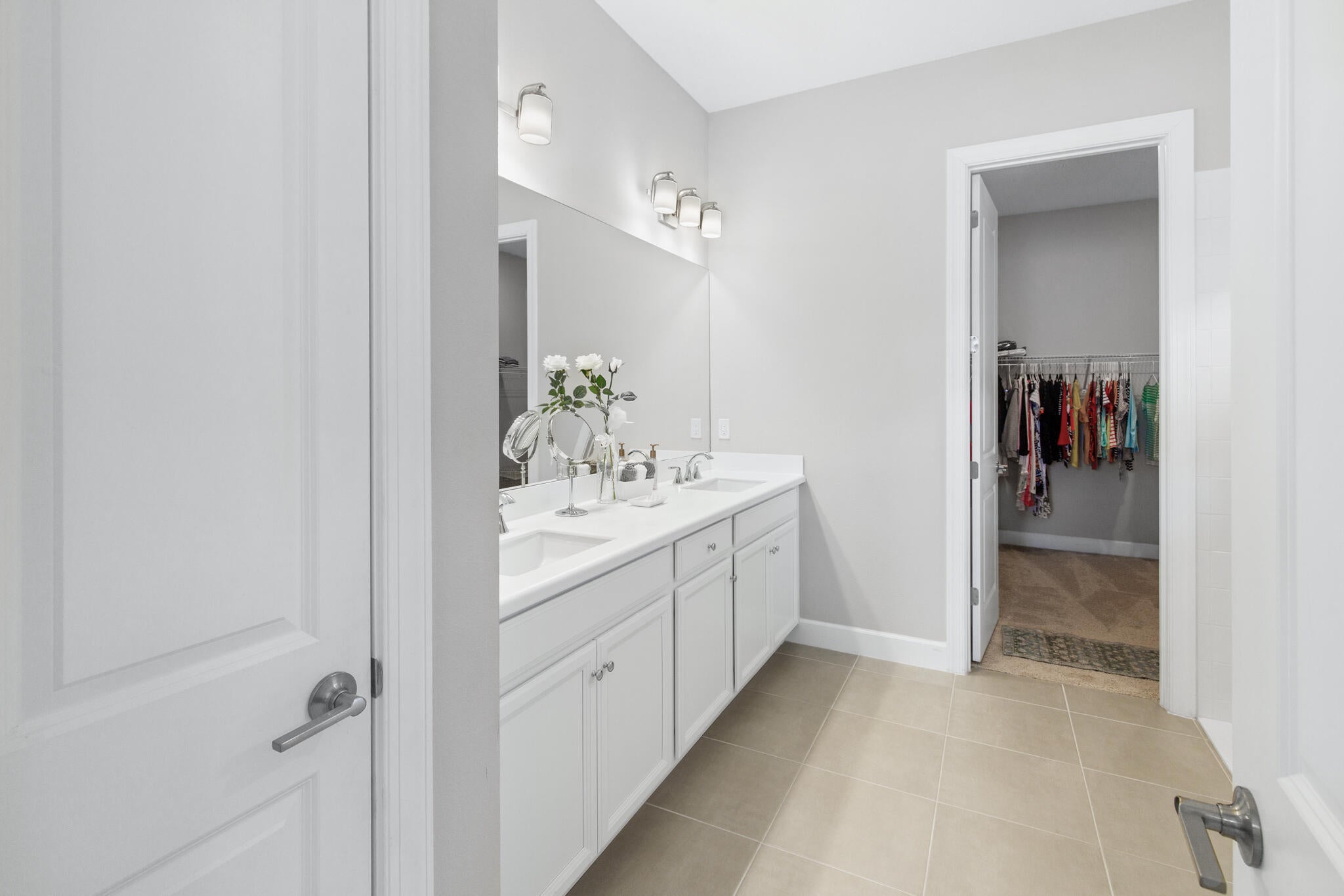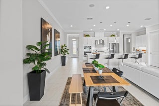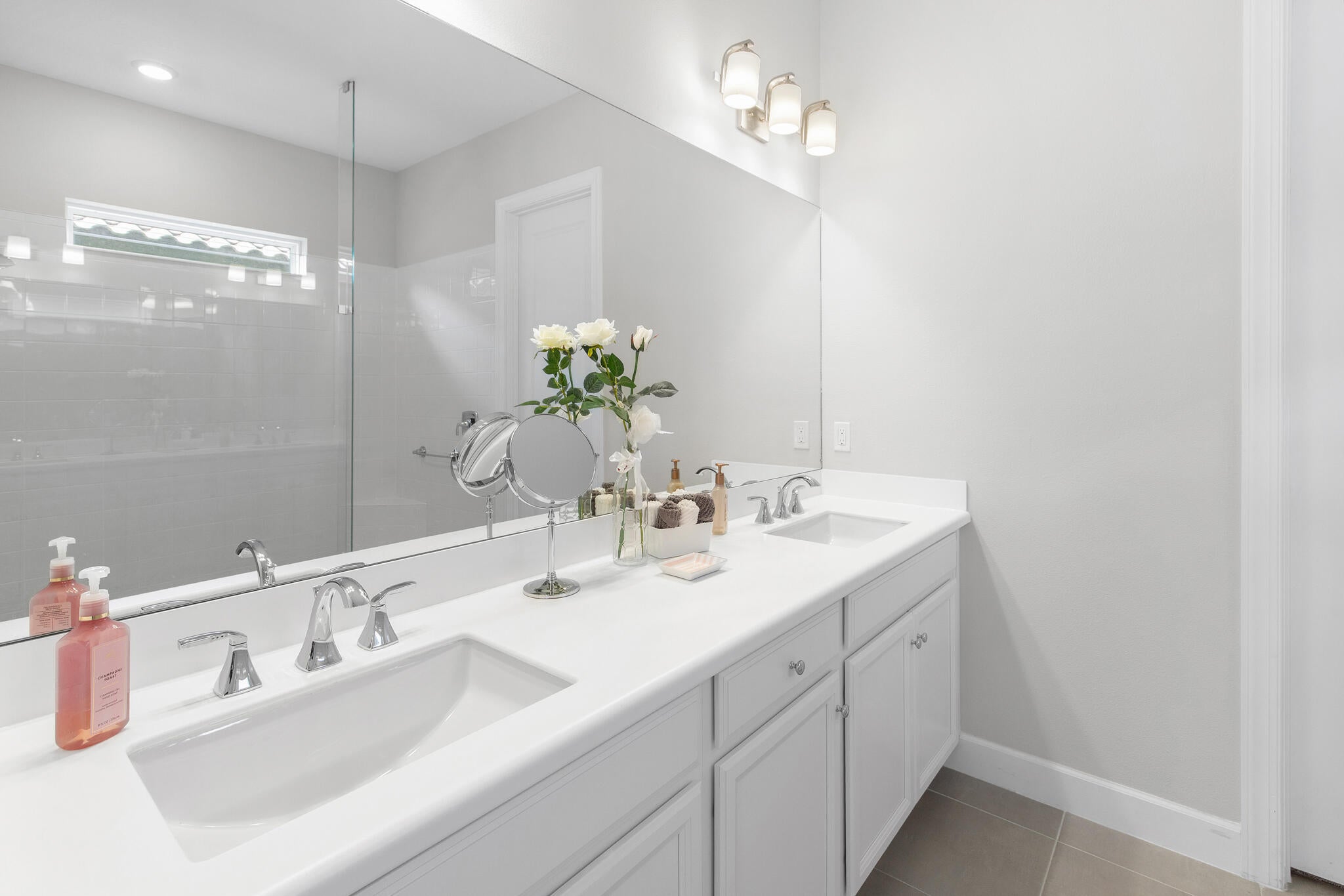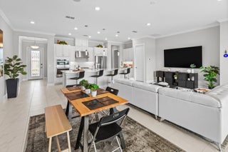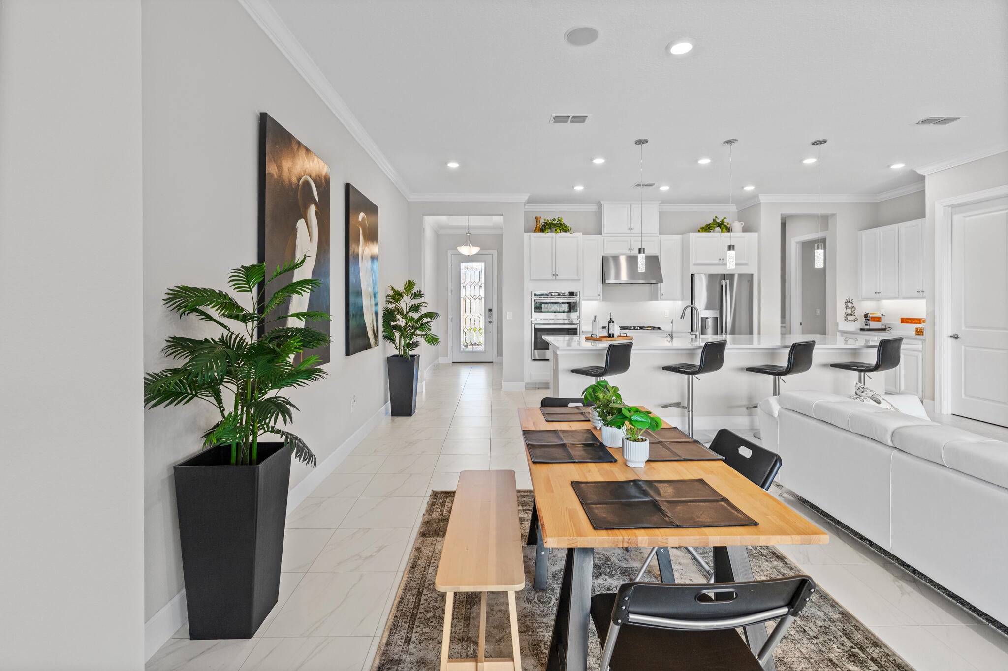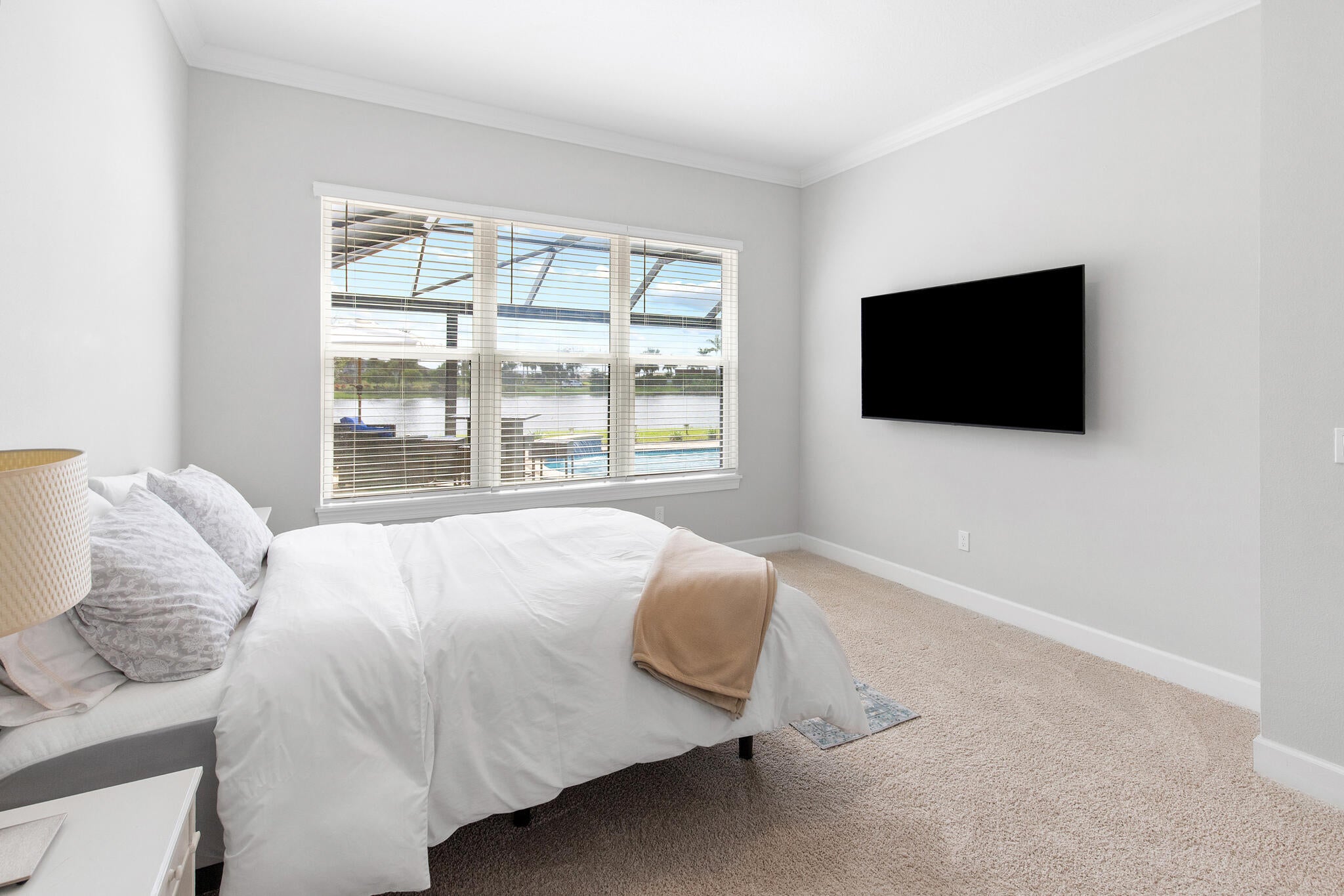 Welcome to this stunning AMBRA model in the desirable 55+ community of Esplanade at Tradition. This 3 bedroom, 3 full bath home features 2 primary suites plus a den with elegant glass French doors. The open, light-filled floor plan offers tile floors in main areas, crown molding and expansive pocketing sliding doors that open to a screened patio with pool, panoramic lake view, and a full-view screen enclosure. The gourmet kitchen boasts quartz countertops, upgraded cabinetry, a large island, stainless steel appliances, and spacious walk-in pantry Both primary suites include walk-in closets and spa like baths with quartz counters. With over $100,000+ in builder upgrades, landscaping, and so much more, this home is an incredible opportunity