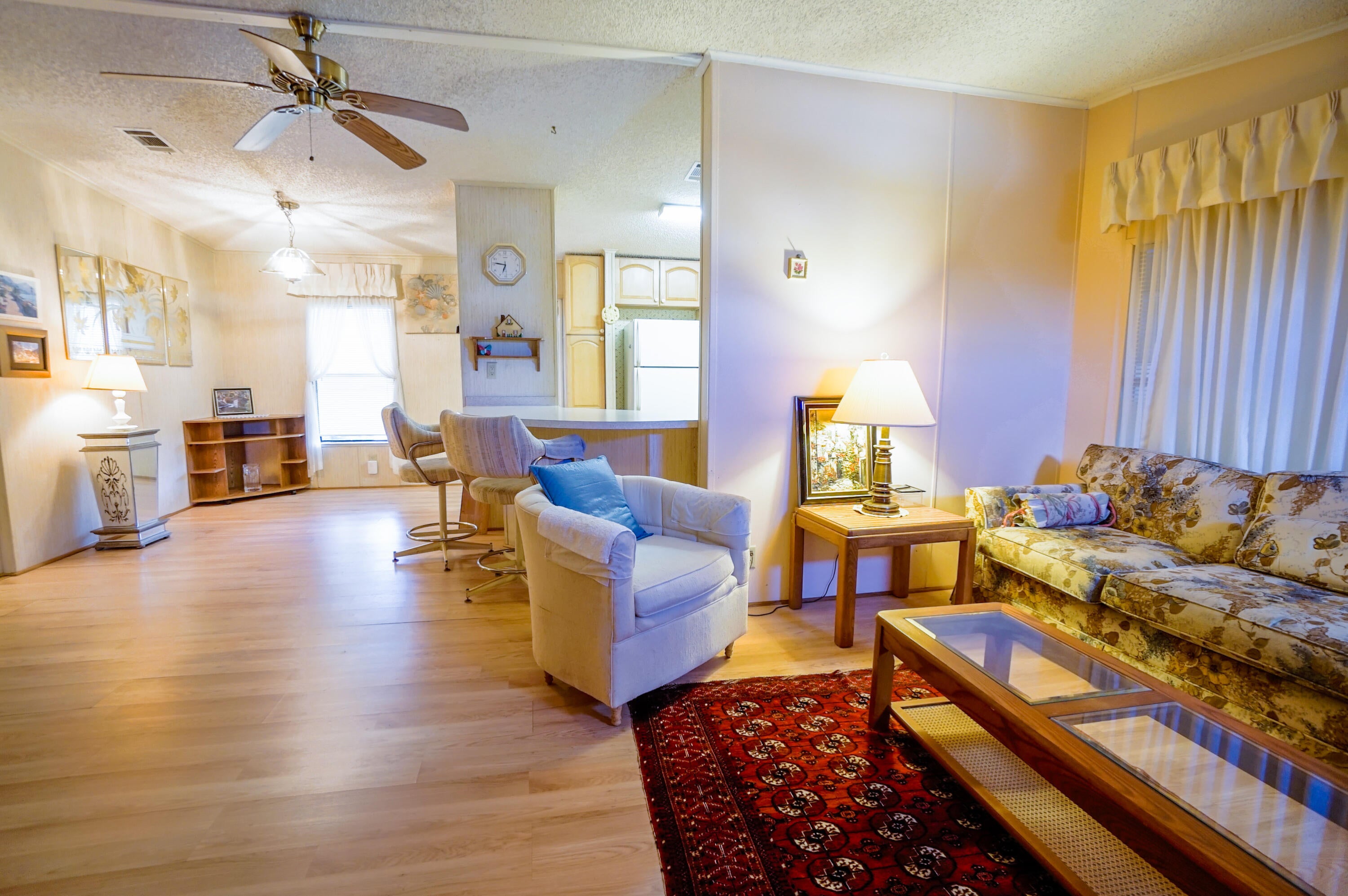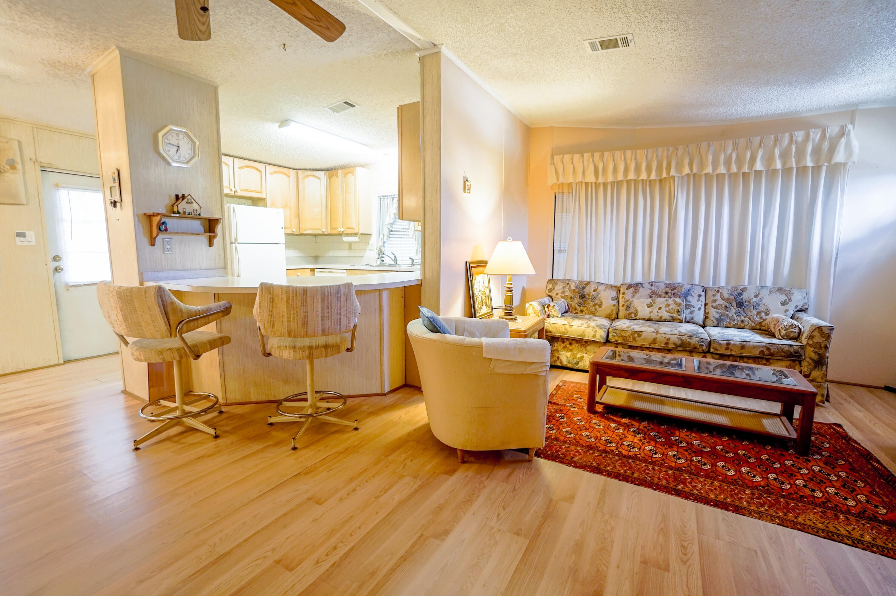 This 2 Bed/2 Bath, 1014 Sq Ft home, features a large kitchen with solid wood cabinets, kitchen island, and an open floor plan with living room and dining areas. as well as nicely sized bedrooms and walk in closets, a separate laundry room,which leads to a screened in lanai and large storage closet. The low HOA fee of $197 per month includes: basic cable, internet, trash removal and a whole host of amenities like the clubhouse, heated pool, shuffleboard, and more..there is even RV/Boat Storage. The home is being sold furnished and is ready for you to move right in. La Buona Vita, is a 55+ Coop Community with NO Land Lease fees?