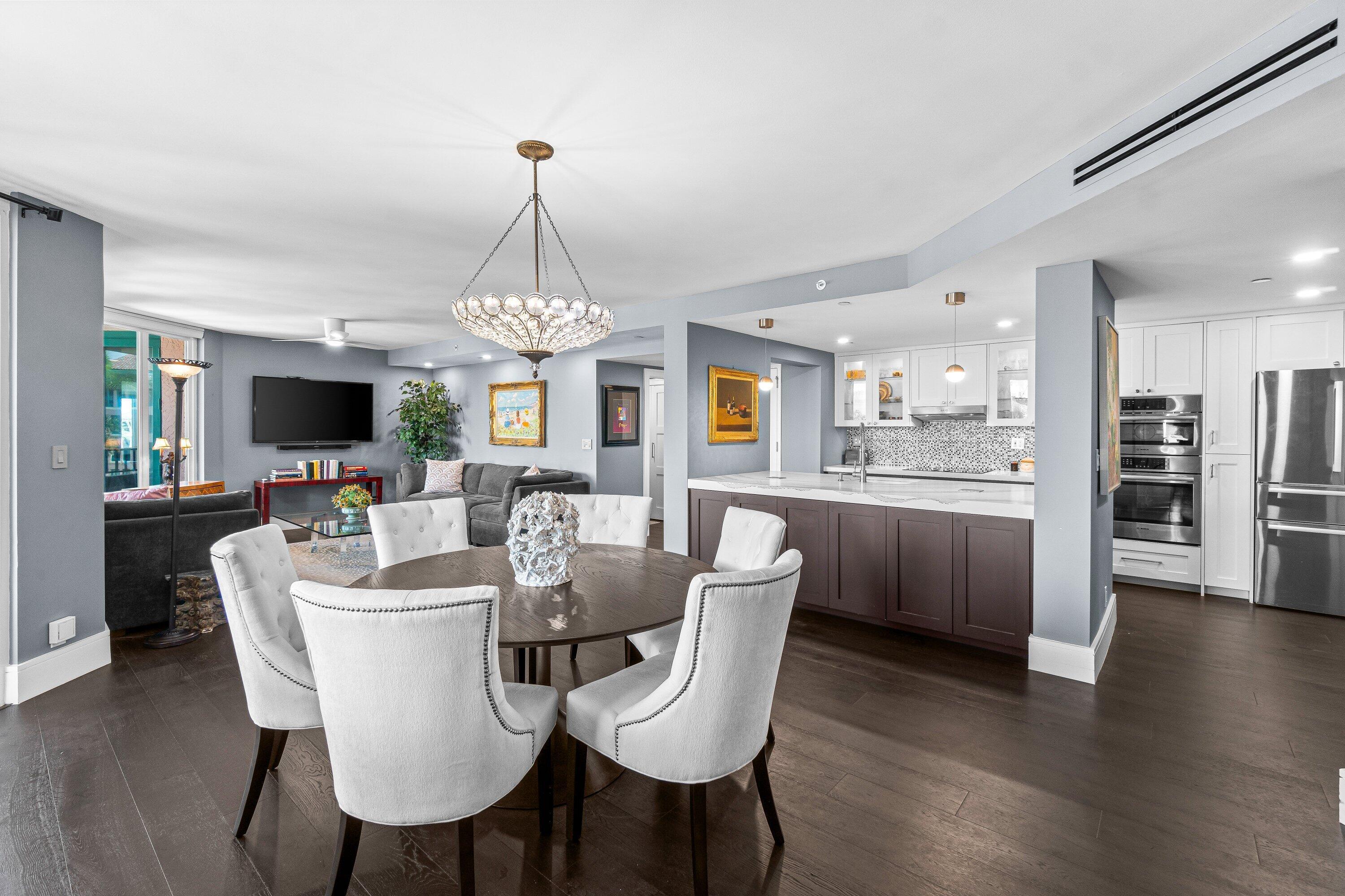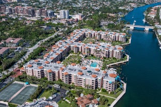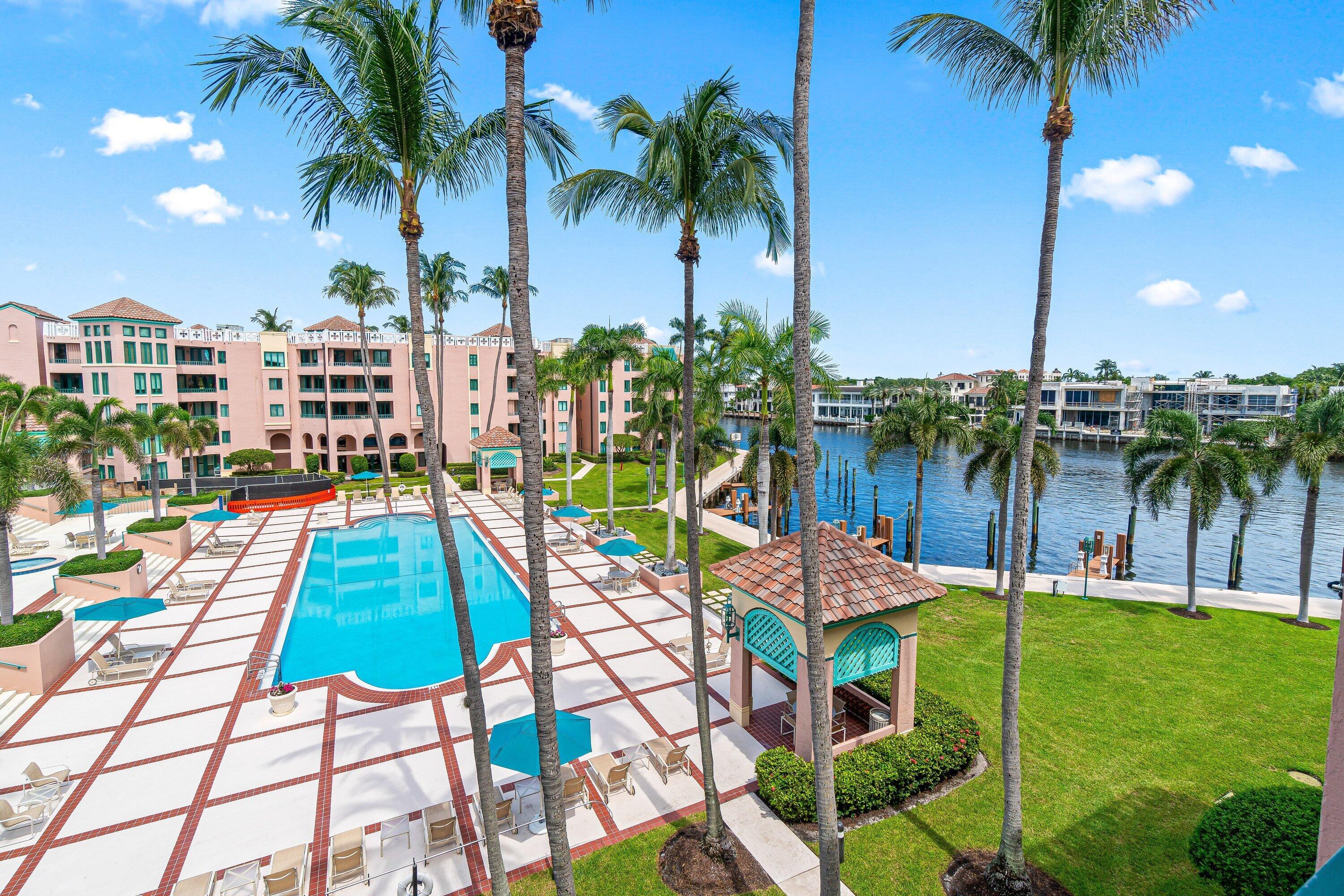 Elegantly renovated down to the studs, this spacious Bougainvillea model offers 2 bedrooms, 2 baths, and stunning views of the Intracoastal and pool. Featuring deep espresso hardwood floors, an open-concept living and dining area, and a sleek modern kitchen with quartz countertops, oversized island, and custom cabinetry. The primary suite boasts breathtaking water views, a large walk-in closet, and a spa-like bathroom with a custom vanity and oversized porcelain-tiled shower. Popular split bedroom plan. The guest suite enjoys water views and easy access to a beautifully finished bathroom. Additional highlights include HURRICANE impact windows and doors throughout, electric blinds, abundance of closet space, oversized balcony with beautiful water views, full-capacity washer and dryer, anda large pantry for ample storage. This unit comes with 1 very convenient covered parking space, and an additional air conditioned storage locker. Furniture available separately. Mizner Court provides the ultimate lifestyle in downtown Boca Raton. This pet-friendly, 13-acre community on the grounds of The Boca Raton offers 2 tennis courts, 2 resort-style heated pools, 4 spas, 3 party rooms, 2 fitness centers, steam rooms, saunas, an Intracoastal pavilion for private events, 24/7 manned gate and security, on-site management, covered parking, guest parking, and more.