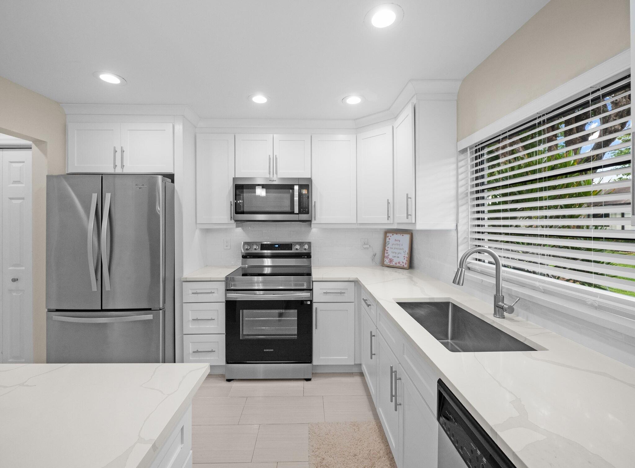 Beautifully updated 2 bedroom 2 bathroom home in the heart of Boynton Beach. New kitchen boasting quartz counters, shaker cabinets and stainless steel appliances. Close to dining shopping and just a short drive to beautiful beaches. This villa is offered unfurnished with the possibliity that some of the current furniture could stay. Call today before it's gone. Also available for sale.