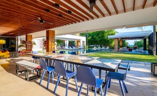 Introducing Barranca 30, a contemporary architectural jewel where art meets modern living. Each space is a work of art, decorated in vibrant, avant-garde colors that elevate every detail and give the home a distinctly modern, inviting atmosphere.This meticulously designed residence offers six bedrooms. highlighted by a stunning pool area that exemplifies luxury and leisure. The second-floor master suites stands out with a private terrace and breathtaking views, creating a serene retreat within the home. Elegant entertaining spaces are seamlessly integrated throughout, providing versatility for hosting and daily living.Located near Las Terrazas Tennis Center, Barranca 30 combines unparalleled elegance with convenience, presenting exceptional value in a refined, contemporary package.