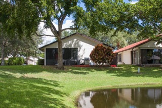 PREMIER LAKE FRONT 3 bedrooms, 2 baths, 1 car garage single family with 2 year NEW ROOF. Enjoy the beautiful lake views from Florida room. Neutral kitchen cabinets with stainless steel appliances. Porcelain tile floors throughout the entire house. New water heater. All walls painted in neutral colors. This property is located in a well maintained, gated community with sidewalks and large trees running the length of the private roads. Low HOA fees. Amenities include clubhouse, pool, spa, tennis. +55 Adult Community