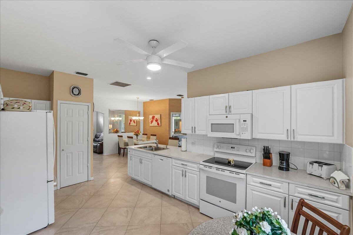 Meticulously maintained 2BR/2BA/2Car home on a spacious lot in the sought-after Madeira section of Kings Isle, a 55+ active adult community. This inviting residence features an open layout filled with natural light, a well-designed kitchen, and split bedrooms for comfort and privacy. The primary suite includes a walk-in closet and private bath, while the guest bedroom is ideal for visitors or hobbies. With no carpeting throughout, this home is easy to maintain & move-in ready. Step out to the screened lanai and enjoy peaceful mornings or evening breezes in true Florida style. Kings Isle residents enjoy resort-style amenities including clubhouse, pool, fitness center, tennis, pickleball, and countless clubs and activities. Convenient to shopping, dining, golf, medical facilities, & beaches