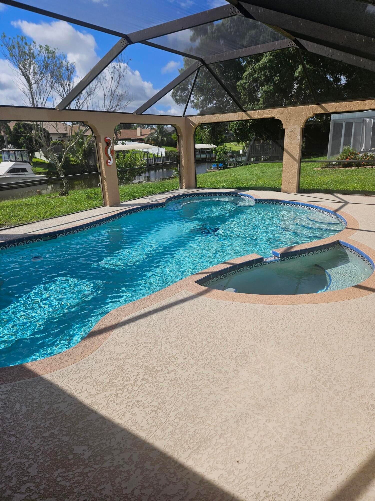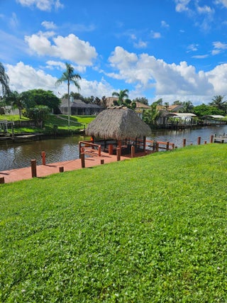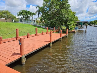 Immaculately maintained 3 Bedroom, 2 1/2 bath pool home on a wide Deep-water canal with Ocean Access. There are large open living spaces within the home with formal living and Dining area as well as a family room with a gasfireplace that is off the kitchen. Hardwood floors in living room, dining room, bedrooms. The gourmet kitchen has upgraded stainless appliances with a large island/bar forbarstools and large eat in area that overlooks the pool and water views. This property has a large 60' dock system with enclosed tiki hut area that can accommodate a 40+ foot boat for the boating enthusiast. Glass enclosed sunroom/porch overlooking screened pool and large back waterfront yard. Whole house generator so you never have to worry about power