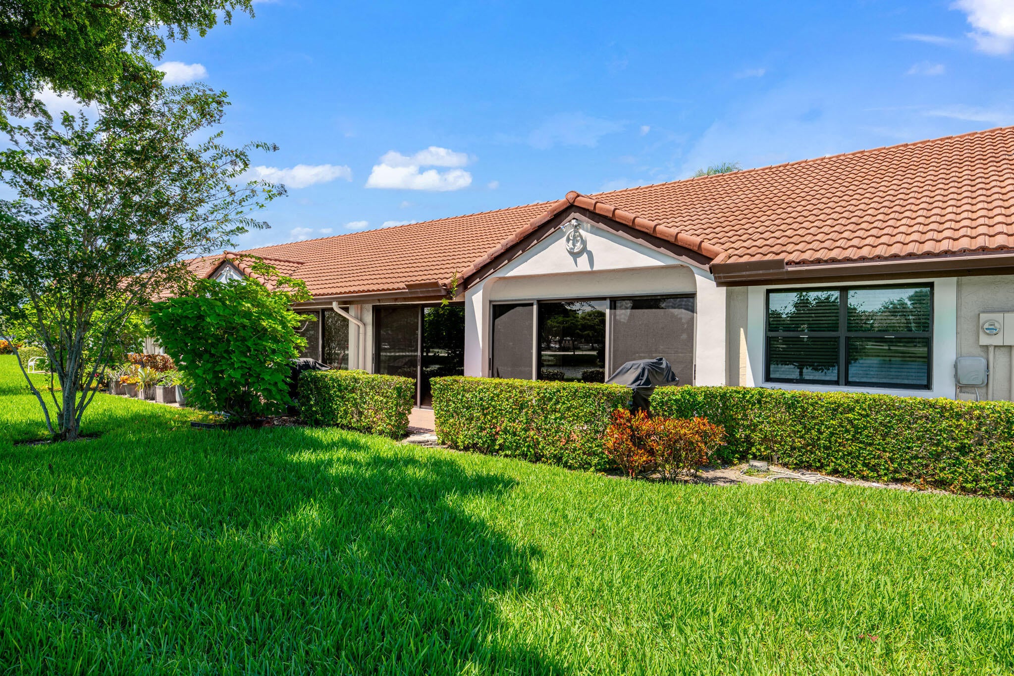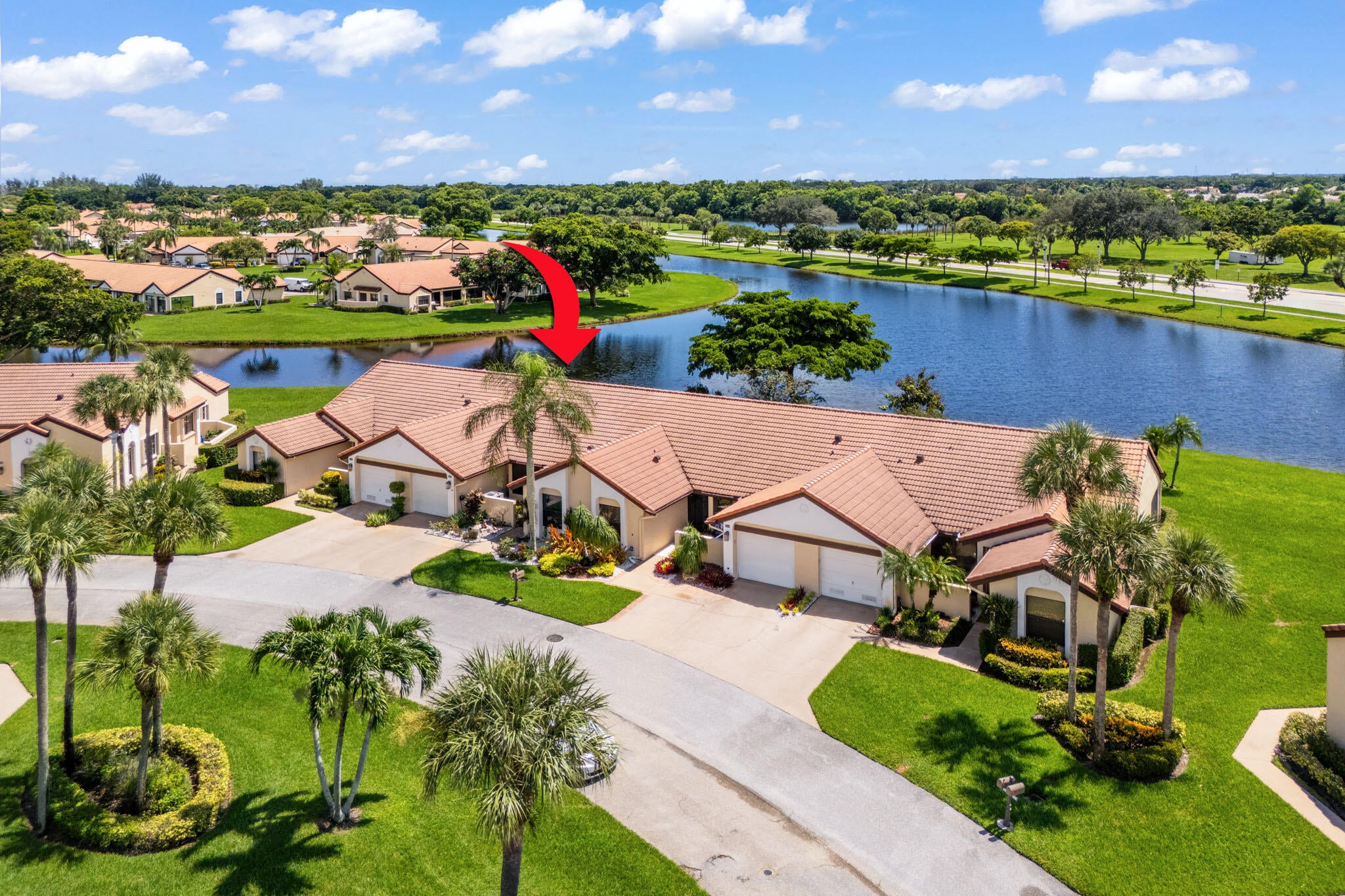 Welcome to resort living without mandatory membership. Lakeview villa in the desirable golf community of Aberdeen. Home highlights and custom renovations - extended driveway, epoxy garage floor, fully renovated kitchen with granite countertops, porcelain tile and laminate flooring, new bathroom vanity's (his & her in the master bedroom) custom closet shelving, beautiful master bathroom shower, custom bar, hurricane impact windows and roll down shutters, pantry, stainless steel appliances, no popcorn, crown moulding, new thermostat, new roof 2025, new AC, washer & dryer, outdoor grill. $95,000 in upgrades and renovations. Go for a swim at the community pool, or a match of tennis. Come watch the sunset from 3 different areas of your new home.