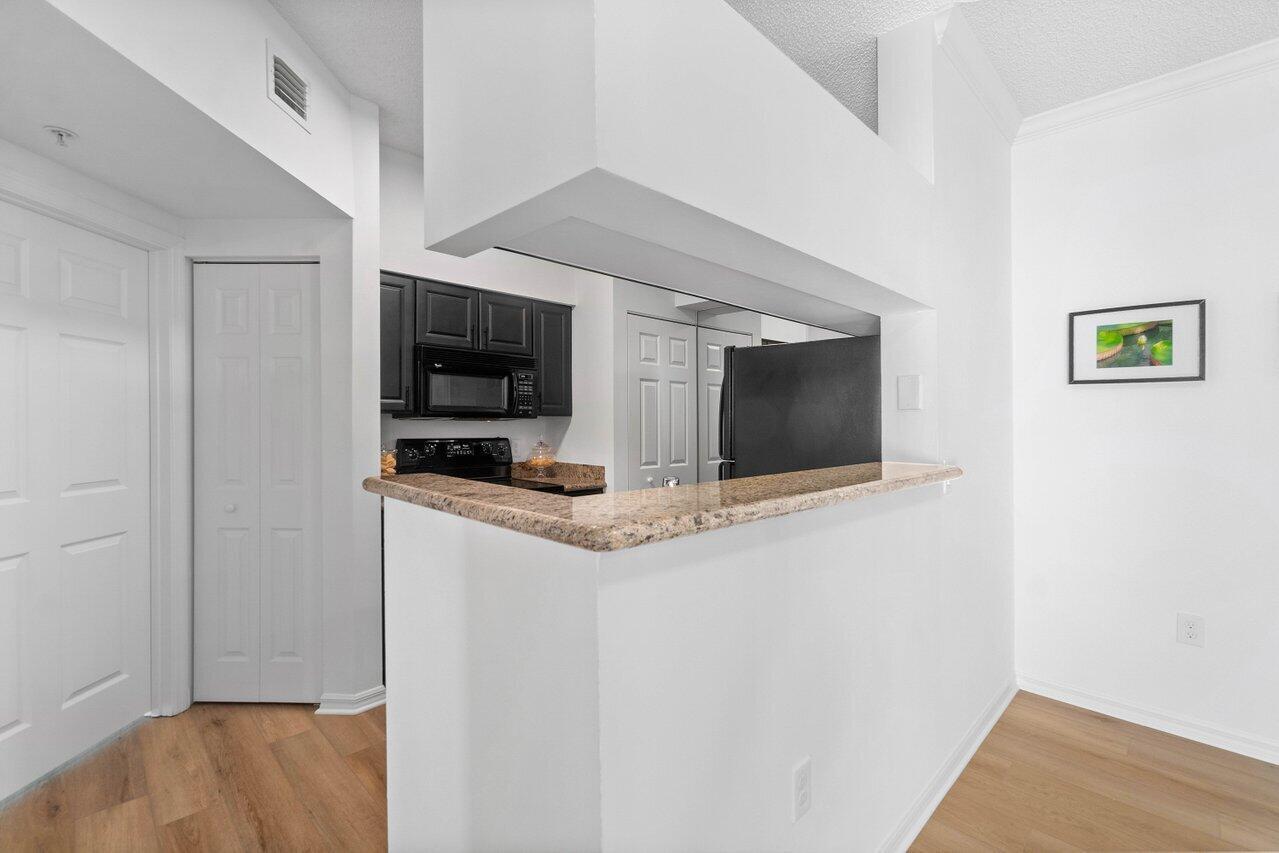Enjoy serene private garden views from your tiled balcony in this light-filled condo. Featuring wood and tile flooring throughout, a sleek granite kitchen, and all-white interiors, this home blends style and comfort. Rare offering of 3 PARKING SPACEs including a private garage #116. Resort-style amenities on the Intracoastal include clubhouse with pool, fitness, billiards, meeting rooms, library, picnic area, and tennis, pickelball, basketball, on-site management, plus a Car Wash area by Bldg 4.