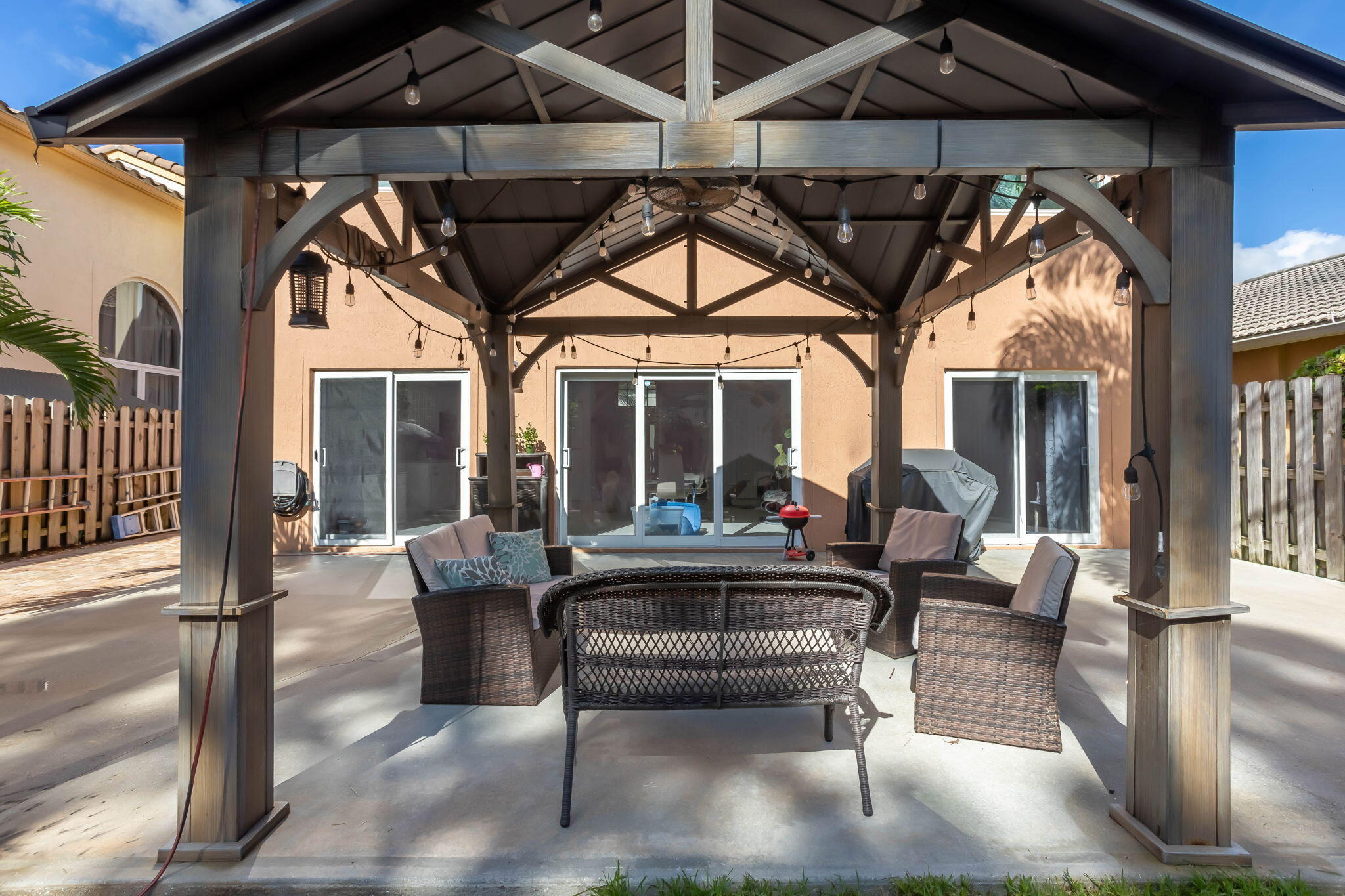 ACCEPTING BACKUP OFFERS. Welcome to this 4-bedroom, 3-bath home with an ENCLOSED DEN (5th bedroom) offering 2,700 sq. ft. in the desirable Colony at Boynton Beach. Built in 2001, it features two master suites--one upstairs and one downstairs ideal for guests or in-laws. The open layout includes diagonal tile, new luxury vinyl plank, vaulted ceilings, and a modern kitchen with quartz counters, white cabinets, large island, pantry, and newer appliances. Sliding doors open to a private, fenced backyard with extended patio and gazebo, perfect for entertaining. Upgrades include FULL IMPACT WINDOWS/DOORS, 2-car garage.The upstairs owner's suite offers two oversized walk-in closets with custom shelving and a beautifully renovated bathroom with dual sinks, a private water closet, and a spa-like walk-in shower with stone detailing. The downstairs master suite includes its own full bath with a standing shower and direct access to the main living areas, making it an ideal guest suite or in-law space. A flexible ENCLOSED DEN upstairs (currently used as a 5th bedroom) provides even more options for a growing family or a home office. The backyard is fully fenced for privacy and designed for low maintenance with extended patio space and a large gazebo with ceiling fan and wrapped decorative lightingperfect for entertaining or relaxing. With no direct rear neighbors, it feels like your own private retreat. Residents of The Colony at Boynton Beach enjoy an unmanned gated entrance and community amenities including a clubhouse, fitness center, pool, hot tub, pickleball, tennis and basketball courts, plus high-speed fiber internet included in the low HOA fee. Families will love the A-rated K-8 school across the street, an A-rated high school nearby, and a top-rated charter school right next door. This prime location close offers the best of South Florida livingjust 10 minutes to the beach, 15 minutes to Downtown Delray Beach's Atlantic Avenue, 15 minutes to Downtown West Palm Beach, and 15 minutes to Palm Beach International Airport. Located conveniently between i-95 and FL Turnpike.