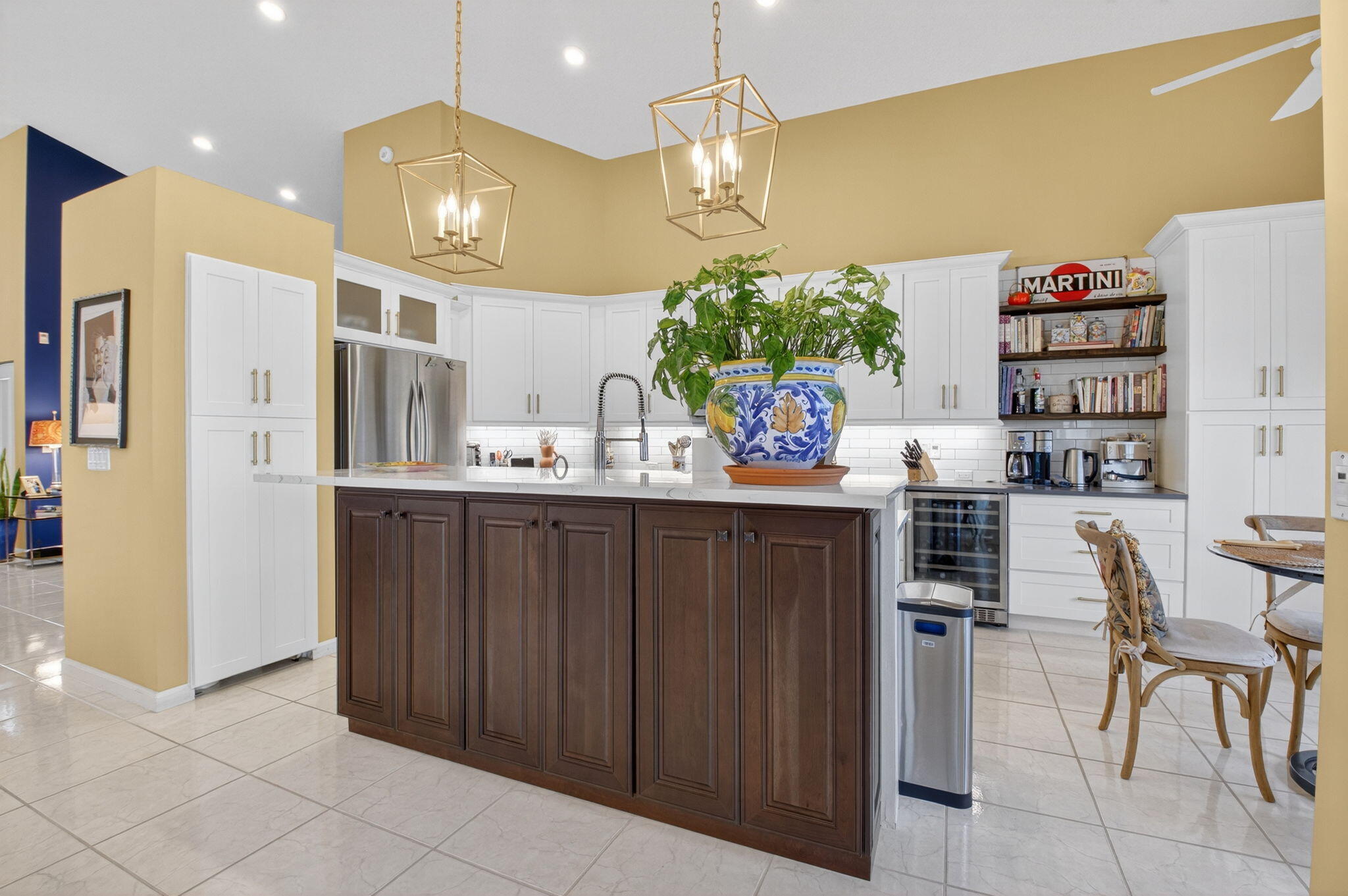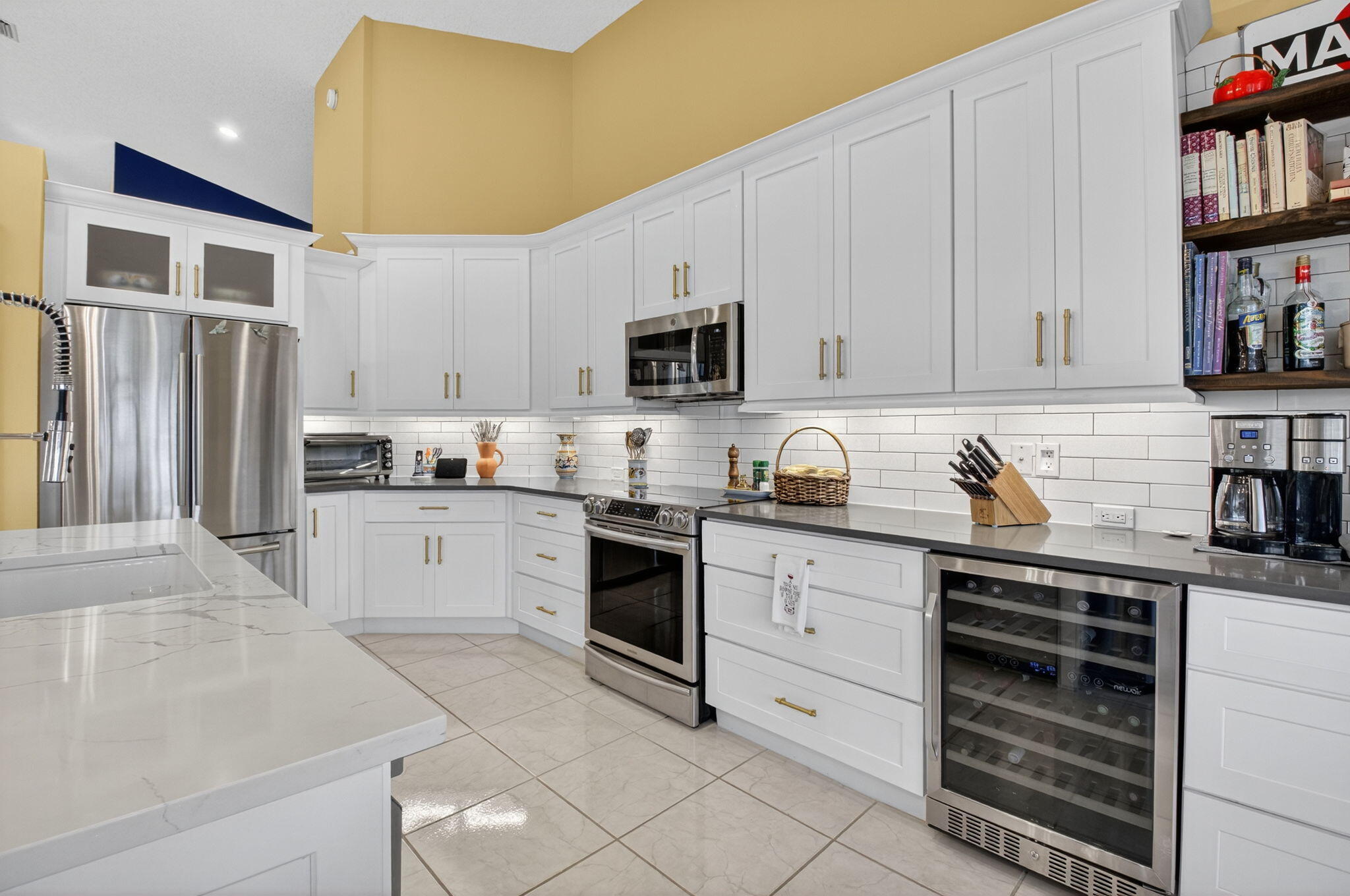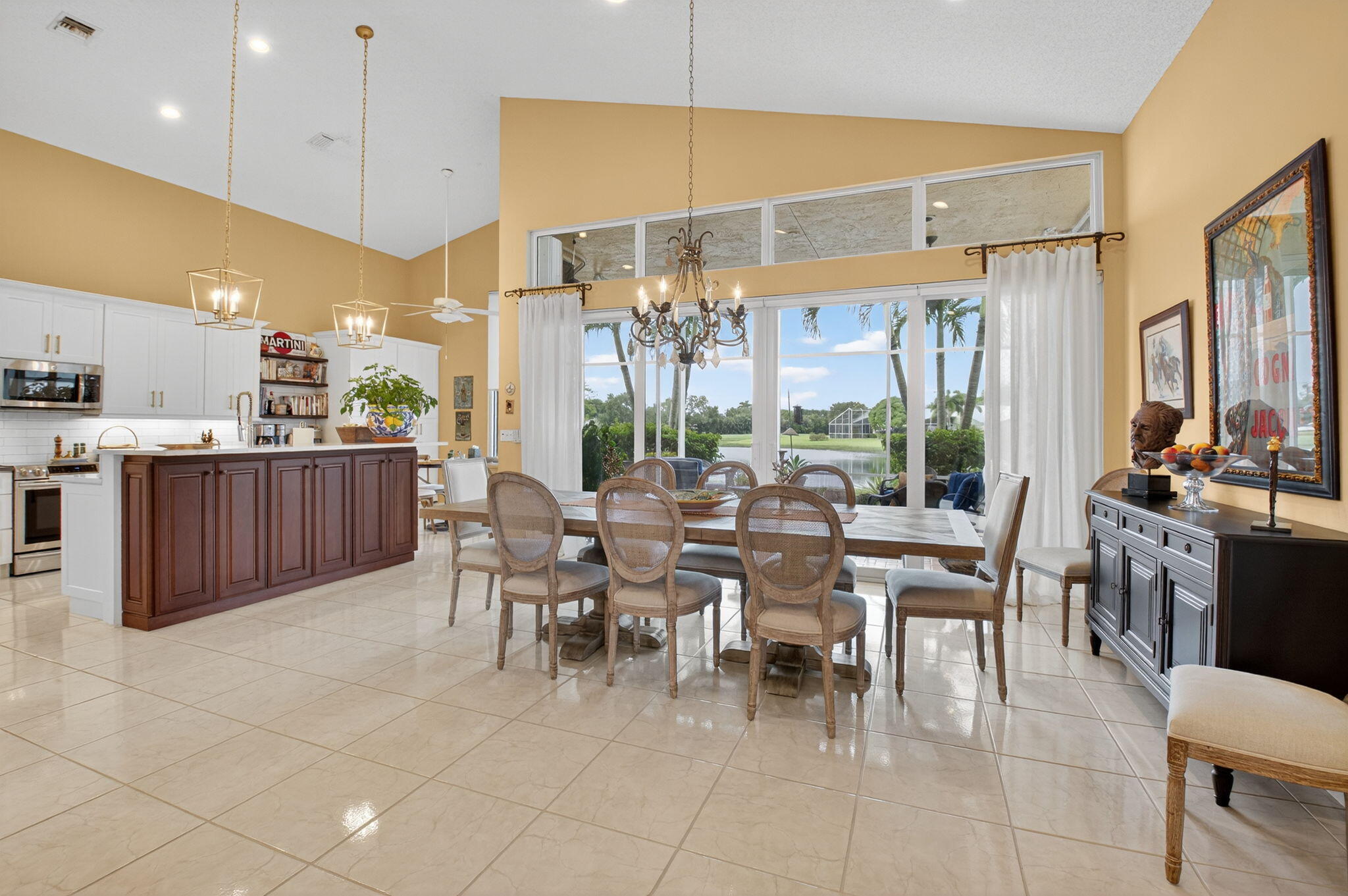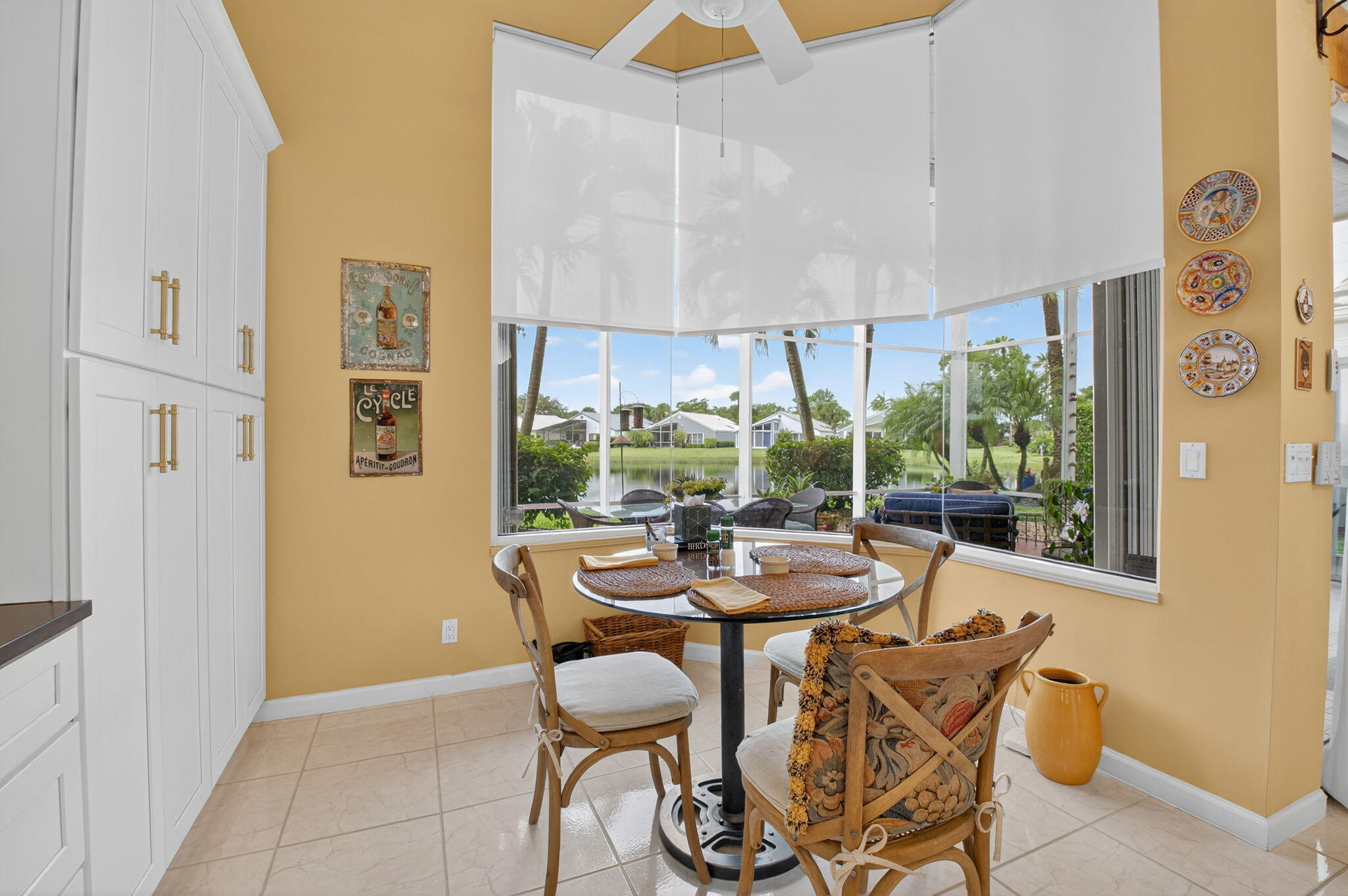 Views, views, views! Enjoy lakeside living and golf course viewslocated in the Glades, an intimate 42 enclave of single-family homesin Indian Springs. Enjoy the peace of mind of security 24/7 as youwake up in your light-filled entertainer's dream home with hurricanerated doors and windows throughout. Open floor plan with great roomincluding dining room that comfortably seats 12, 3 bedrooms, 2 1/2 bath,and den. This home has volume with 14-foot vaulted ceilings. Finemeals await in this cook inspired kitchen with gleaming quartzcountertops, stainless steel appliances, including induction range anddual zone wine cellar. Storage galore with drawers below and 42''cabinets above, and full height dual pantry. The oversize master suite(with sliding glass doors opening to the patio) leads to a custom luxury bath with separate toilet room, drawer and cabinet space galore, dual sinks with granite countertops, and a large shower with floor to ceiling travertine and European nickel fixtures throughout. Enjoy your morning beverage in your expansive covered and screened-in lanai, or dinner with guests in the cool of the evening.