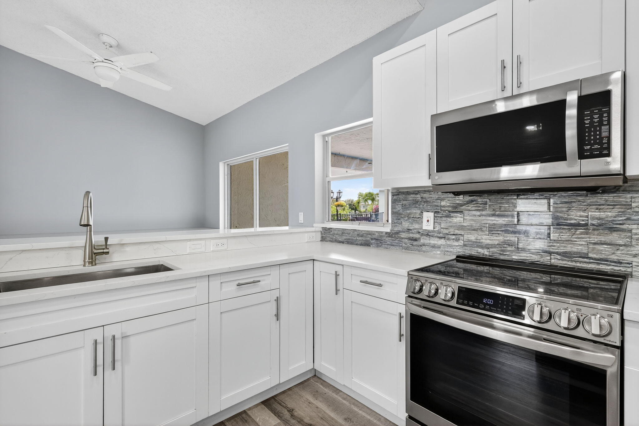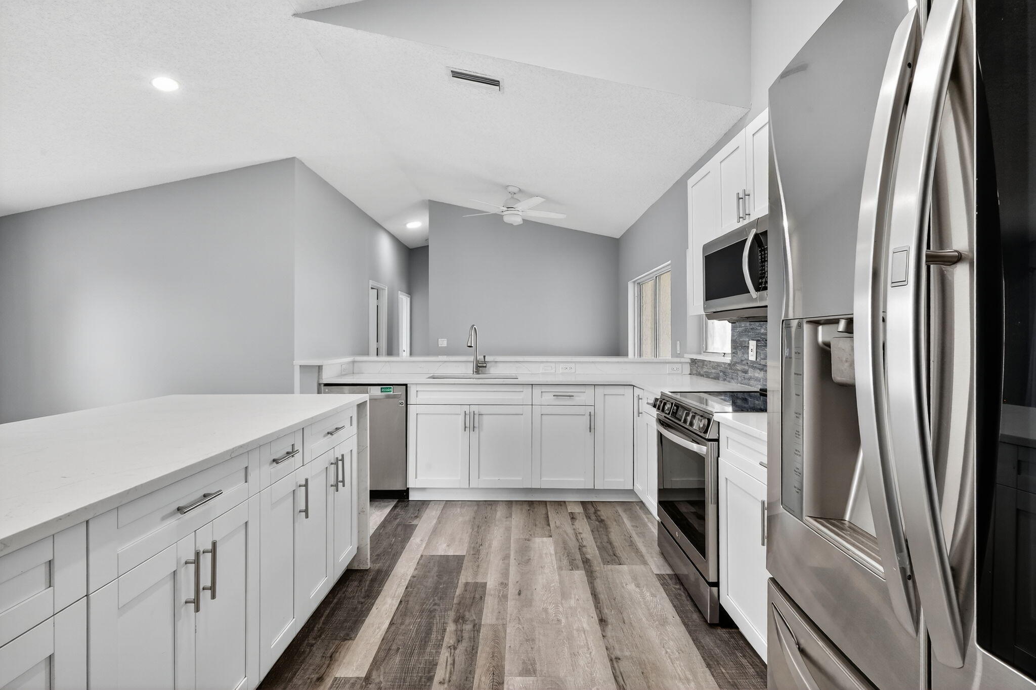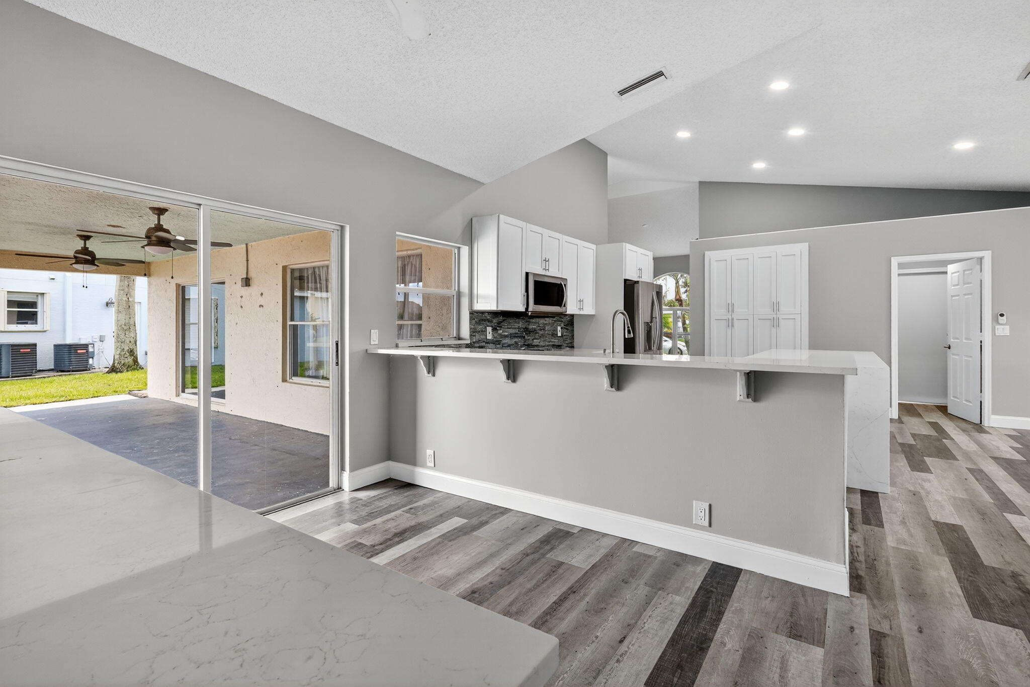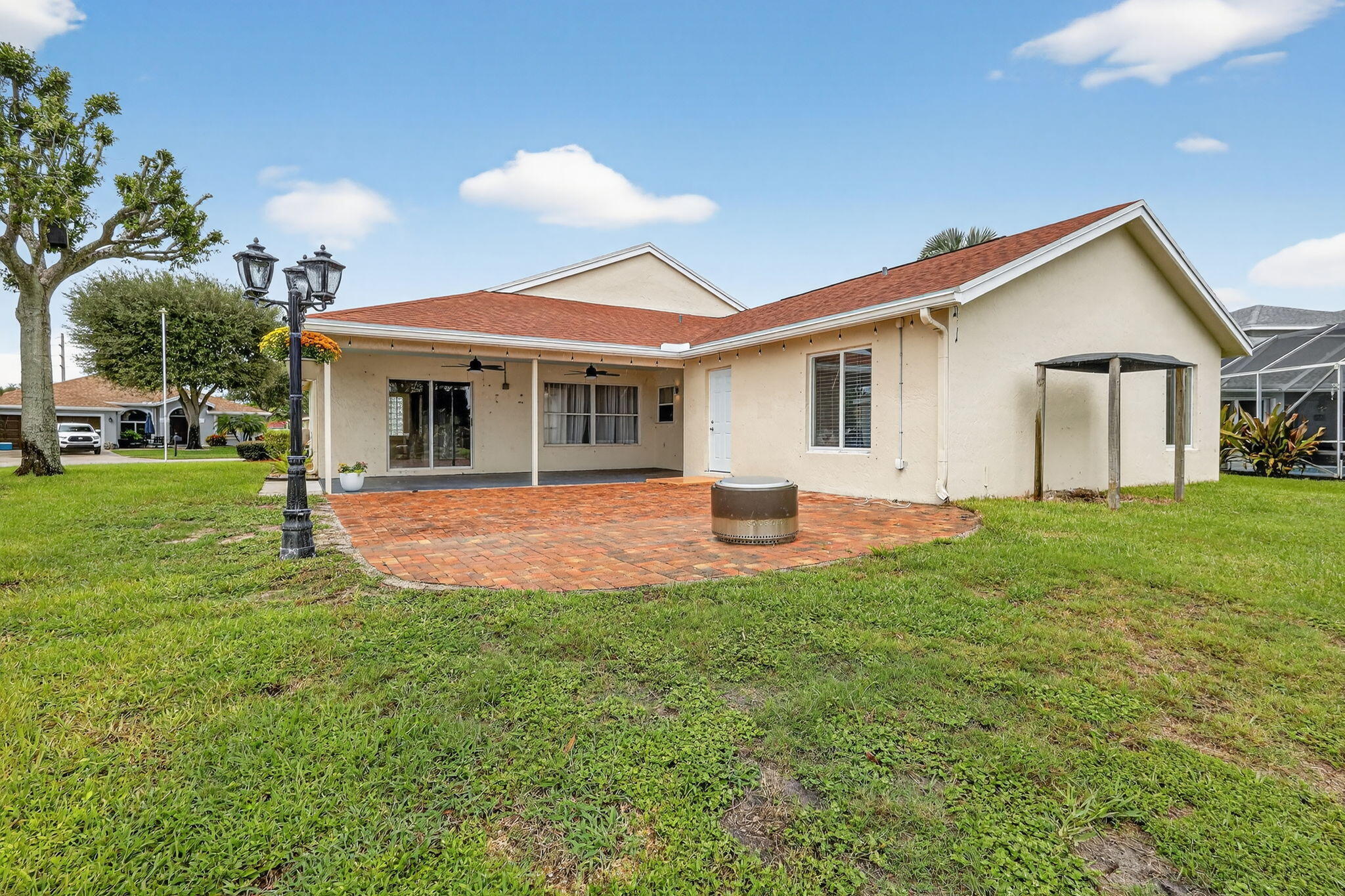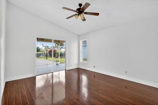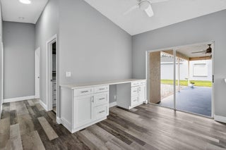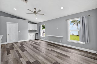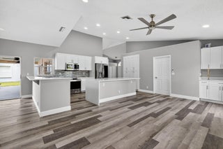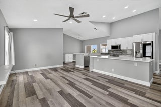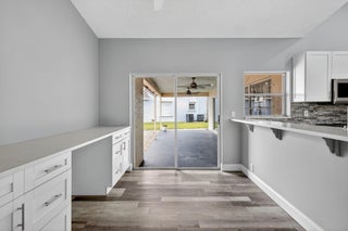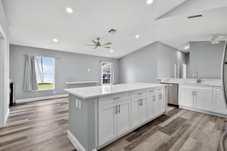 Welcome to this beautifully updated 4-bed, 2-bath home in the Cinnabar community. The modern kitchen boasts sleek stainless steel appliances, expanded cabinetry for ample storage, and a convenient pass-through window to the patio, perfect for seamless outdoor entertaining. The laundry room features a practical sink, updated cabinetry, and a new countertop. The guest bathroom, designed as a cabana bath, has been tastefully renovated for both function and flair. Enjoy stunning lake views from multiple windows throughout the home, creating a serene and inviting atmosphere. Step outside to the spacious patio, ideal spot to relax and soak in the picturesque lakefront scenery. Additional upgrades include: new roof installed in 2022 and several impact-resistant windows for added peace of mind.