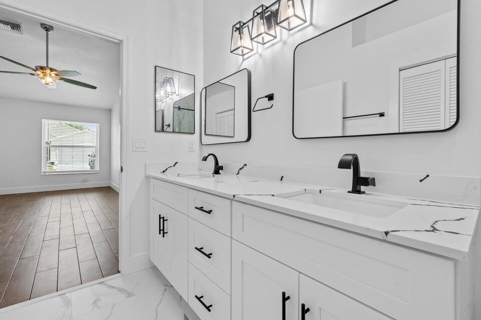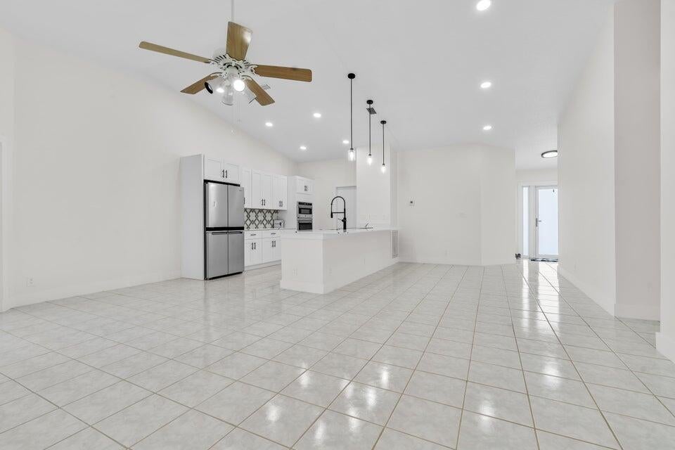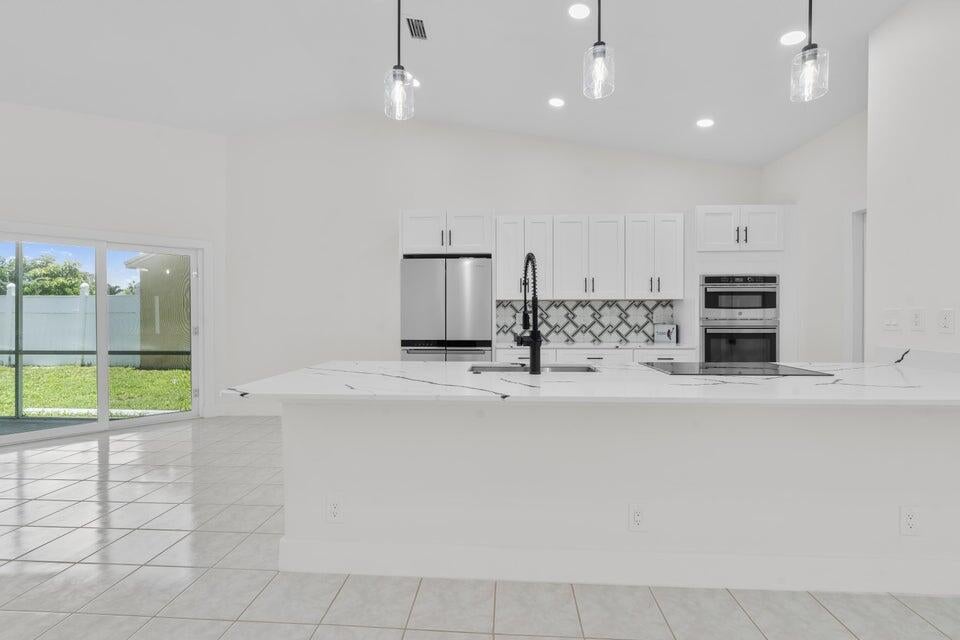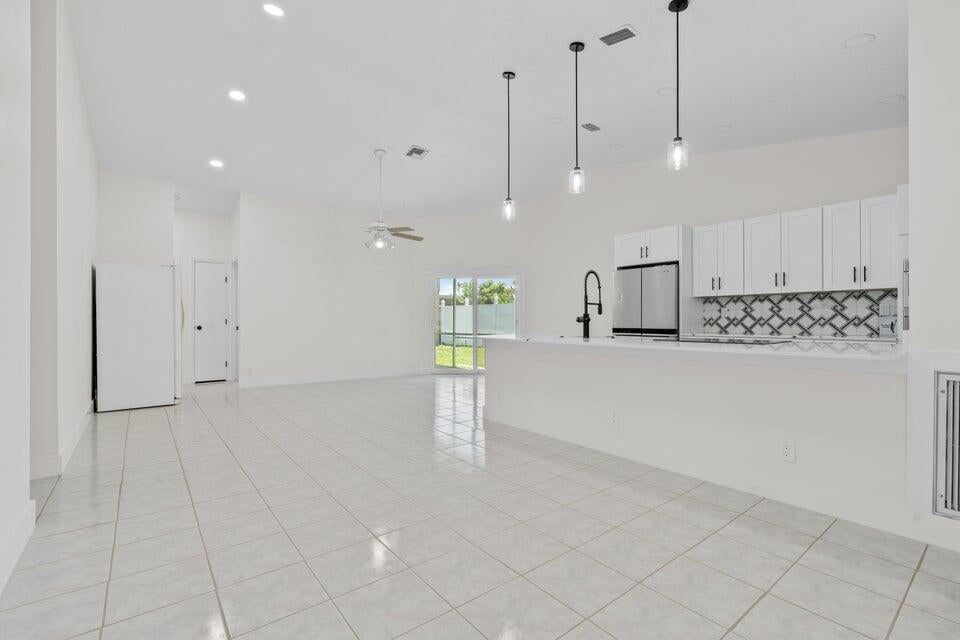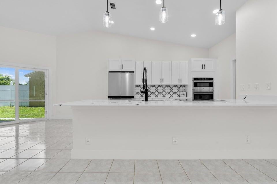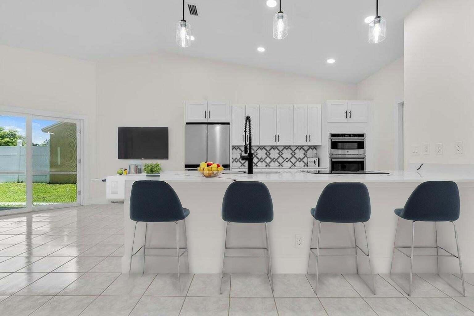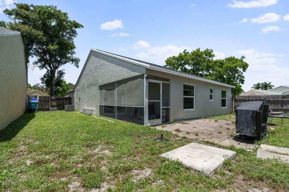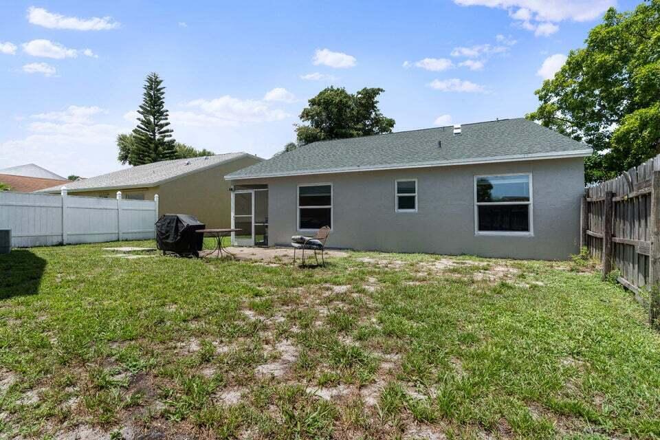 This immaculate single-family home boasts 3 spacious bedrooms, 2 bathrooms, and a 2-car garage. Step inside to an open-concept living area with high ceilings, freshly painted for a modern touch. The heart of the home, a beautifully updated kitchen, awaits with sleek quartz countertops, brand new stainless appliances, and timeless wood cabinetry. Elegant marble and warm wood flooring stretch throughout the home, leading you to the expansive master bedroom, complete with a walk-in closet and an en-suite featuring a walk-in shower. Enjoy peace of mind with a new roof, A/C installed in 2022, and a Water Heater from 2021. Step outside to a large backyard.Situated in a delightful neighborhood, this well-maintained, pet-friendly abode is just a stroll away from Boynton Lakes Plaza, your hub for shopping and dining. Don't miss the opportunity to create lasting memories in this stunning Boynton Beach gem!