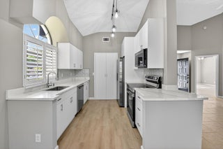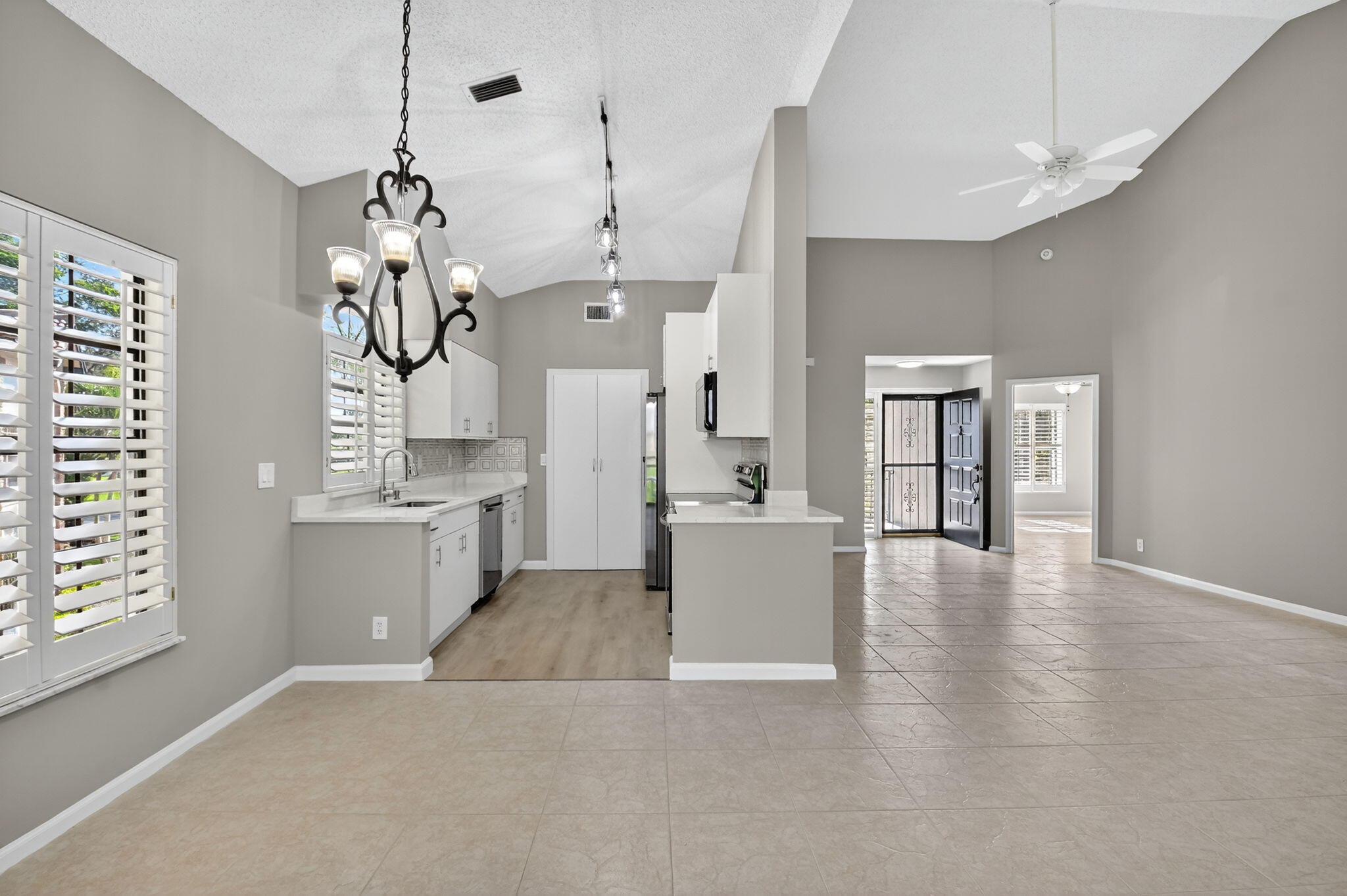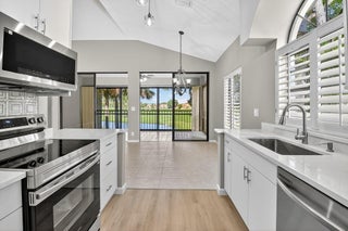 A gem, ready to move in! Just remodeled 2nd-floor condo with stunning panoramic views. Freshly painted throughout--including closets, laundry room, and lanai. The kitchen showcases new modern cabinets, stainless steel sink and faucet, new stainless steel appliances, Quartz countertops, and a new garbage disposal. Bathrooms feature new countertops, sinks, and faucets, including the powder room. Both bedrooms have their own full bath. Added upgrades include new laundry bi-fold doors, AC (2020), new roof (2023), and a recently painted building. Enjoy breathtaking views and exceptional value with water and Comcast Triple Play (internet, cable & phone) included in the HOA. Experience Aberdeen lifestyle to the fullest! Beautiful Country Club. Mandatory membership with a buy in & annual fees. Enjoy access to the golf course, tennis and pickleball courts, bocce ball courts, 3 restaurants, resort style pool and an array of activities that cater to diverse interests. Countless social events! Mandatory membership country club located in Boynton Beach!