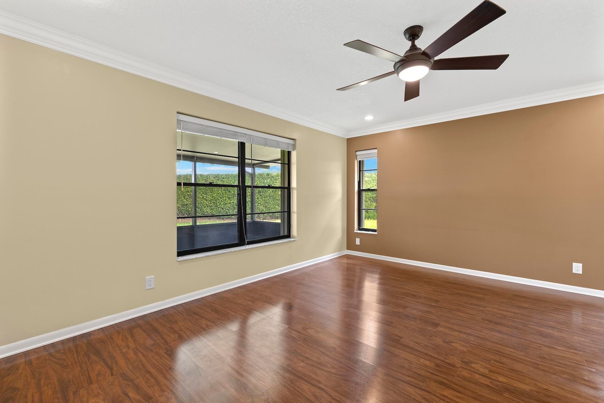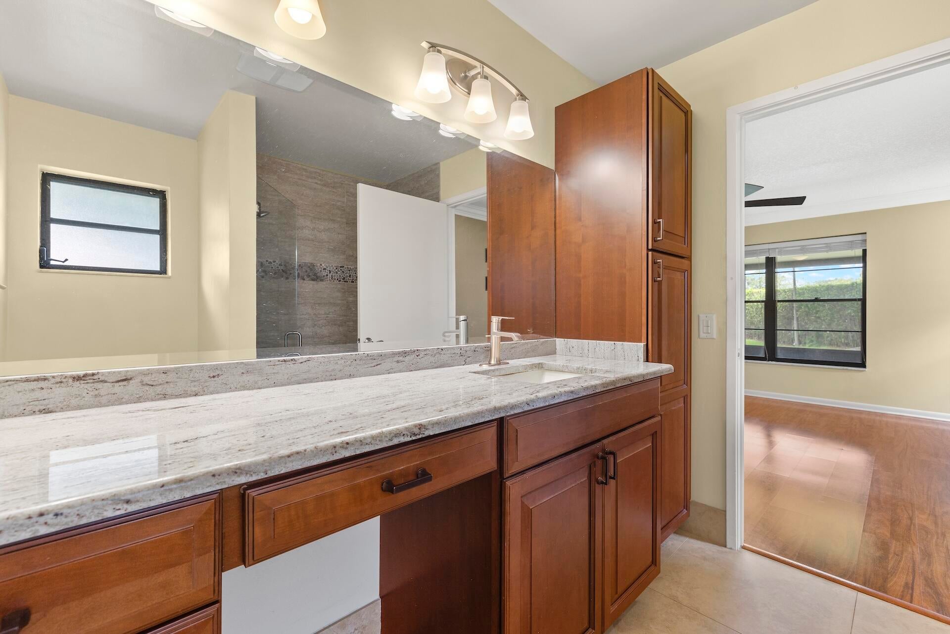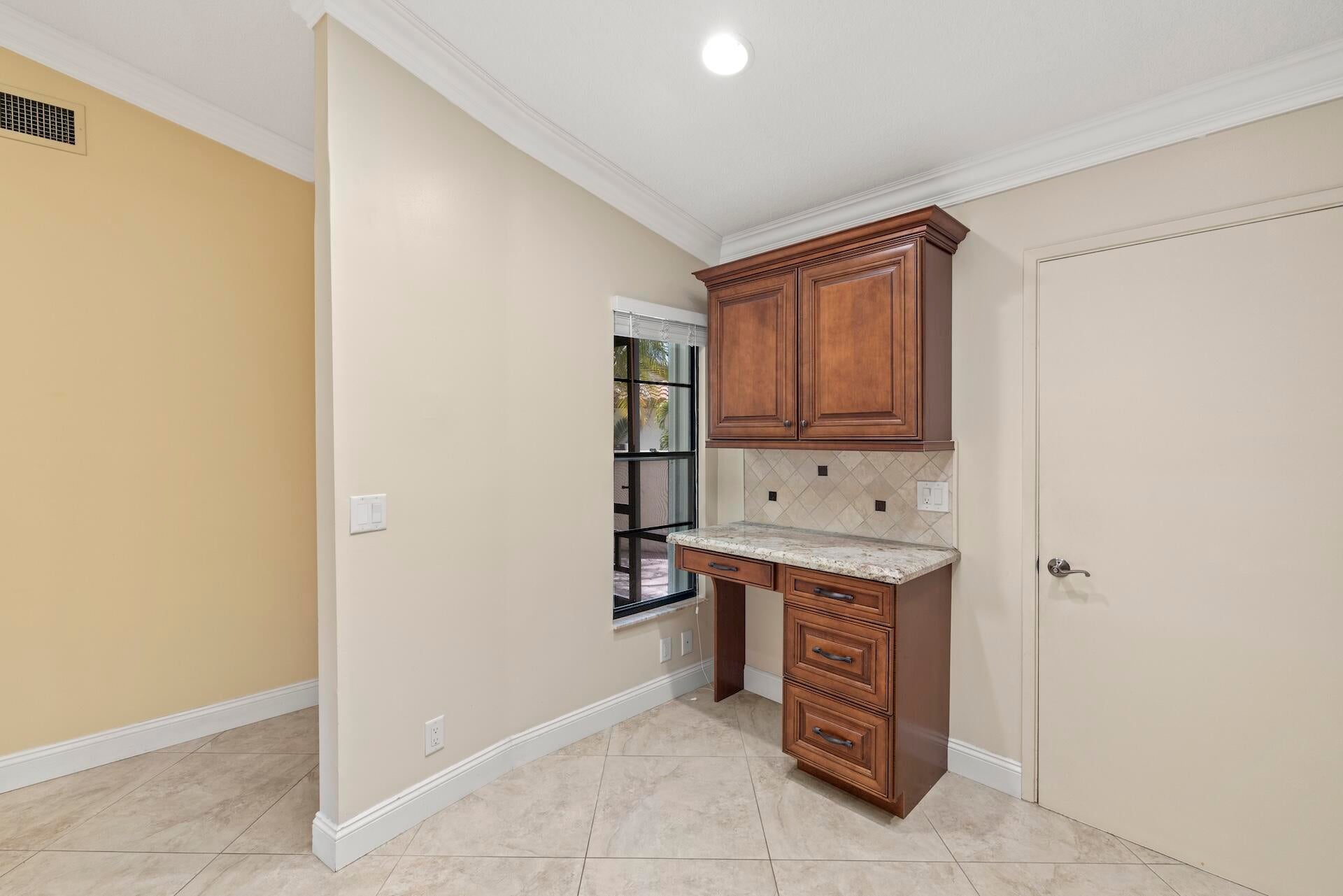 Spacious 2-bedroom villa with sunroom and 1-car garage in the gated 55+ community of Palm Chase. A private courtyard welcomes you, while a skylight fills the kitchen with natural light. Vaulted ceilings in the living and dining areas create an airy, open feel, making the villa live like a single-family home. The garage offers direct access to the kitchen, plus a 2-car driveway. The home also comes equipped with a Tesla Wall Charger. Enjoy resort-style amenities including a temperature-controlled pool, hot tub, fitness center, clubhouse with social clubs, walking paths, pickleball, bocce, and tennis courts. Generator in garage does not convey.