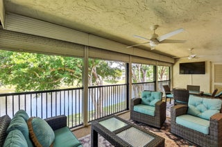 Elegant Country Club Living - Spacious 2-Bedroom + Den with Lake Views Welcome to Hunters Run. From the moment you arrive, you'll appreciate the elevator/lift access, making entry a breeze. Step inside to a sunlit interior where generous proportions and thoughtful design create an inviting flow. The large eat-in kitchen provides plenty of room for cooking & casual dining, while the adjoining living & dining areas offer an open, airy feel--ideal for entertaining or relaxing. The convertible bedroom, currently styled as a cozy den, offers flexibility. Embrace the large screened Lanai overlooking the beautiful Serene Lake Setting.
