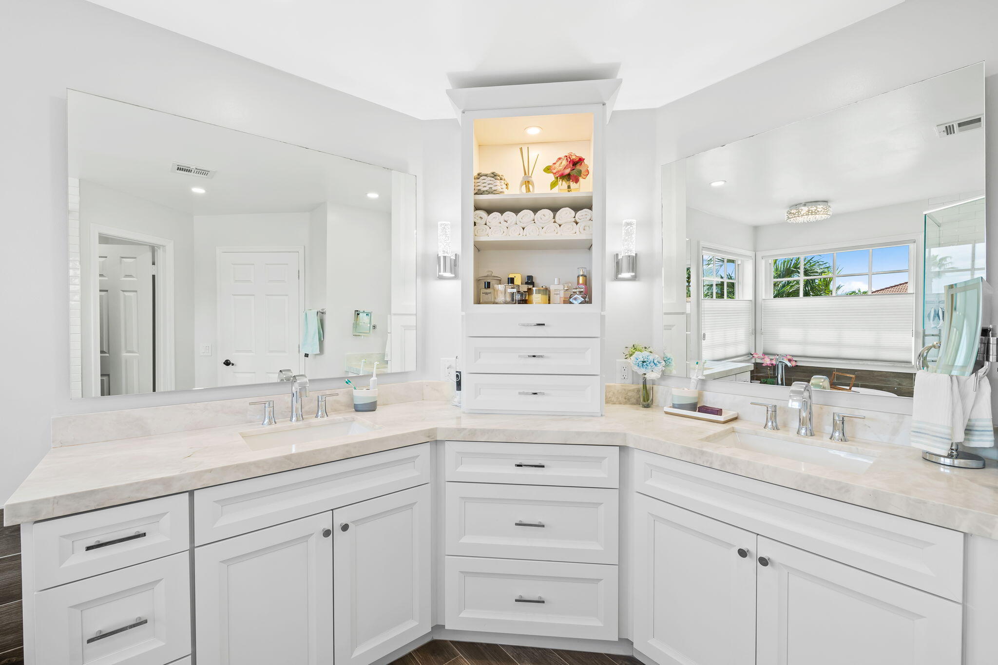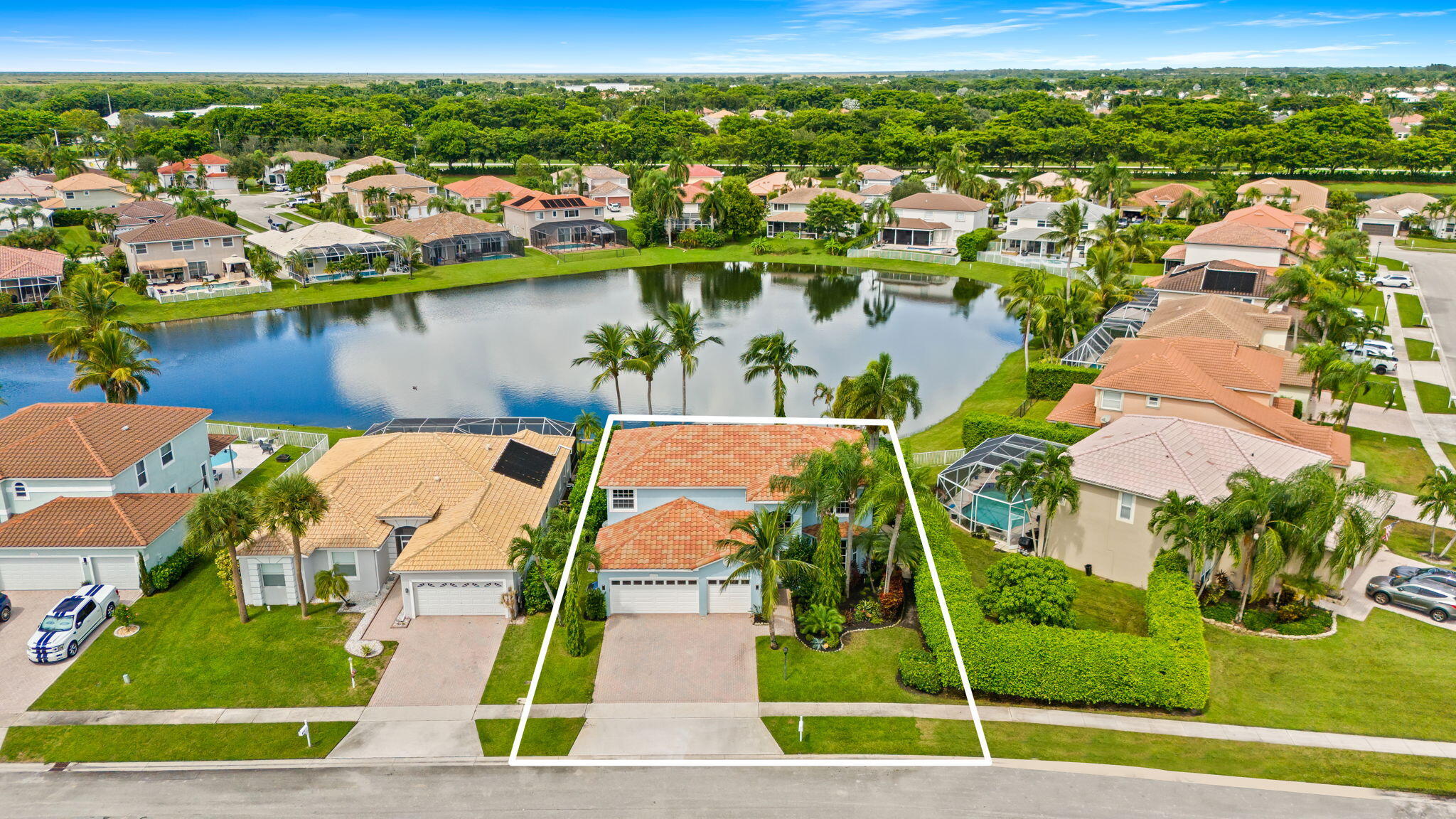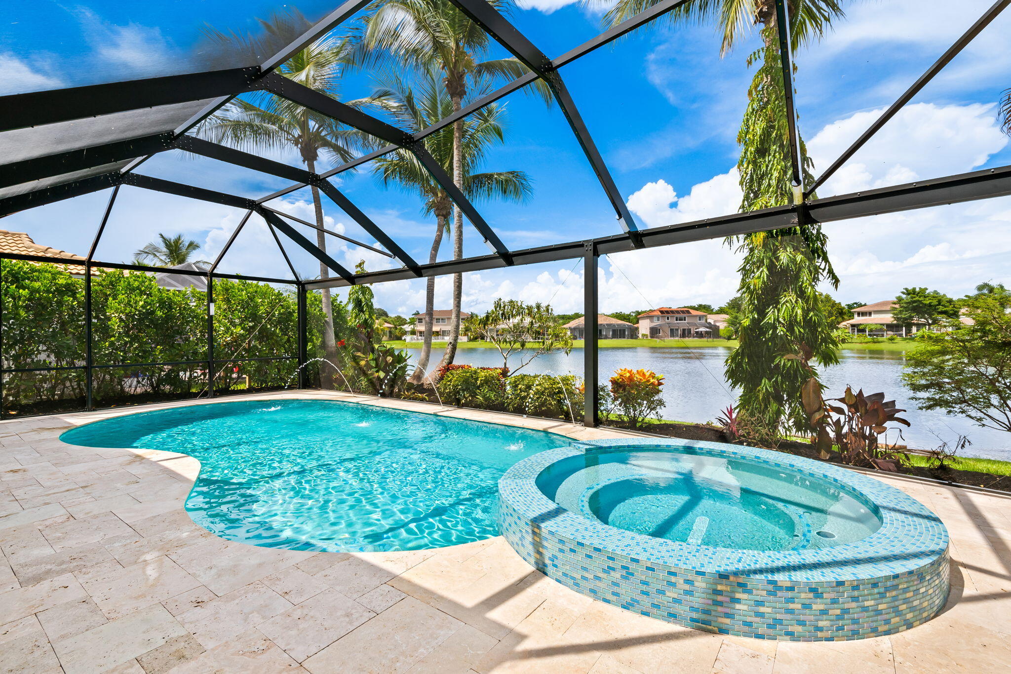 This beautifully renovated home in the desirable Waterways at Boca Winds community offers 4 spacious bedrooms, 2.5 bathrooms, and a 3-car garage on a beautiful lake view lot. Thoughtfully upgraded with wood look tile floors in the main floor living areas and engineered wood floors on the stiars and second floor. Renovated chef's kitchen equipped with Bosch & KitchenAid appliances. Enjoy Martin Logan in-wall theater speakersThe backyard is an entertainer's dream, designed for year-round Florida living. Enjoy a Pebbletec-refinished heated saltwater pool (2025) with Jandy variable drive pump and iAqualink automation, a travertine pool deck, hurricane-rated screen enclosure with LED lighting, and a covered patio with cedar ceiling & outdoor TV wall, summer kitchen and fans. Click for infoAdditional highlights include a newer roof (2017) with gutters, full impact windows & doors, whole-home foam insulation, new electric panel (2024) with generator hookup, landscape lighting (2024), new Electrolux washer/dryer (2023), HVAC (2022), hurricane-rated pool enclosure (2022), and hurricane-rated insulated garage doors. The garage features a Wi-Fi mini-split A/C, epoxy floors, and new Wi-Fi garage door opener (2025). This home has been meticulously maintained with a long list of recent updates, offering peace of mind and modern comfort in one of Boca Raton's most sought-after communities. Walking/biking distance to desirable Waters Edge Elementary, Loggers Run Middle and West Boca High. Also close to South County Park with Osprey Point Golf Course, dog parks, water park, amphitheater, tennis courts, ski lake and more!