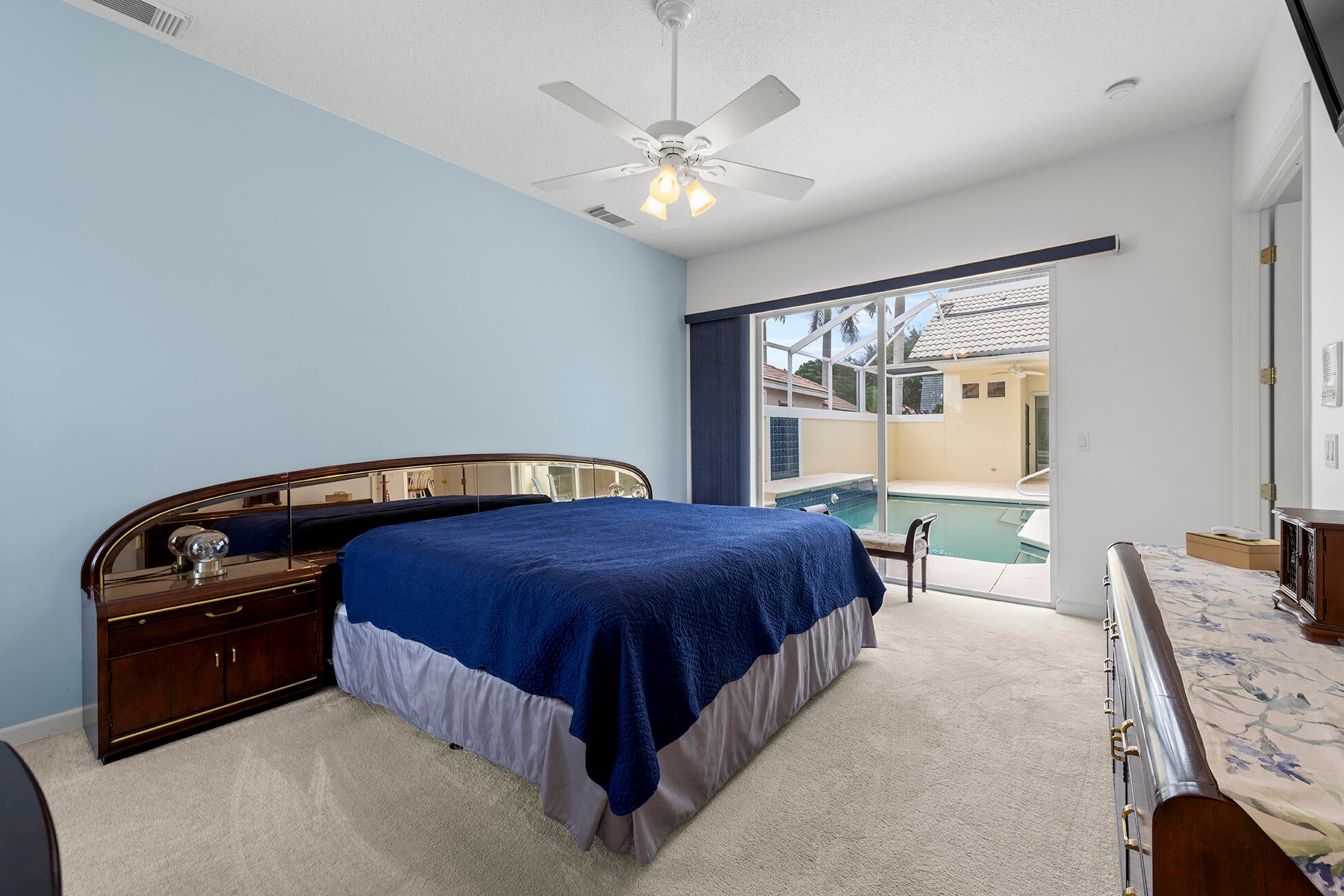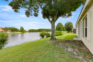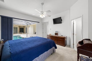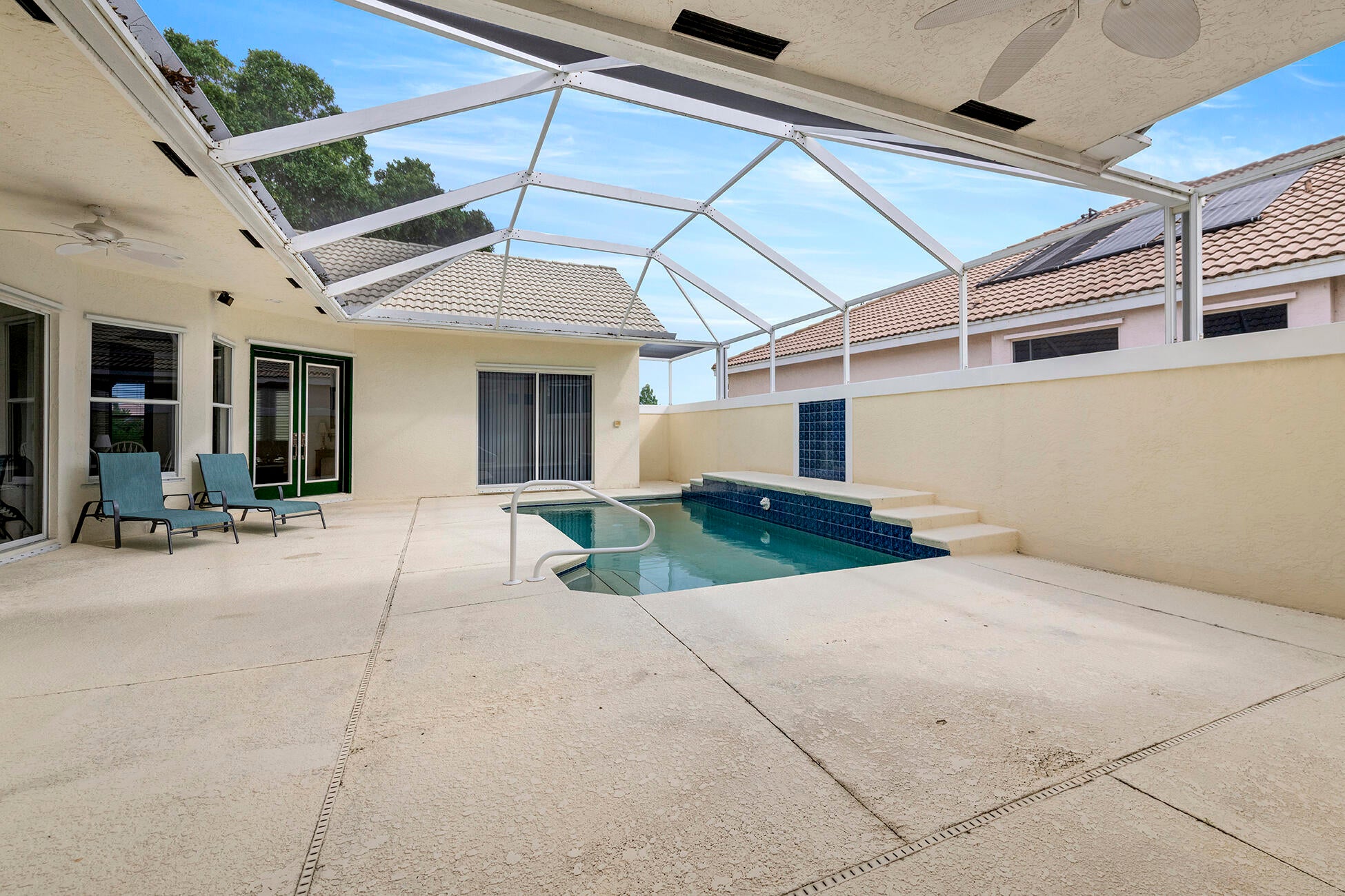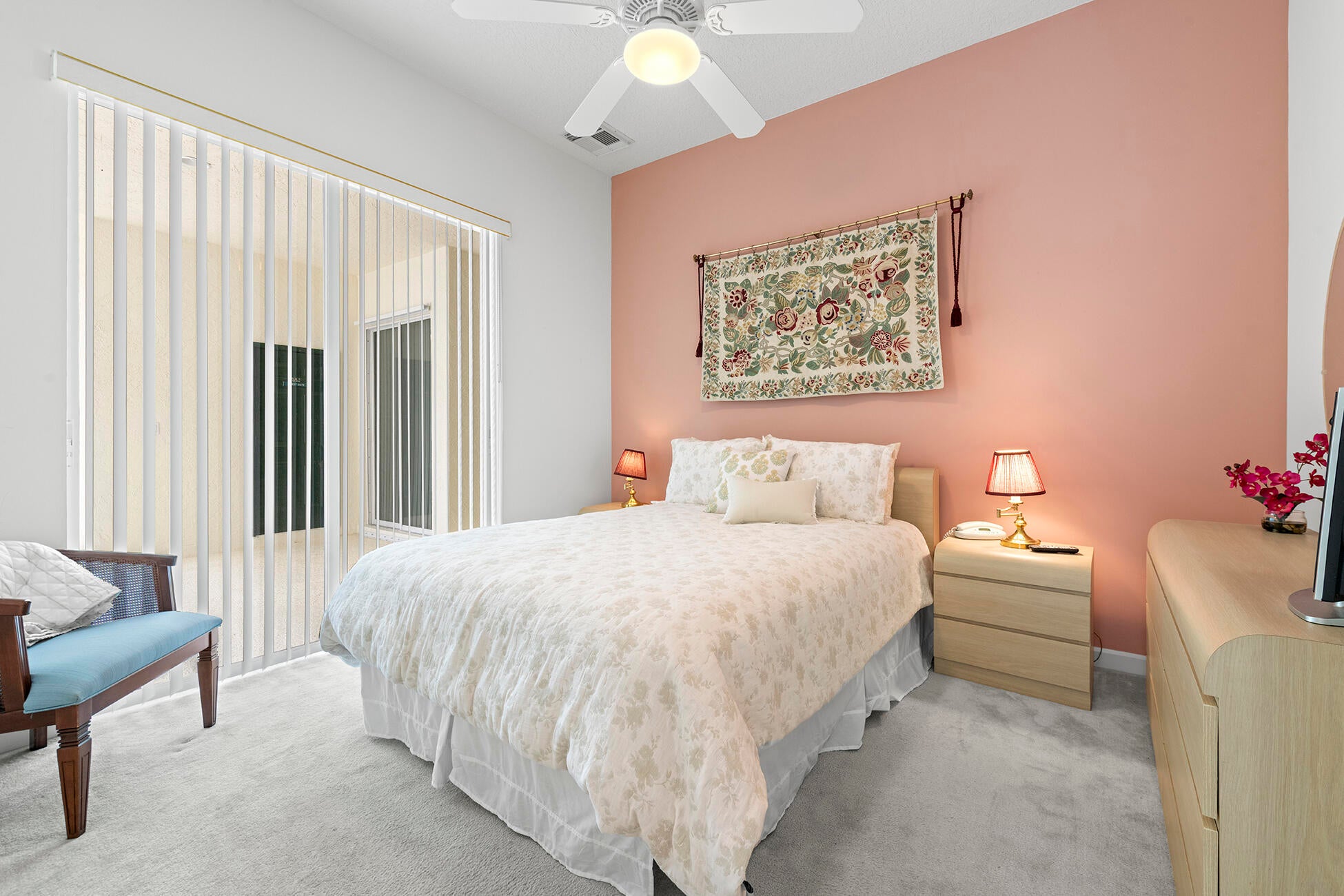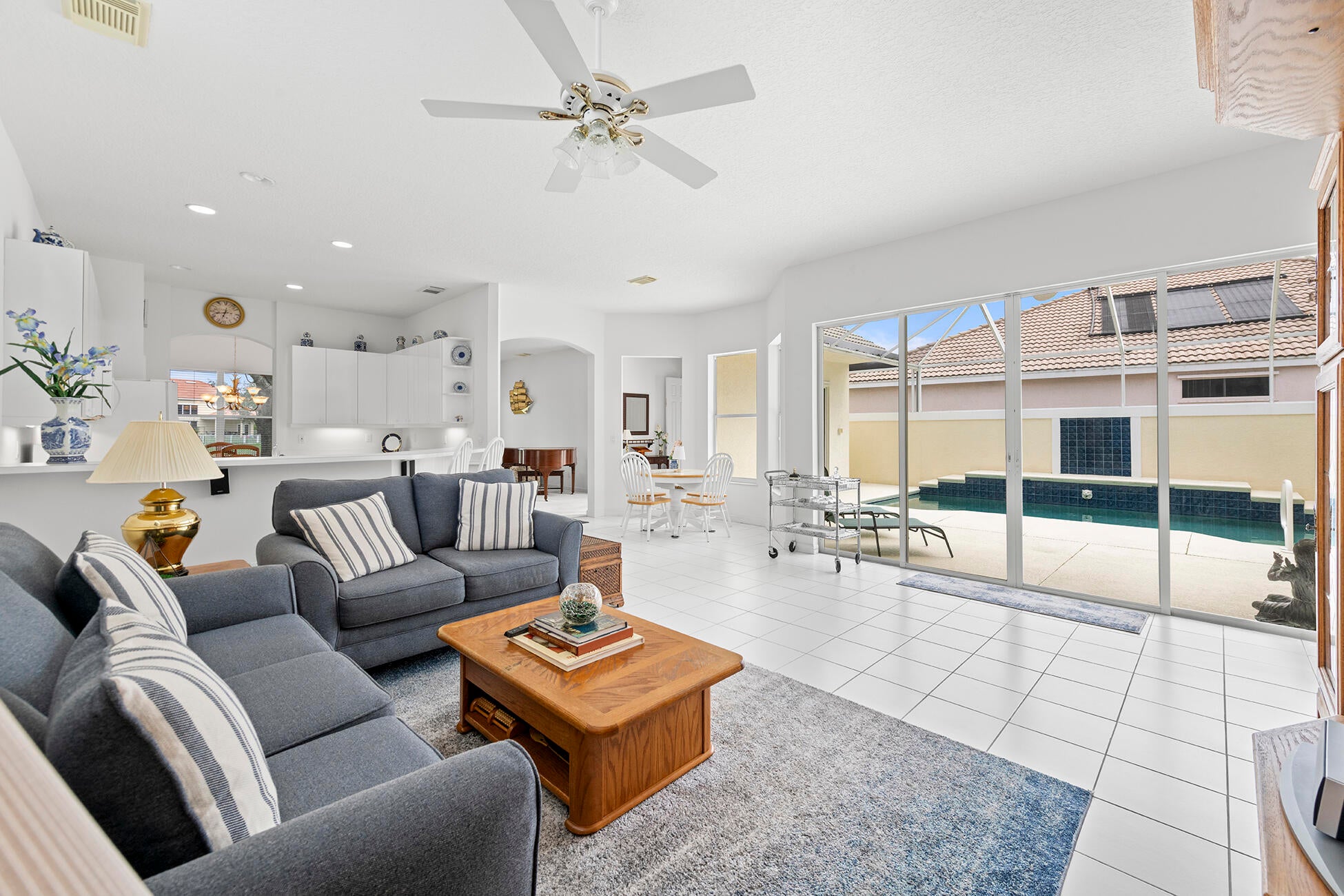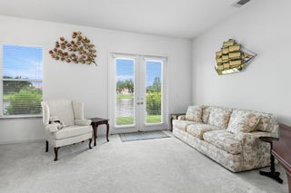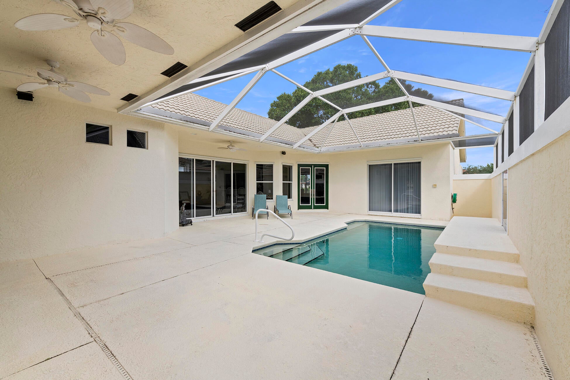 Incredible price per sq ft! This 4BR/3BA courtyard pool home includes a detached suite, perfect for in-laws, guests, or a private office. The split floor plan offers privacy with vaulted ceilings, tile throughout main living areas, and sliders from the master, living room, and guest cottage opening to the screened pool and private courtyard with lake view. CBS construction with accordion shutters on all exterior windows/doors plus panels for courtyard provide extra strength and security. Updates include A/C 2019, WH 2010, new pool pump 2021, and a solar heater for year-round swimming. Lake Charles is a gated community with clubhouse, tennis, and more, just minutes from dining, shopping, golf, and I-95. Homes like this are rare!