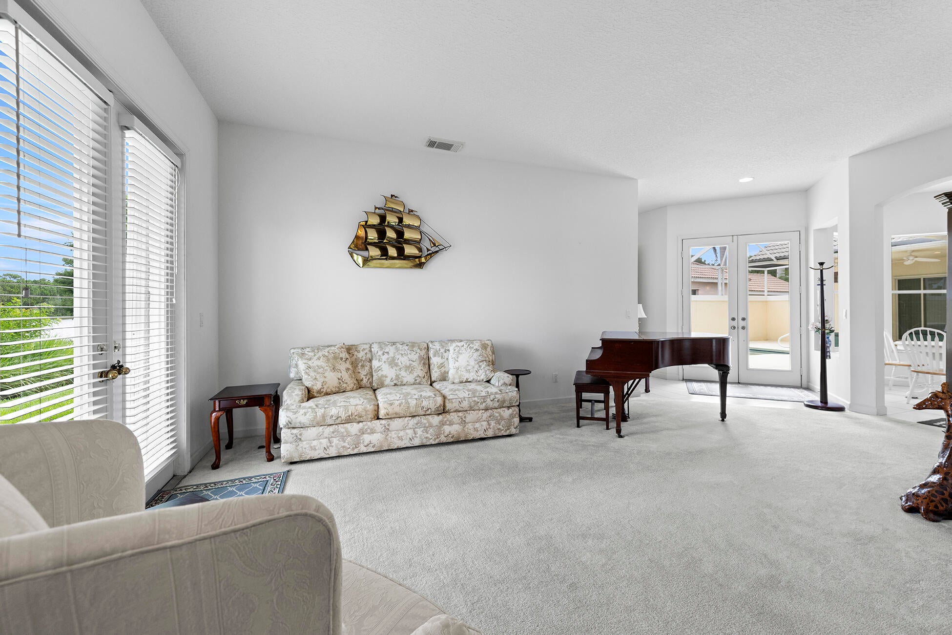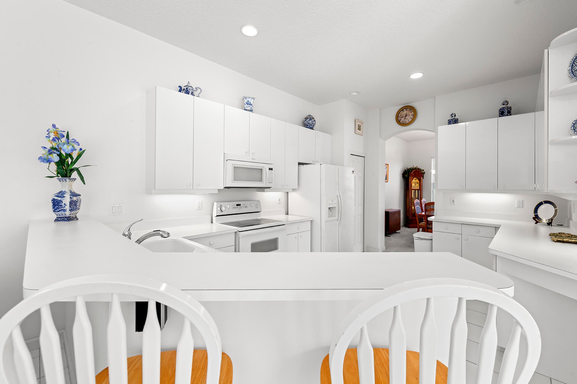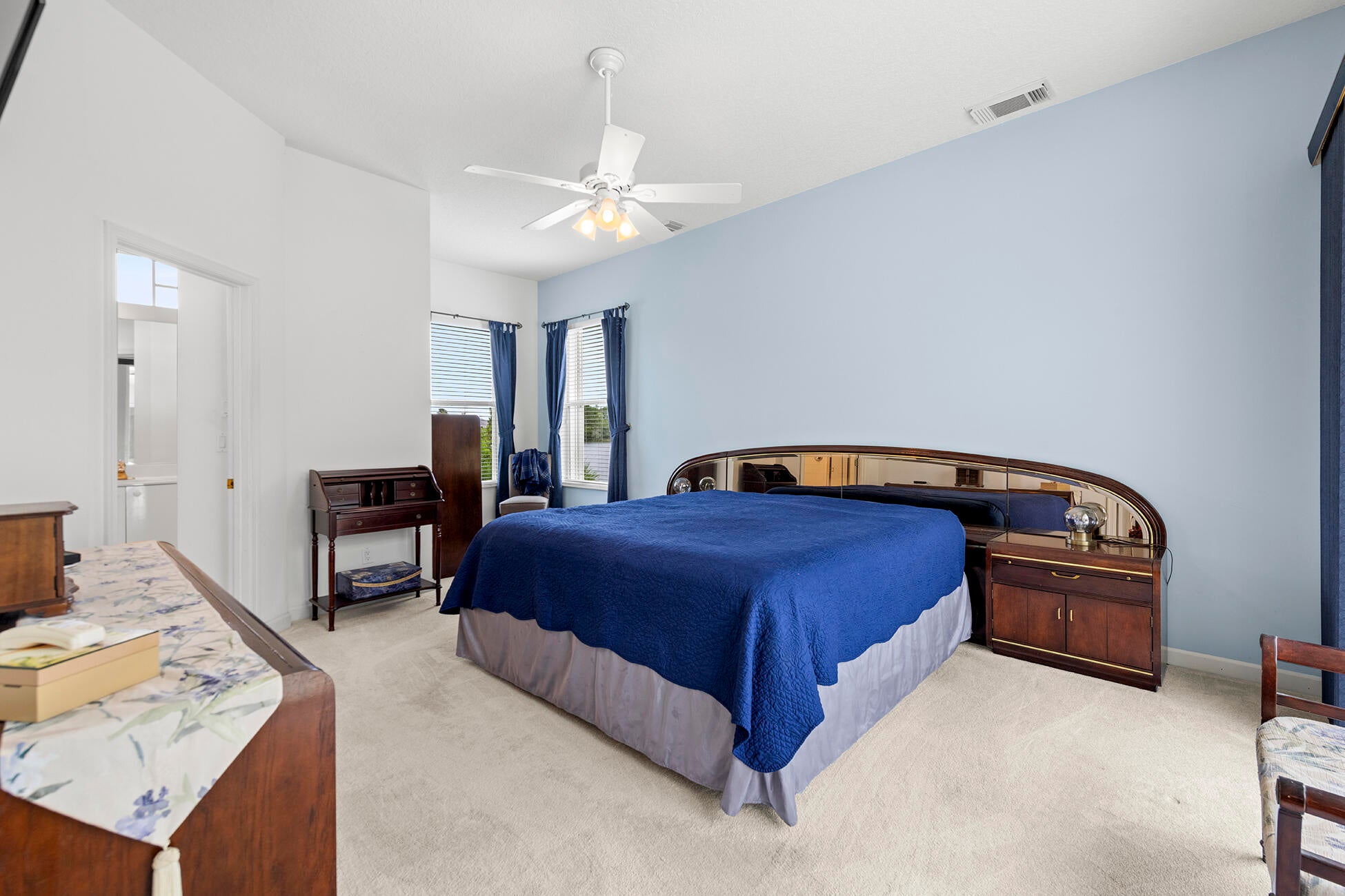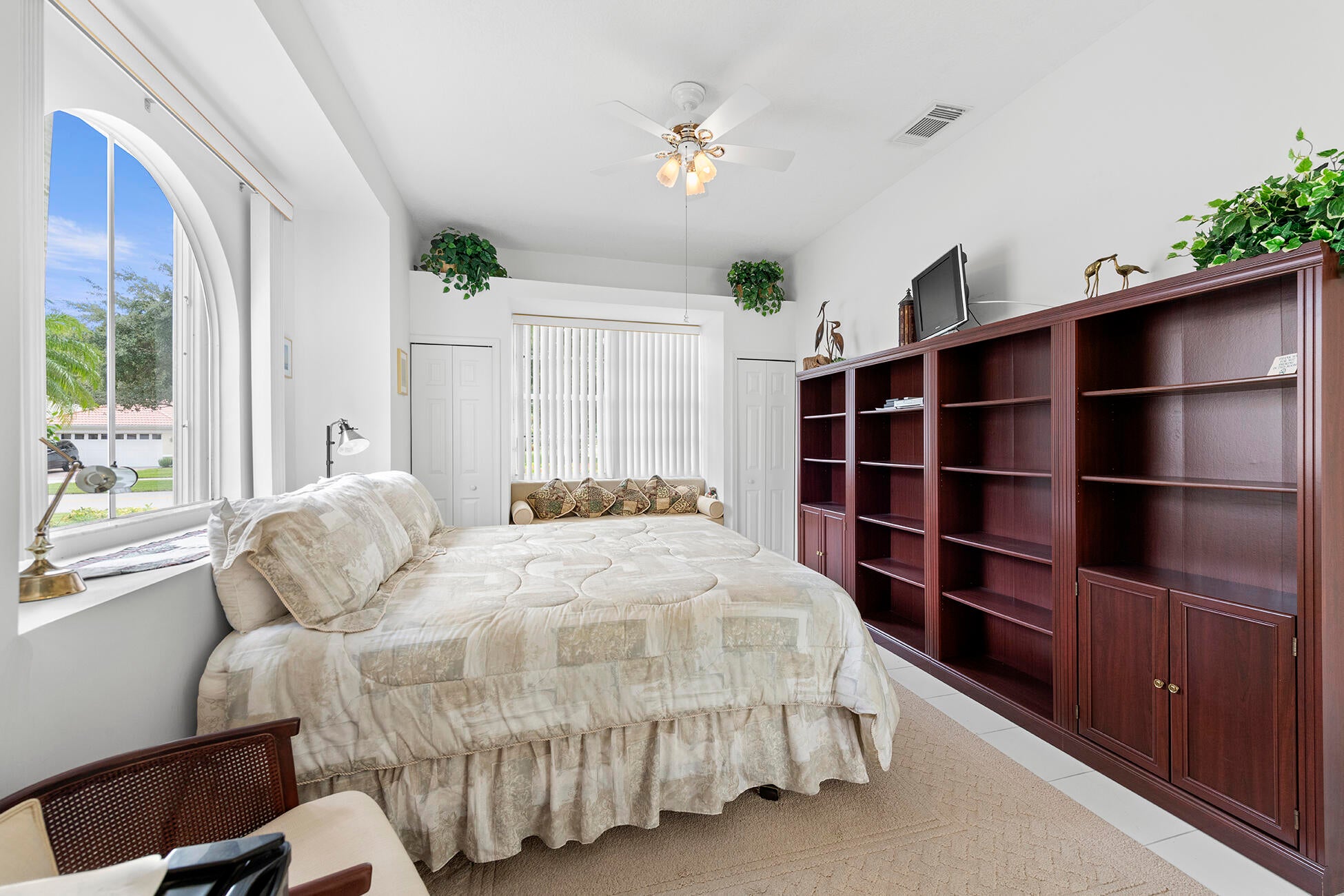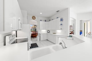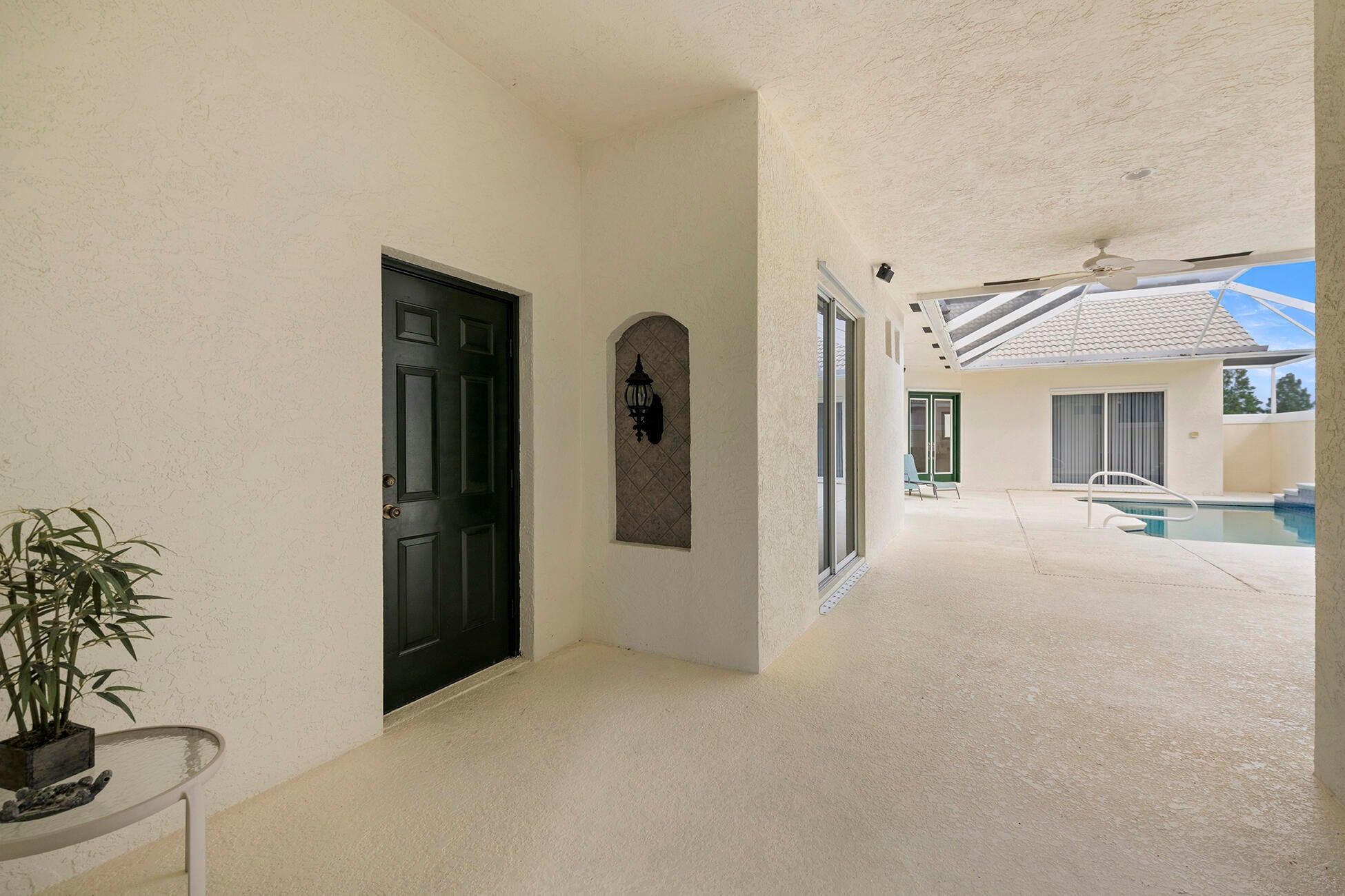 Incredible price per sq ft! This 4BR/3BA courtyard pool home includes a detached suite, perfect for in-laws, guests, or a private office. The split floor plan offers privacy with vaulted ceilings, tile throughout main living areas, and sliders from the master, living room, and guest cottage opening to the screened pool and private courtyard with lake view. CBS construction with accordion shutters on all exterior windows/doors plus panels for courtyard provide extra strength and security. Updates include A/C 2019, WH 2010, new pool pump 2021, and a solar heater for year-round swimming. Lake Charles is a gated community with clubhouse, tennis, and more, just minutes from dining, shopping, golf, and I-95. Homes like this are rare!