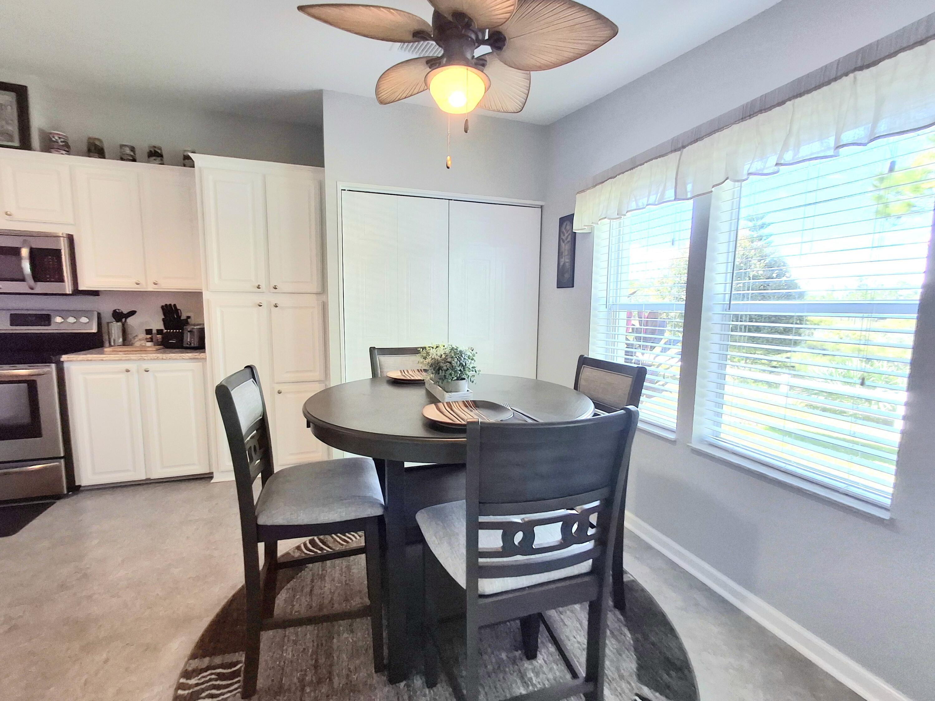 Immaculate home that backs up to the Savanna Preserve. Wood flooring in the living and bedrooms. Updated kitchen with lots of cabinet space and SS appliances. Double carport with double door shed to park your golf cart in. Both bathrooms are updated as well. Accordion shutters too. This home is pristine. If you want updated, upgraded and clean, this is it. Come view this home before its gone! HOA includes cable, internet and trash. Savanna Club is an active 55+ community with an 18-hole golf course, an on-site restaurant, a theater, 3 clubhouses, 3 pools, 3 exercise rooms, pickleball, tennis, bocce, shuffleboard, cornhole, horse shoes, and so much more like numerous clubs to join and activities and events to attend.