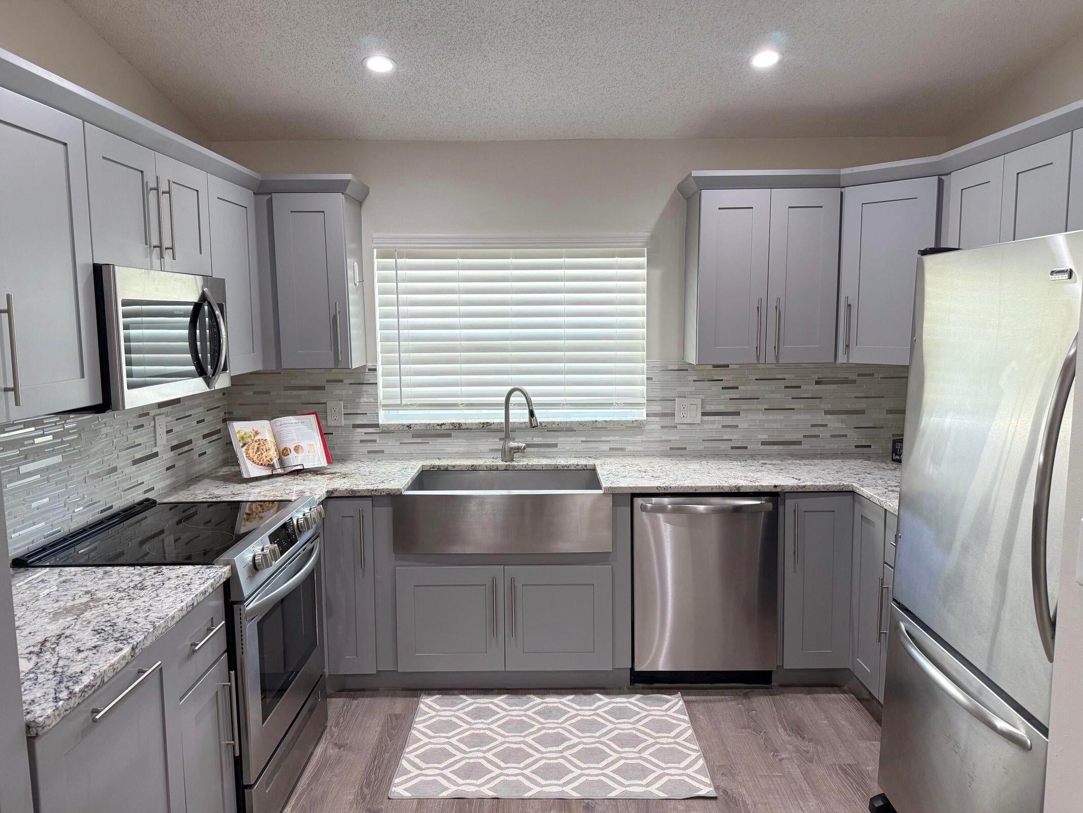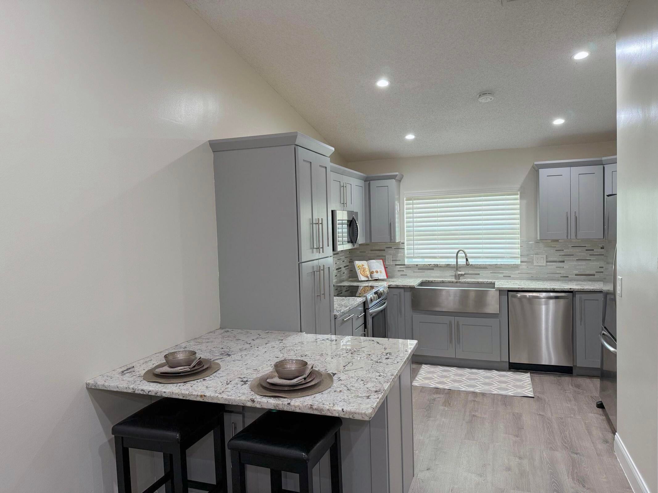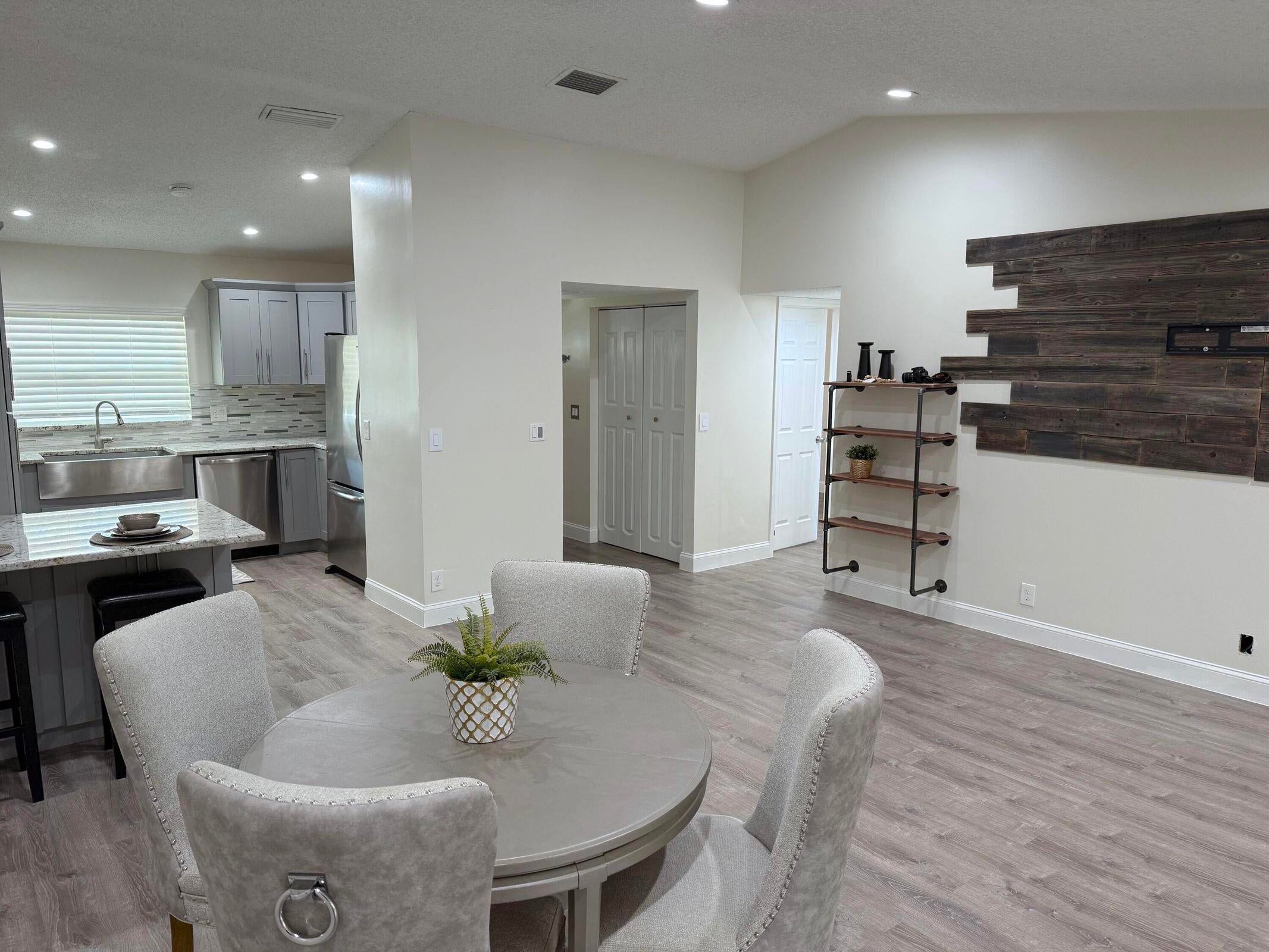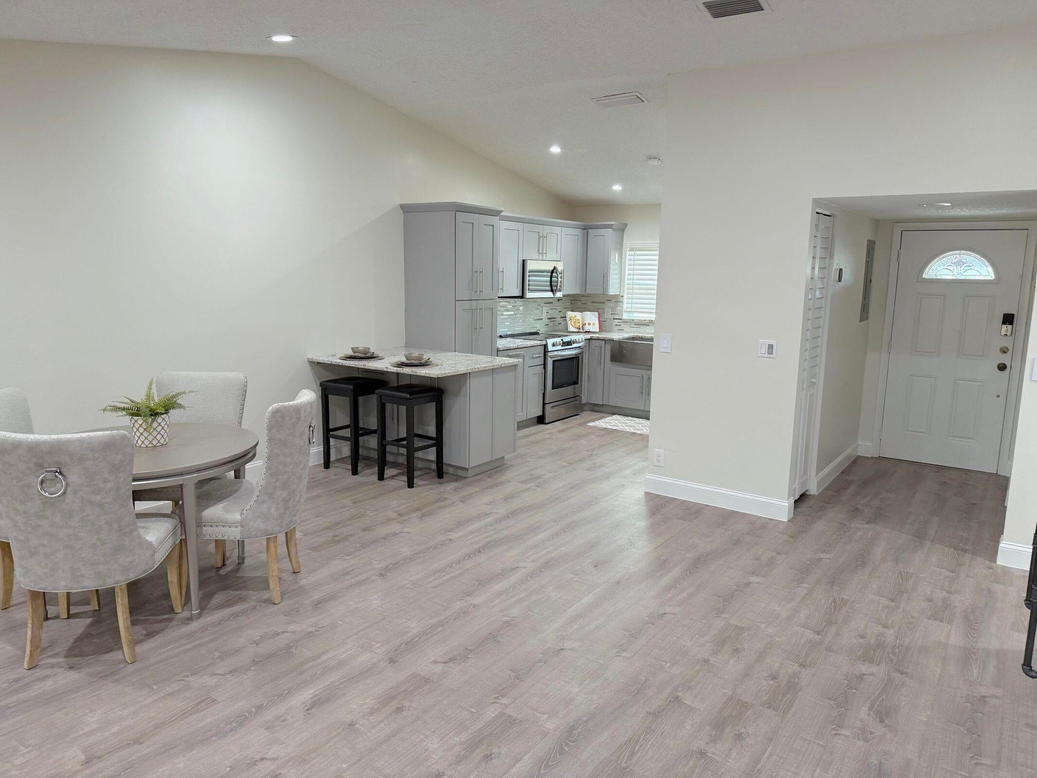 Public Remarks:Move in ready, beautifuly updated home with bright and open layout with vaulted ceilings, combining comfort and modern style. The spacious living and dining area flows seamlessly into an enclosed Florida room, perfect for relaxing or entertaining year-round. The remodeled open kitchen features contemporary finishes, while the modern bathroom adds a sleek touch to the home's appeal. The guest bedroom enjoys access to a private courtyard and comes with a large separate outdoor storage area. Enjoy the convenience of a two-car private driveway plus an additional parking space. The fenced backyard provides privacy and space for outdoor enjoyment. Located in one of the best areas of Boynton Beach, this home is just minutes from I-95, Palm Beach International Airport, and beaches!