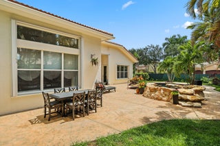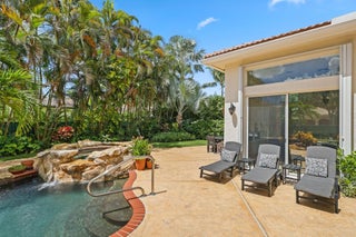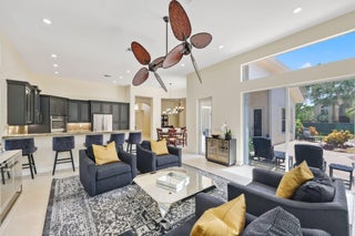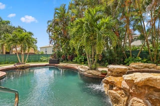Step into one of the largest single-story homes in the Canyons community--this stunning Sienna Model offers over 3,300 sq. ft. under air with 5 bedrooms, 3 bathrooms, and a desirable tri-split floor plan. Soaring ceilings and open living spaces create an inviting flow, perfect for both everyday living and entertaining.Sitting on a spacious .32-acre lot, the property showcases mature landscaping, accordion shutters throughout, and plenty of room for indoor-outdoor living. The backyard is a true retreat with a custom pool, hot tub, and rock waterfall, offering the ultimate relaxation setting.Inside, the master suite features oversized walk-in closets, while the chef's kitchen has been recently upgraded with solid wood cabinetry, top-of-the-line stainless steel appliances, granite countertops, and a designer backsplash. Living in Canyon Lakes means resort-style amenities, including 24/7 gated security, clubhouse, basketball courts, clay tennis courts, a heated pool, kids' splash pad, fitness center, weekly food trucks, and year-round community events.
