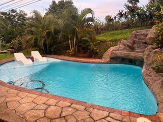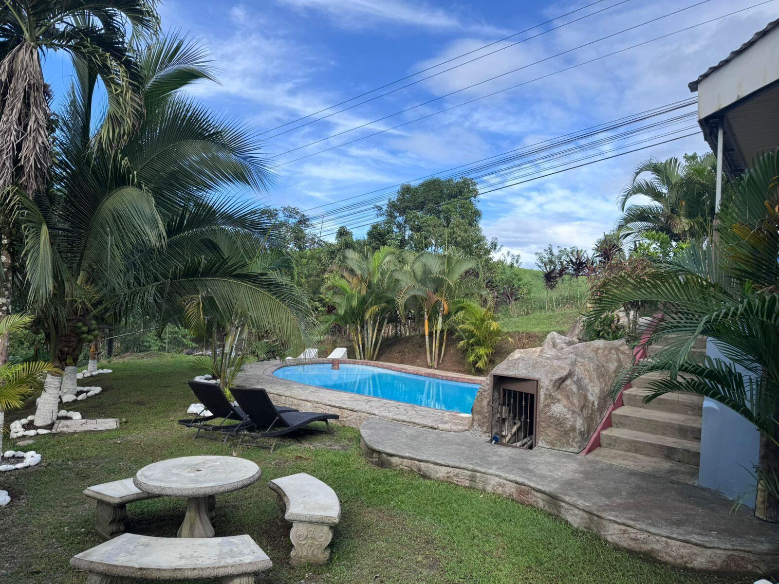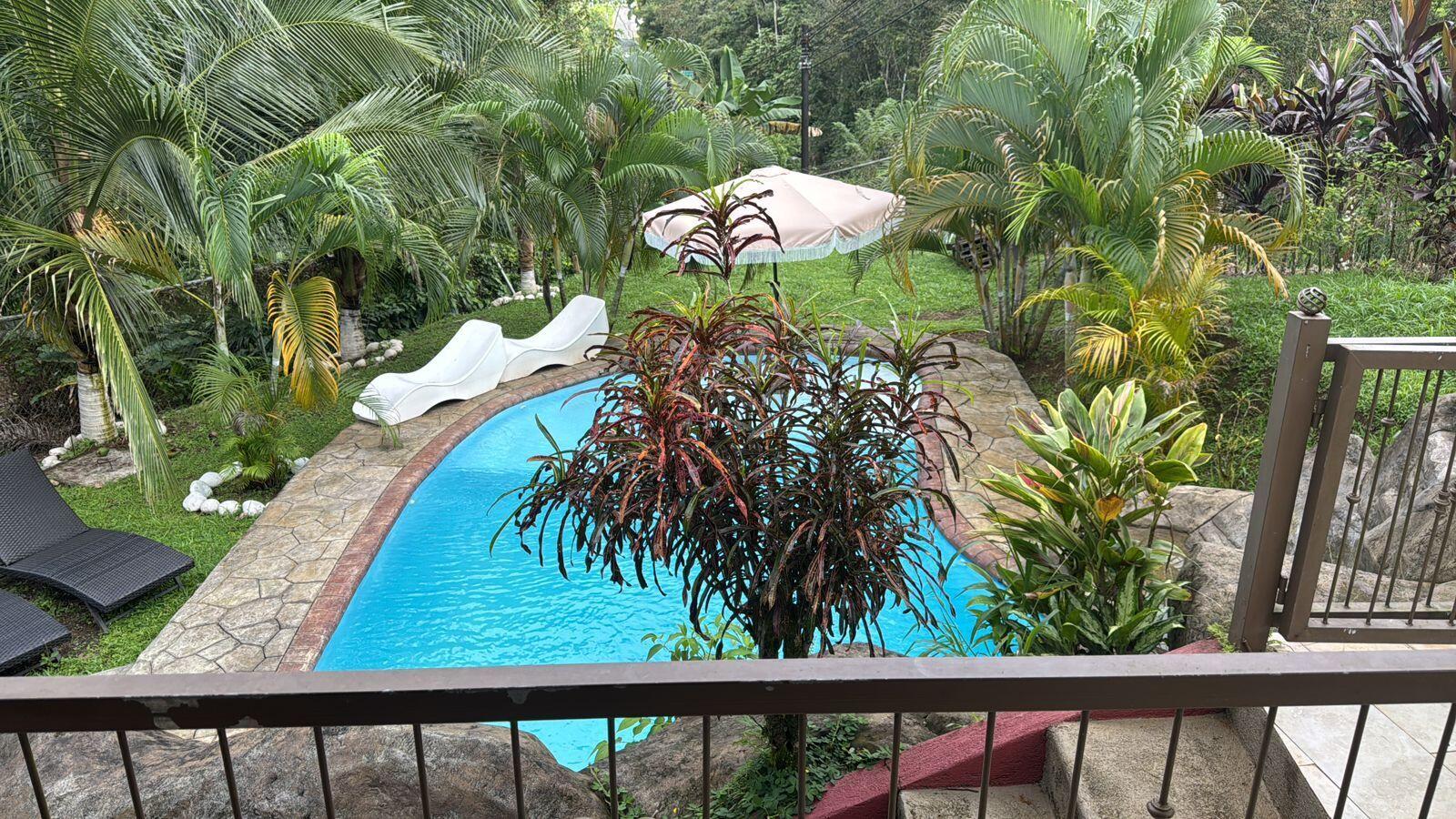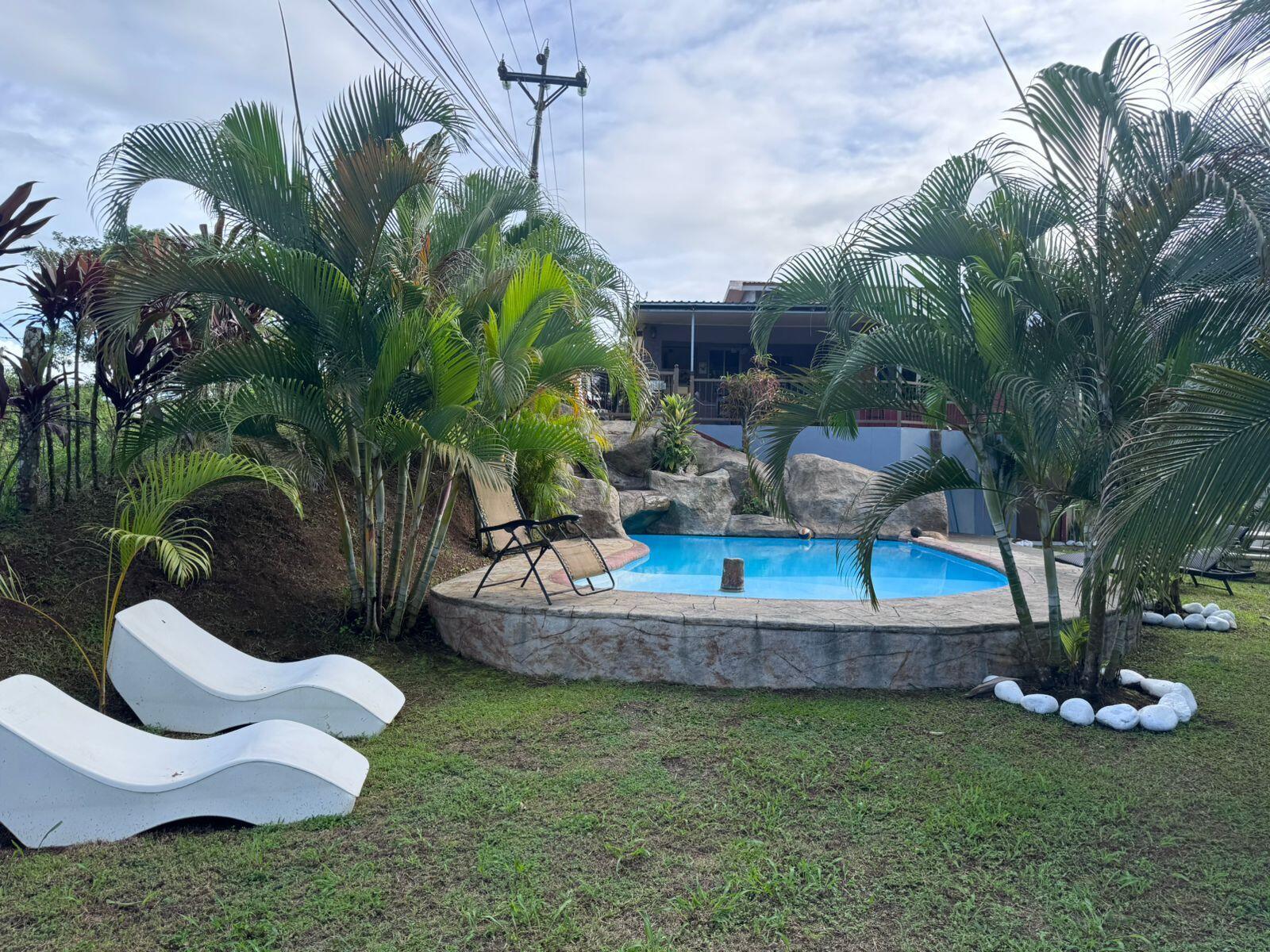 Beautiful property in La Fortuna de San Carlos, Costa Rica, 1150 m2, 400 m2 of construction, 3 levels, 4 bedrooms, 2 bathrooms, parking, fully furnished, private pool of 42 cubic meters, green areas, terrace, balcony, Jacuzzi, metal roof, block and concrete construction.