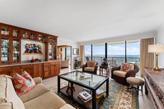 Rarely available penthouse in Tequesta Towers, one of Jupiter Island's most coveted oceanfront addresses. Built by DiVosta and impeccably maintained, the building is current on inspections and strong financial reserves. Enjoy sweeping turquoise ocean views from this elegant residence featuring a sophisticated kitchen with newly painted cabinets, a generous island, built-in bar, and abundant closet space. The 3rd bedroom has been reimagined as a stylish club room with a custom Zoom bed cleverly concealed behind a sleek built-in TV. Savor breathtaking Intracoastal and sunset vistas from your west facing front patio. Additional amenities include a designer lobby, climate-controlled owner storage, garage parking, grill/patio area, newly renovated fitness center, and a heated saltwater pool.