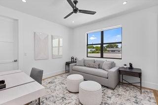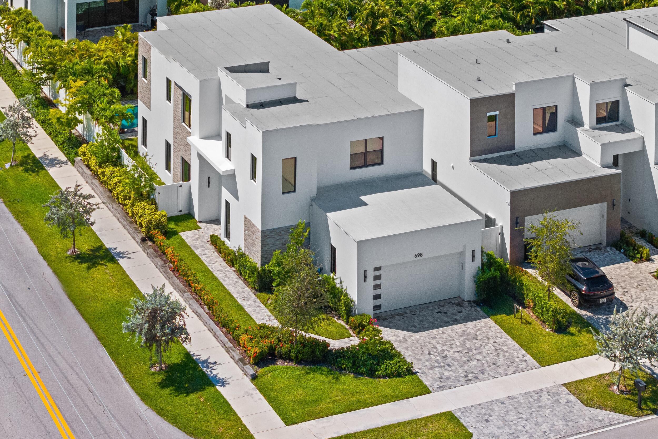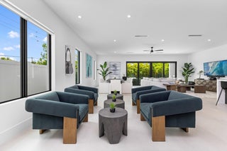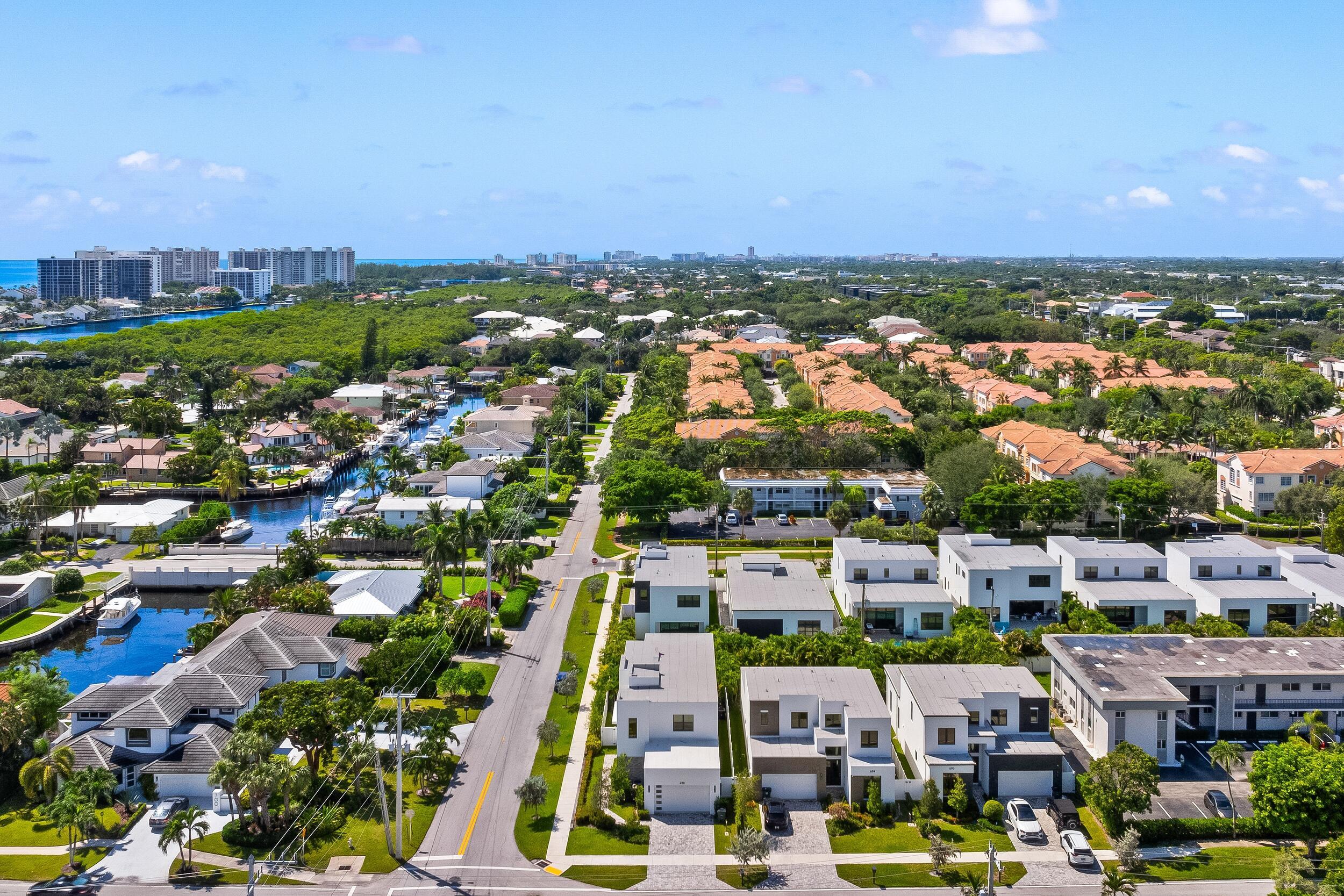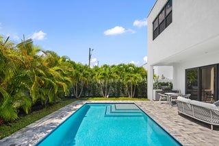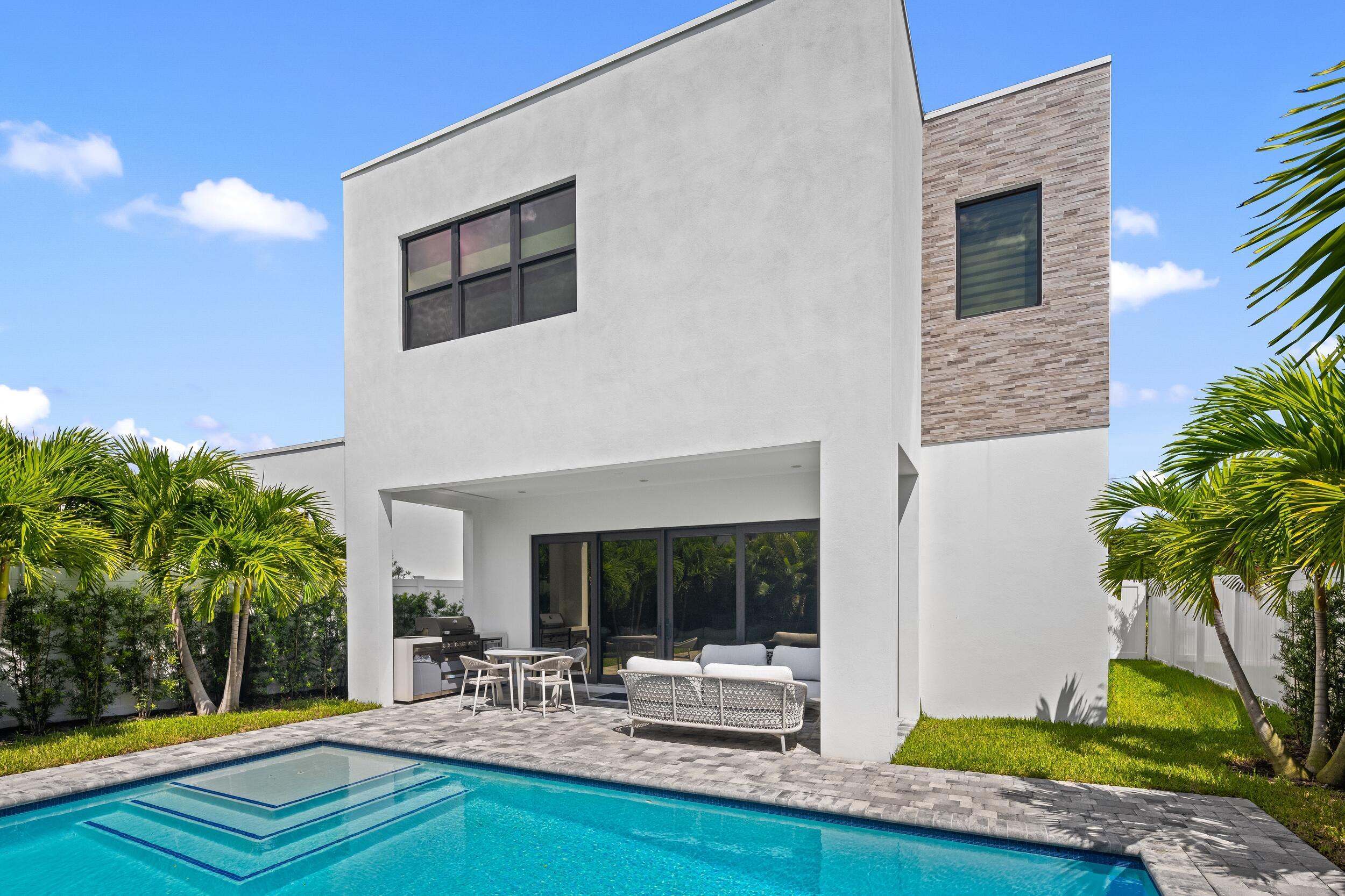 Presenting graceful architecture and light-filled interiors, this East Boca Raton residence evokes the refined ease of contemporary living. Expansive open spaces, soaring windows, and elegant finishes establish an atmosphere of both sophistication and warmth, where every room flows seamlessly into the next. Outdoors, a fully landscaped backyard with a resort-style pool with ideal Southern exposure creates a serene sanctuary, seamlessly extending the home's living and entertaining spaces.The great room, dining area, and gourmet kitchen form the heart of the home, designed for both vibrant entertaining and quiet moments of retreat. Upstairs, the primary suite offers a serene sanctuary with views over the pool, a spa-inspired bath, and dual walk-in closets, while additional ensuite bedrooms and a versatile loft provide abundant space for family or guests. A first-floor guest suite ensures comfort and privacy for visitors. Positioned east of Federal Highway on a corner lot, the property is part of the Boca Enclave community, an intimate collection of just ten architecturally striking residences, the property enjoys a premier East Boca Raton address, moments from the boutiques and fine dining of Downtown Boca and the vibrant energy of Delray Beach's Atlantic Avenue. Constructed entirely of CBS block and appointed with expansive large-format flooring, soaring windows, and refined finishes throughout, this residence embodies the elegance, comfort, and sophistication of modern South Florida coastal living.