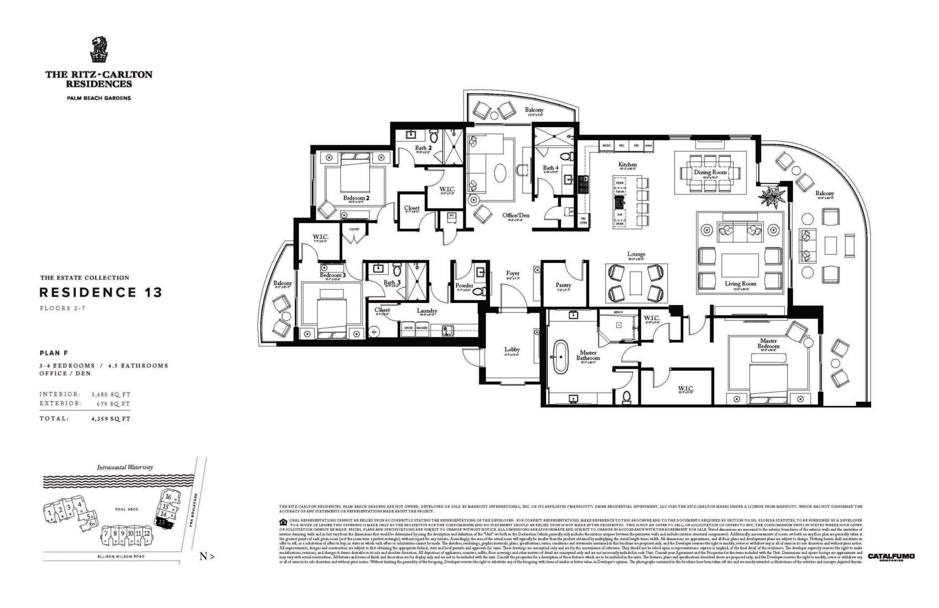 Residence 213F is a spacious corner 3BR + Den, 4.5BA at The Ritz-Carlton Residences, Palm Beach Gardens. Located in the North Building, it offers southern exposures over the Intracoastal Waterway, private marina, and resort-style amenities. A flow-through layout and 12' deep balcony create seamless indoor-outdoor living with abundant natural light. The den has its own balcony and is one of only seven F plans with a full bath, allowing a flexible 4th bedroom. Floor-to-ceiling triple-pane glass frames sweeping Intracoastal sunsets. Features include European oak cabinetry, Wolf & Sub-Zero appliances, gas cooktop, and two garage spaces. Residents enjoy 20,000+ sq. ft. of amenities and the legendary service of The Ritz-Carlton. Completion Q2 2026