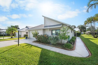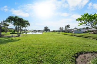 Enjoy peaceful lake views from this well-maintained 3-bedroom home in Heritage Ridge North. Set on nearly one-third of an acre on a waterfront peninsula, the home features vaulted ceilings, Brazilian Cherry engineered wood floors, and an updated kitchen with wood cabinets and Quartzite counters. The spacious primary suite includes dual closets and access to the screened patio. Recent upgrades include a 2021 roof, 2024 impact windows and doors, NEW kitchen appliances, new garage door, and a whole-house generator with an underground propane tank. The community offers a pool, tennis, pickleball, and golf options. Close to parks, beaches, shopping, and dining.