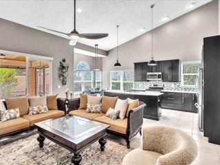 Beautiful Seasonal Rental in Aberdeen Country Club comes with Social membership. Open Floor Plan with Vaulted/High Ceilings with fans throughout. 3 BR 2 Bath . This inviting fully-furnished home has formal LR/DR, triple play is covered, screened and tiled lanai overlooking a private backyard. Spacious Kit w/tall ESPRESSO cabinets, island and granite countertops. Generously stocked for gourmet meals and entertaining. Sunny eat-in kit table. Kit is open to family rm with an 85'' TV with plenty of seating. Tranquil Primary Bedroom has a king size tempur-pedic mattress w/ adjustable frame and massage WIC/DBL Closet has built-in organizers. Primary bath has a remodeled walk-in-shower, dual sinks w/ make-up table. BR2 Queen, BR3 Daybed & workstation. Gated friendly community.Rental includes Community Pool as well as Social membership in upscale and remodeled Aberdeen Golf & Country Club. Rental Membership includes use of the renovated Clubhouse, Panache Dining Room, Oasis Restaurant, Sunset Lounge, Three resort style pools with jacuzzi, Fitness Center, Card Rooms, Pickleball, Bocce, Club Activities and Fitness Classes. Single Membership can be upgraded to include Family, Tennis and/or Golf for an extra fee payable by Tenant.
