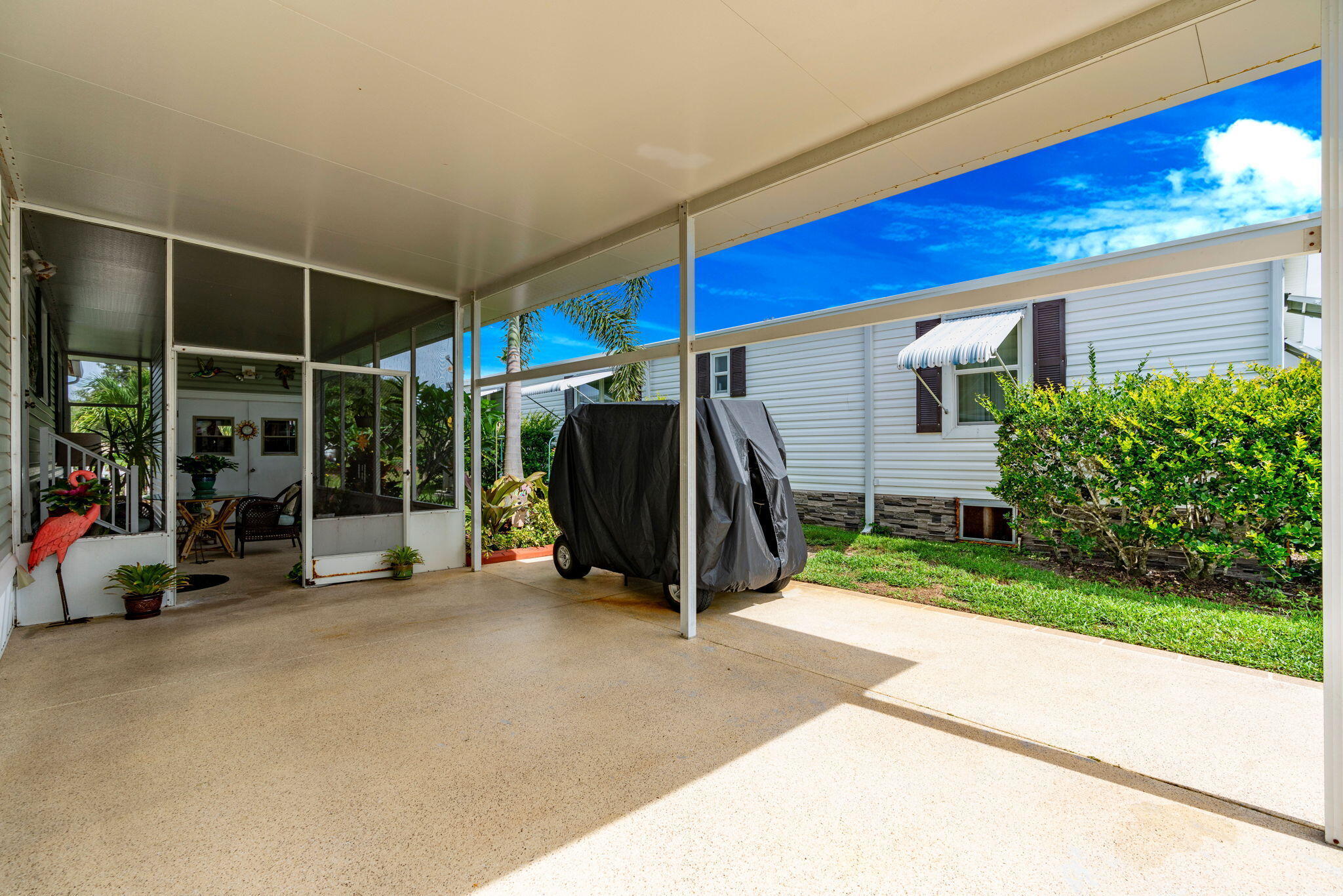 Located in the highly desirable Savanna Club ON DEEDED LAND/NO LAND LEASE! This 2/2 home offers a multitude of living spaces from it's living area to the large family room, unusual find in this community. Looking for a cozy placed to unwind, the screened front porch is a huge bonus only offered on a few of the homes within the community or the additional sitting area out back to view the aquatic life in tranquility while overlooking your nicely manicured yard. The updated kitchens offers white cabinets, granite countertops & all newer stainless steel appliances. Laminate flooring with carpet in the bedrooms. The master bathroom is adorn with a newer spa tub/separate shower & duel sinks. Activities: Tennis, pickleball, golf & much more. Close to EVERYTHING!LOW MONTHLY APPROX . $300.00
