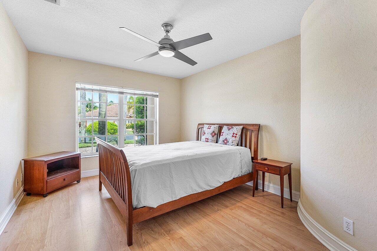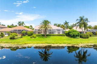 'Spacious 4-bedroom, 3-bath lakefront pool home in a boutique gated community! This extended Flamingo model offers 4 extra feet of living space, soaring vaulted ceilings, added windows for abundant natural light, a wet bar, updated appliances, electric hurricane shutters, and a circular driveway. The 4th bedroom is currently a loft, easily convertible to a full bedroom. Serene lake views from your private pool. Furnished Pool and Lawn Care Included. 1st, Last and 1 mo.security required.