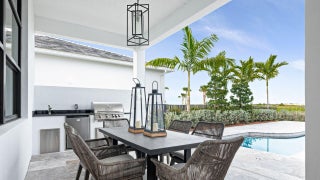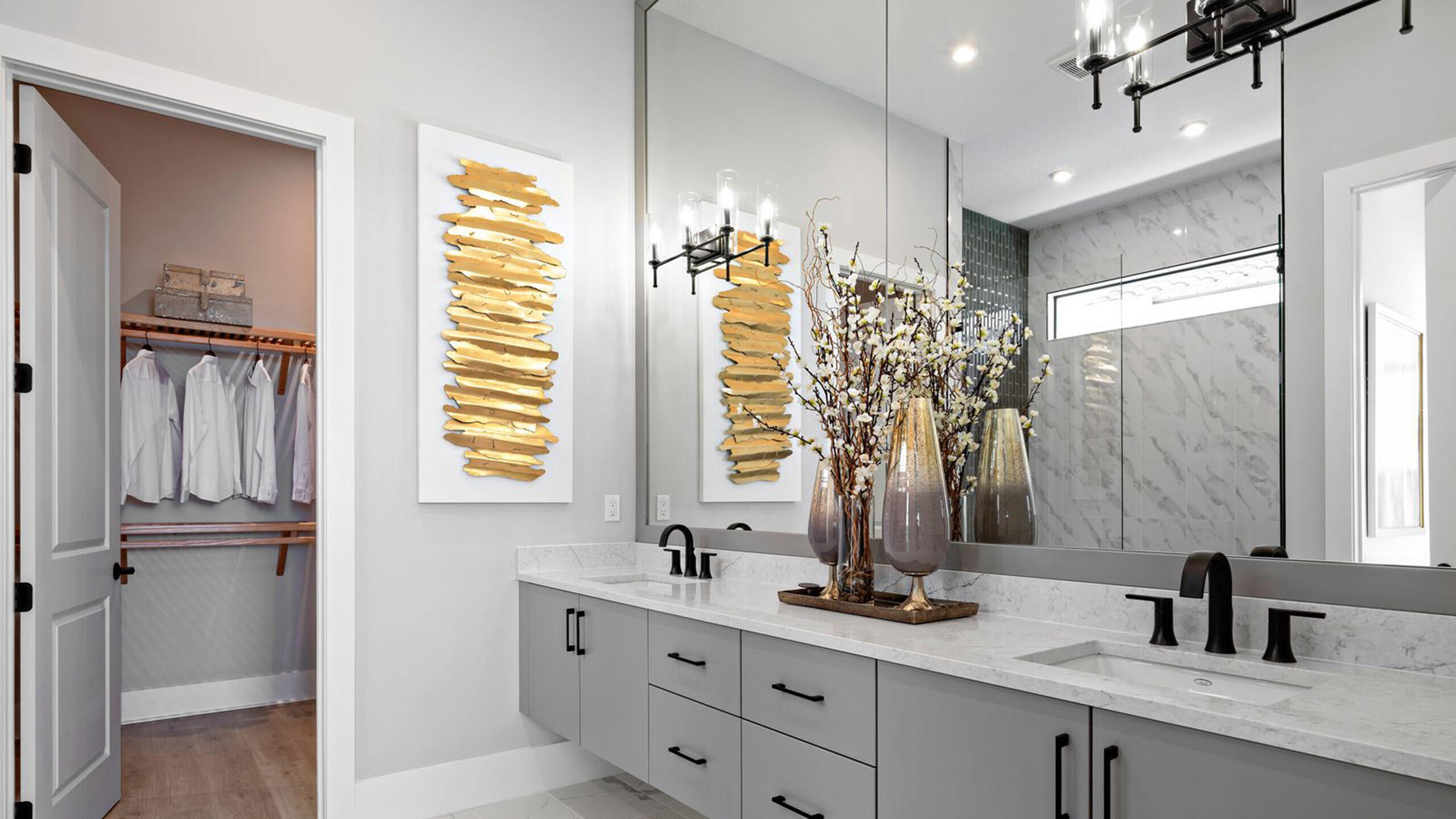 **Under Construction** This brand-new Priscilla floorplan, built by Kolter Homes, is situated on a southern facing, corner homesite in the new 55+ Esprit community. The home includes 3 bedrooms, 3 bathrooms, and a 3-car garage. The owner's suite and lanai have been extended by 4' to increase both indoor and outdoor living space, and a 16-foot wide by 10-foot-tall sliding glass door connects the great room to the lanai, which also features an added privacy wall with electric, gas, and water connections for a future summer kitchen. Inside, the kitchen comes with gas cooking, an upgraded built-in pantry, a 3'' thick quartz island, and second tier upper cabinets.The owner's shower has been extended to the deluxe shower option, and an added pass-through has been added between the owners walk-in closet and the laundry room. This Priscilla also includes a tankless gas water heater and spray foam insulation for added energy efficiency.