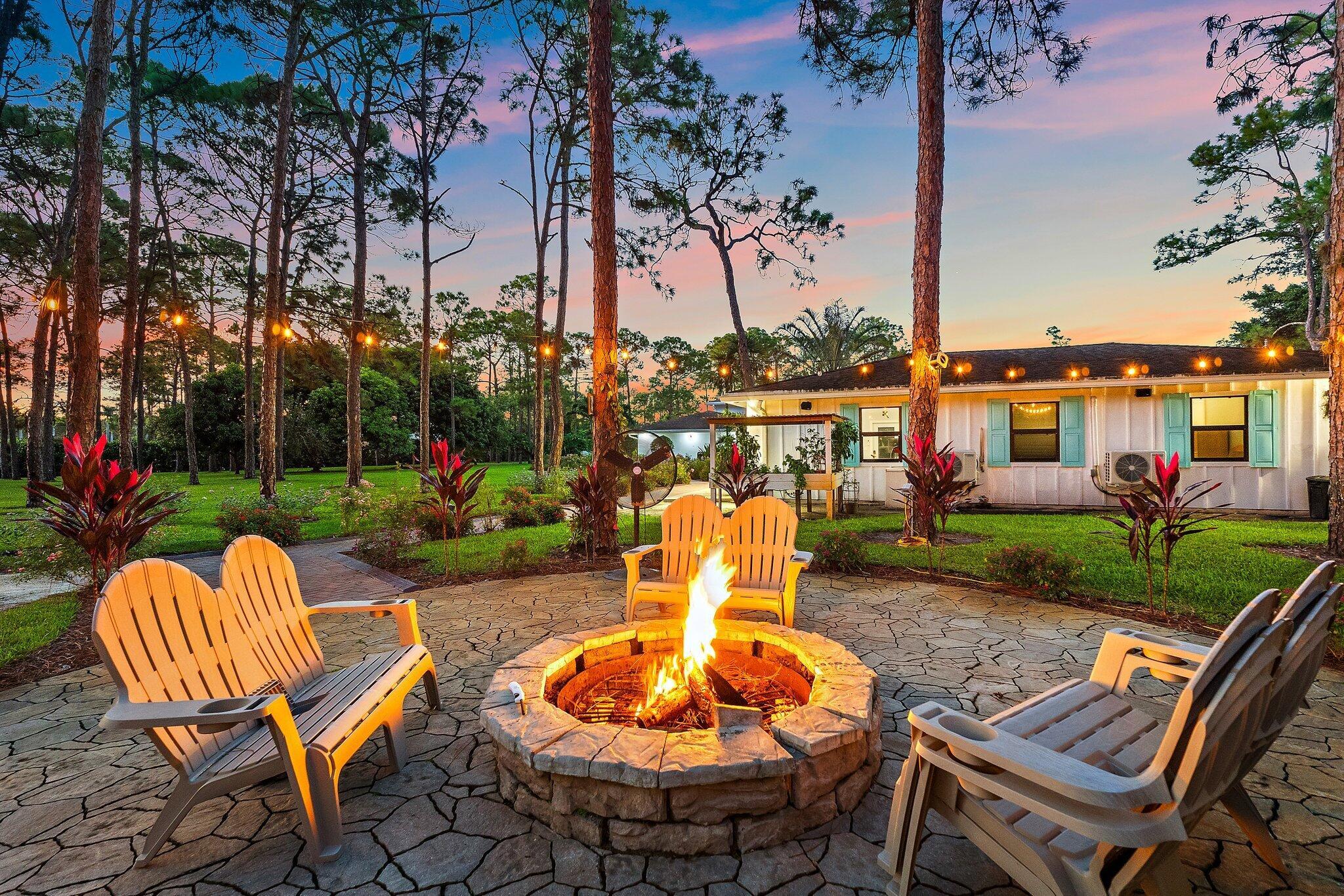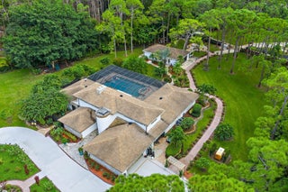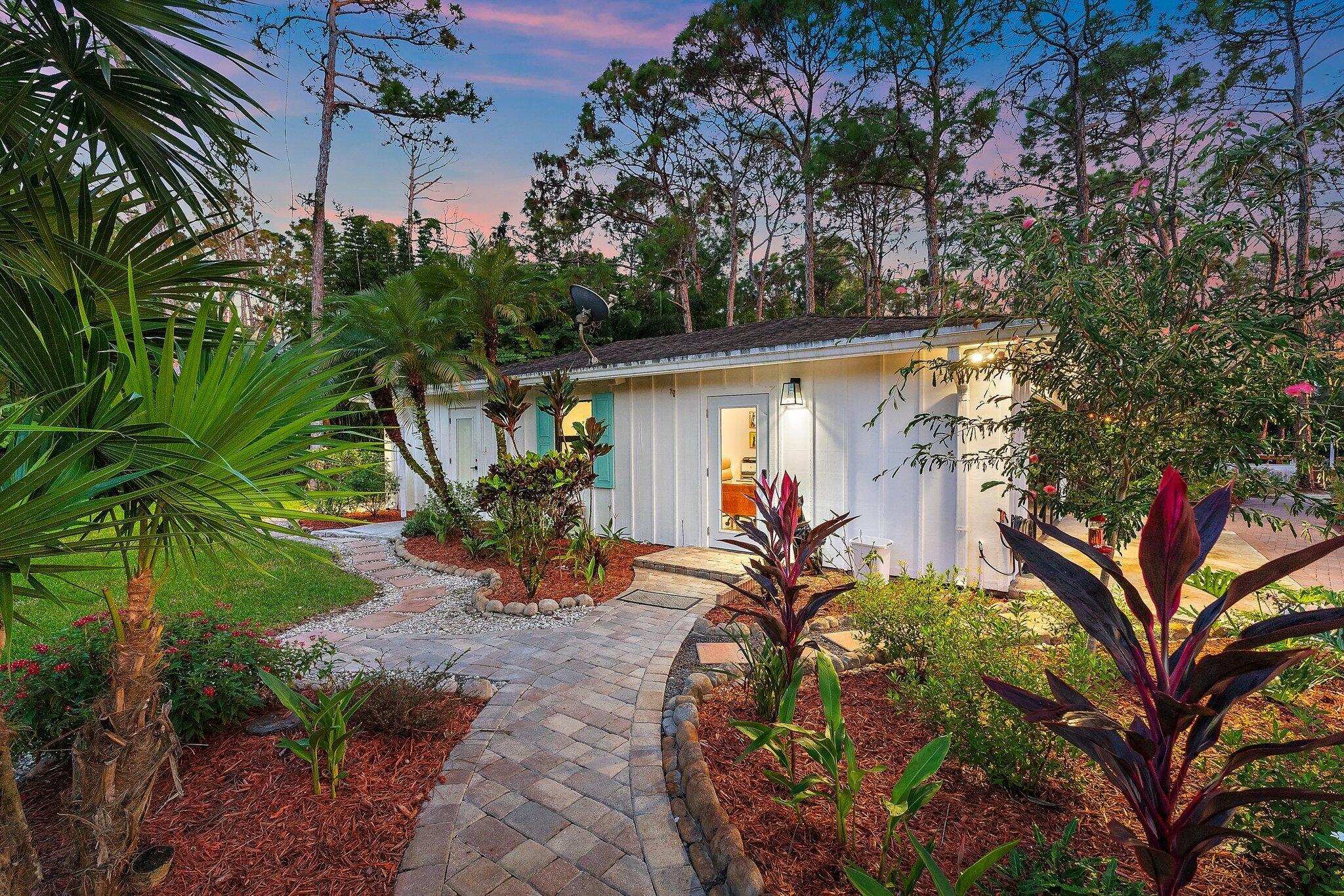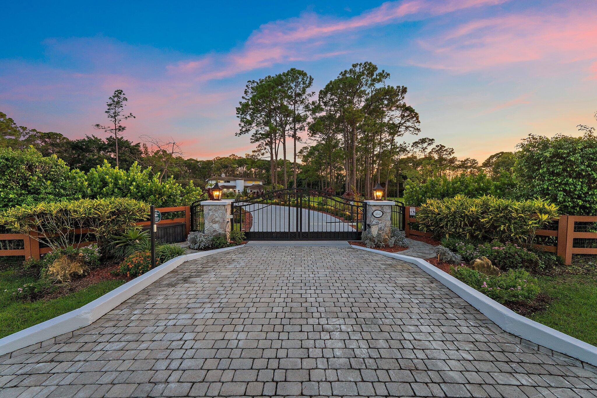 Welcome to a truly rare offering - a stunning 5.11 acre gated estate that offers luxury, privacy and tropical serenity in beautiful Palm Beach Gardens. Tucked away under lushly landscaped grounds, this exceptional compound features a recently renovated main residence, a spacious 1 BR guest cottage w/ kitchen and a separate office/bonus building - all masterfully integrated into a private sanctuary like no other. The main house has been updated to provide every modern convenience while maintaining timeless elegance. Design elements include double height ceilings in main living areas, sleek marble-look porcelain floors and full impact windows and doors throughout, creating a light fulled, airy ambiance. At the heart of the home, the true chef's kitchen is a culinary dream, outfitted withtop of the line Wolf and Suz Zero appliances, custom cabinetry and expansive workspace perfect for entertaining. The back doors lead to a spectacular pool (40' x 20') + spa, protected by brand new 'bird cage' with bottom buffer. Step outside into a world of exquisite beauty, where manicured lawns, mature palms and tropical plantings create a resort-style setting and zen retreat. Whether enjoying quiet mornings or hosting gatherings under the stars this property beautifully redefines indoor-outdoor living. A separate one bedroom guest cottage is designed for comfort, offering privacy, space and a kitchenette. An additional building is perfectly suited as a private office, studio or wellness retreat. The mechanicals of this home (exterior lighting, drainage, whole house generator) have been meticulously maintained. CALOOSA offers a country vibe in a picture perfect setting, with all properties on 5 Acres minimum. Bring your Horses, there are MILES of TRAILS! This property is more than a home, it is a true sanctuary that offers great living space, exceptional beauty and ultimate privacy... all within minutes of world class dining, shopping, golf and beaches. Less than 2 miles to the Private North County airport. You will Love living here!