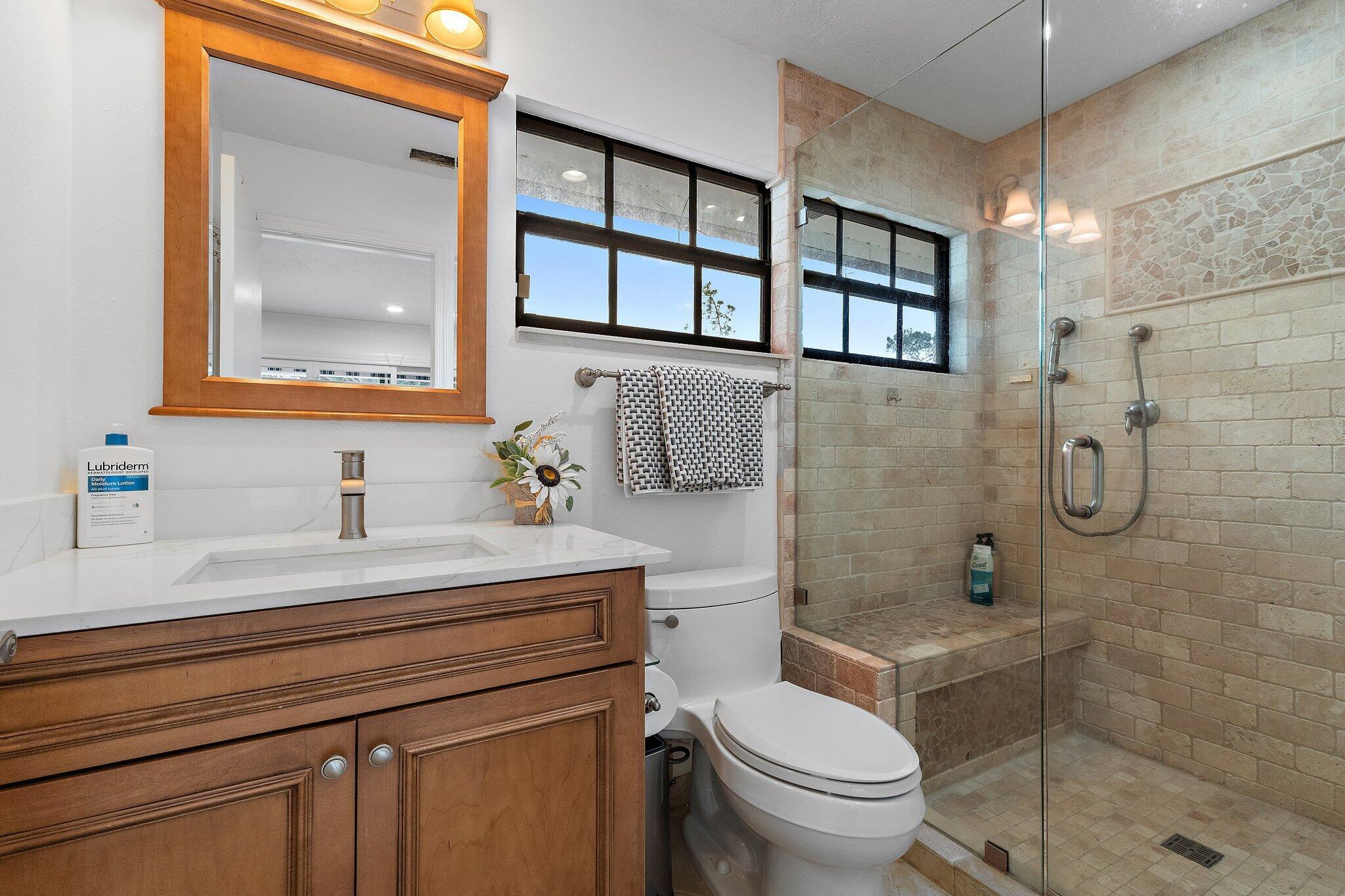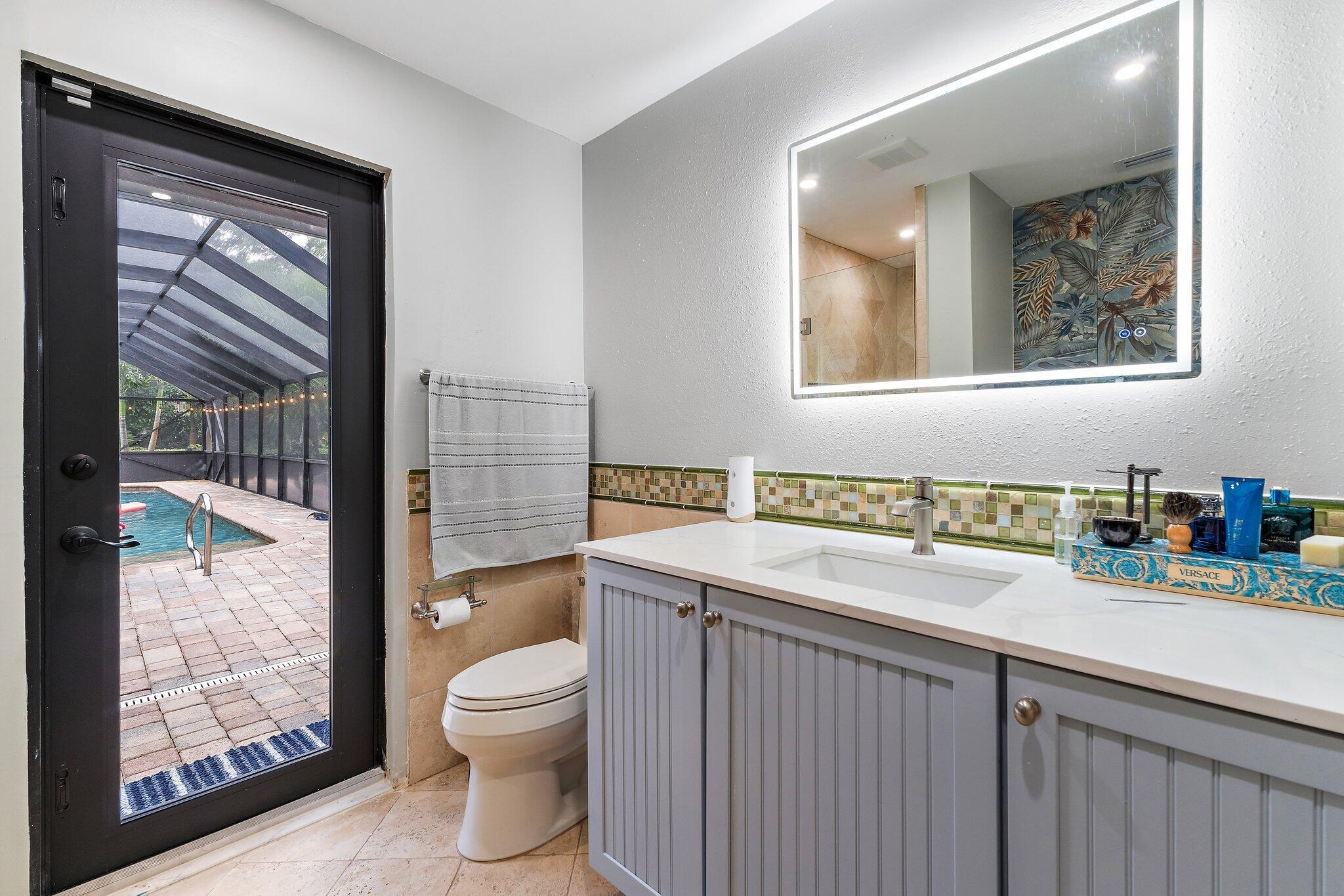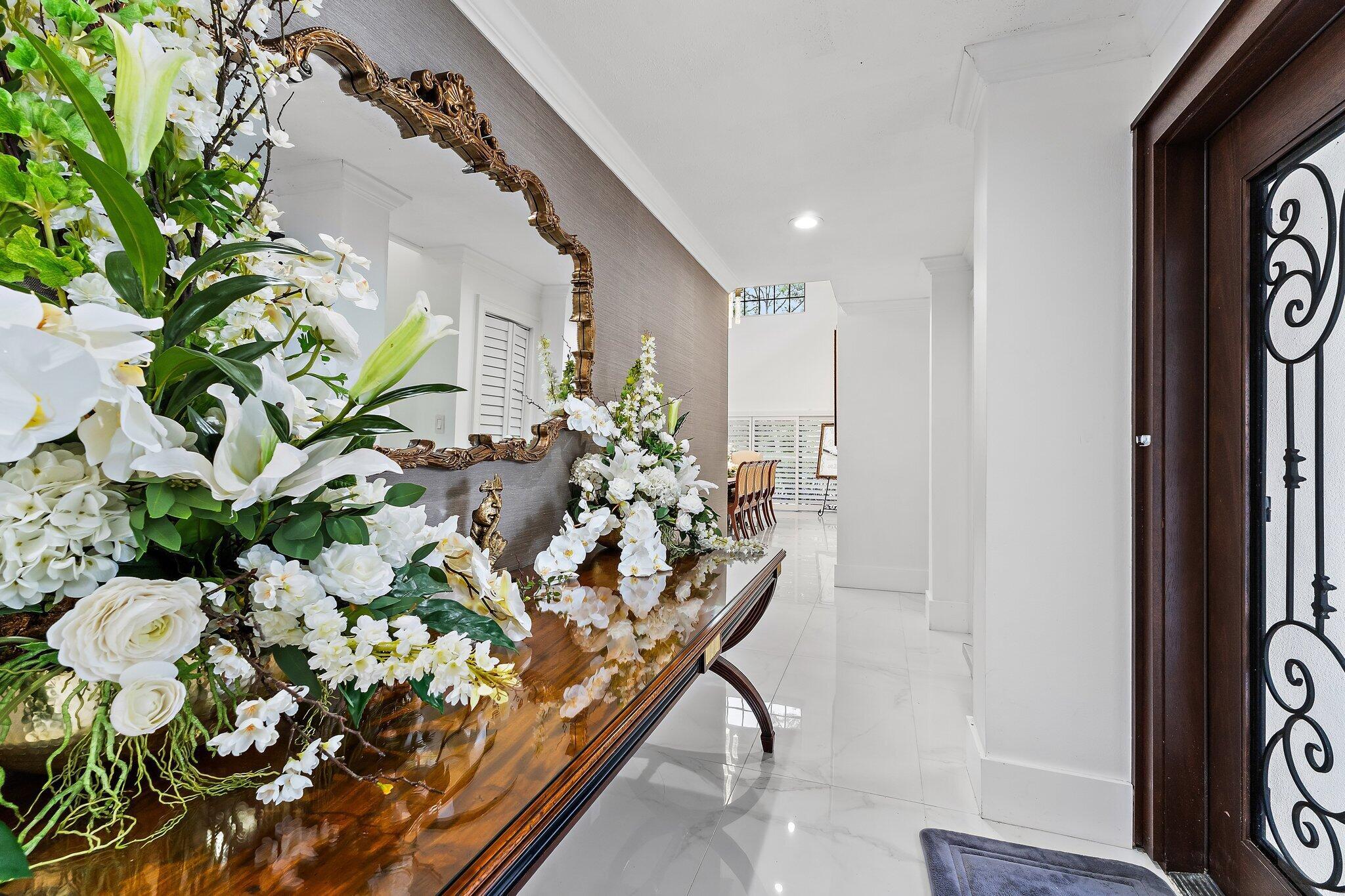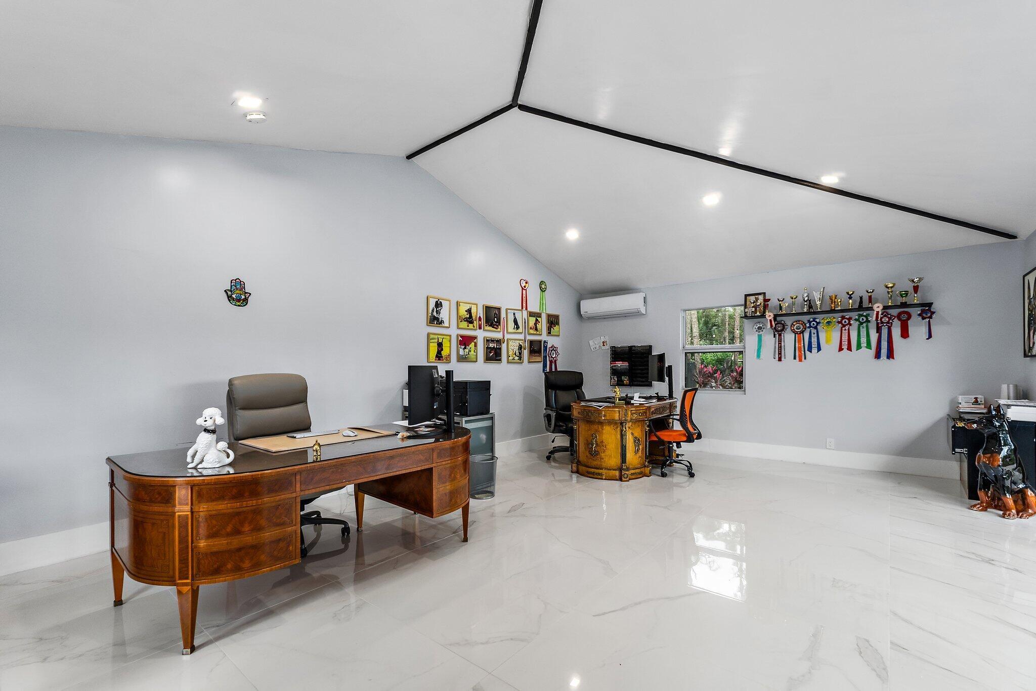 Welcome to a truly rare offering - a stunning 5.11 acre gated estate that offers luxury, privacy and tropical serenity in beautiful Palm Beach Gardens. Tucked away under lushly landscaped grounds, this exceptional compound features a recently renovated main residence, a spacious 1 BR guest cottage w/ kitchen and a separate office/bonus building - all masterfully integrated into a private sanctuary like no other. The main house has been updated to provide every modern convenience while maintaining timeless elegance. Design elements include double height ceilings in main living areas, sleek marble-look porcelain floors and full impact windows and doors throughout, creating a light fulled, airy ambiance. At the heart of the home, the true chef's kitchen is a culinary dream, outfitted withtop of the line Wolf and Suz Zero appliances, custom cabinetry and expansive workspace perfect for entertaining. The back doors lead to a spectacular pool (40' x 20') + spa, protected by brand new 'bird cage' with bottom buffer. Step outside into a world of exquisite beauty, where manicured lawns, mature palms and tropical plantings create a resort-style setting and zen retreat. Whether enjoying quiet mornings or hosting gatherings under the stars this property beautifully redefines indoor-outdoor living. A separate one bedroom guest cottage is designed for comfort, offering privacy, space and a kitchenette. An additional building is perfectly suited as a private office, studio or wellness retreat. The mechanicals of this home (exterior lighting, drainage, whole house generator) have been meticulously maintained. CALOOSA offers a country vibe in a picture perfect setting, with all properties on 5 Acres minimum. Bring your Horses, there are MILES of TRAILS! This property is more than a home, it is a true sanctuary that offers great living space, exceptional beauty and ultimate privacy... all within minutes of world class dining, shopping, golf and beaches. Less than 2 miles to the Private North County airport. You will Love living here!