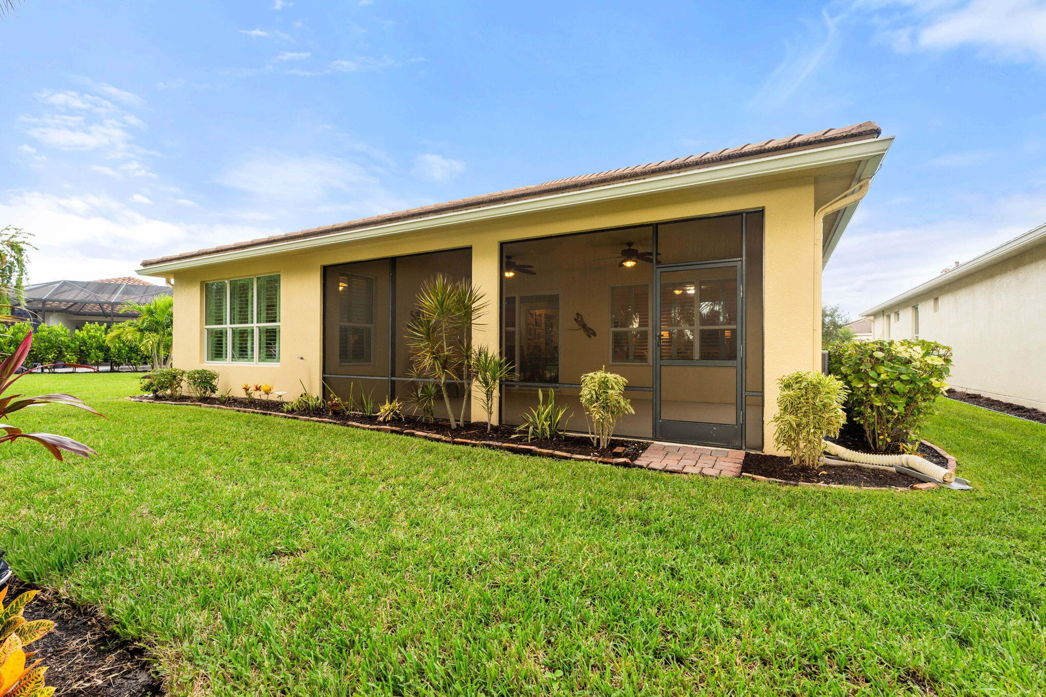 Experience exceptional living in this meticulously maintained single-family home, located in the highly sought-after 55+ active adult community of Vitalia in Tradition. This 2/2 residence with den truly stands out, offering a level of care and detail that is rare to find. From the moment you arrive, you'll see the owner's commitment to quality in the custom landscaping and gas Generac generator. The home has been consistently and professionally maintained, with a focus on both major systems and fine details. The home has was recently painted both inside and out. Inside, the care continues with premium touches that enhance daily living, including new appliances, a new tankless water heater, a water purification system, upgraded electrical and LED lighting, and an ADA friendly walk-in tub.Your large rear patio includes superior epoxy flooring, premium screening, and overhead fans, making it the ideal place to enjoy the sights and sounds of natural Florida in the beautiful backyard preserve. The garage is a dream for any craftsman, with shelving and epoxy-coated floors as well as a new "Smart" garage door opener. This home offers not just a place to live, but a lifestyle. The community provides an impressive array of amenities to keep you active and engaged, including a resort style pool, pickleball courts, bocce ball, a putting green and more. The proximity to Tradition means your weekends can be spent enjoying premium shopping and dining on the Treasure Coast, along with special events and festivals that frequent town square. This property is a must-see for the discerning buyer looking for a move-in-ready home in a vibrant community where every detail has been thoughtfully considered. All furniture is available for purchase. Prices available upon request. Schedule your private tour today!
