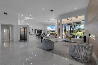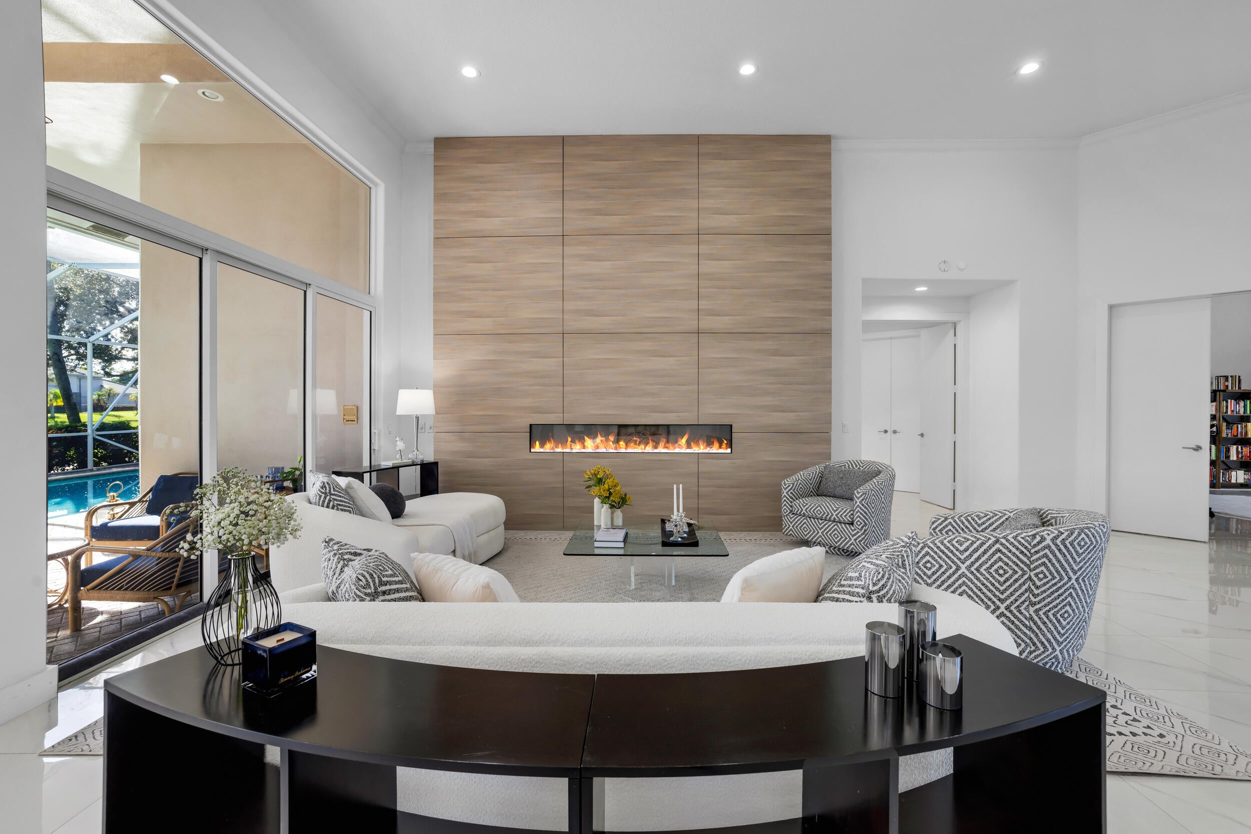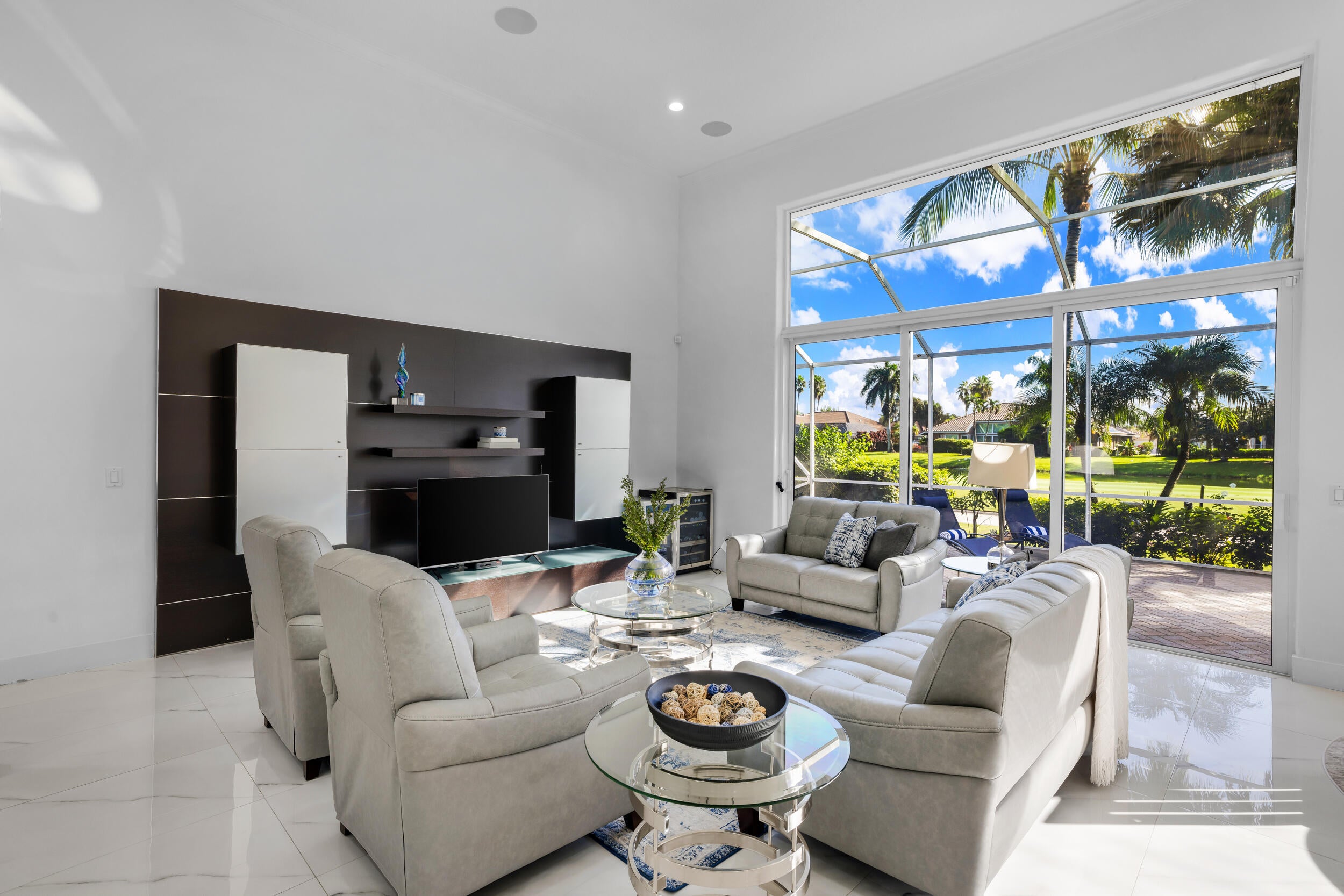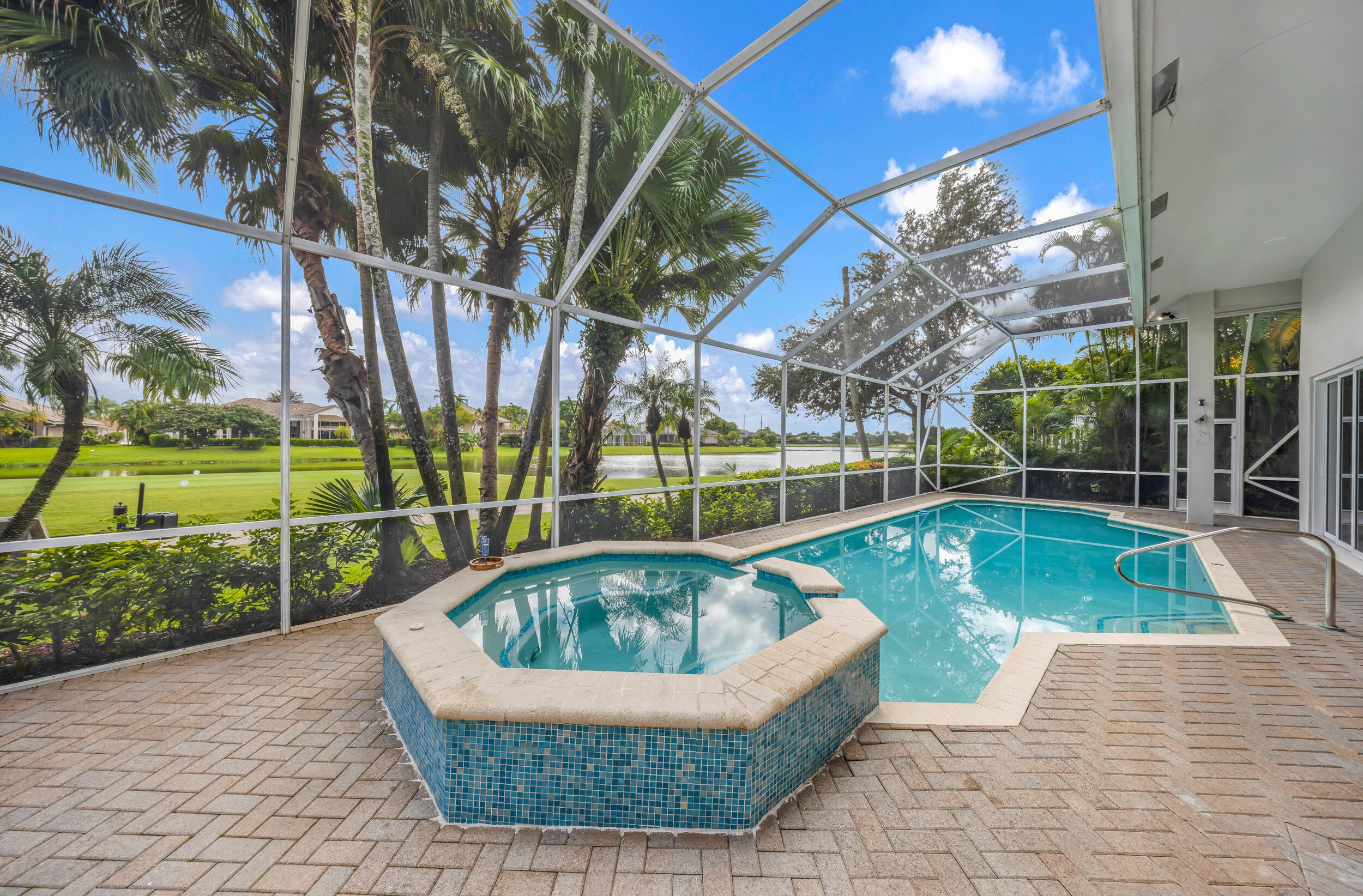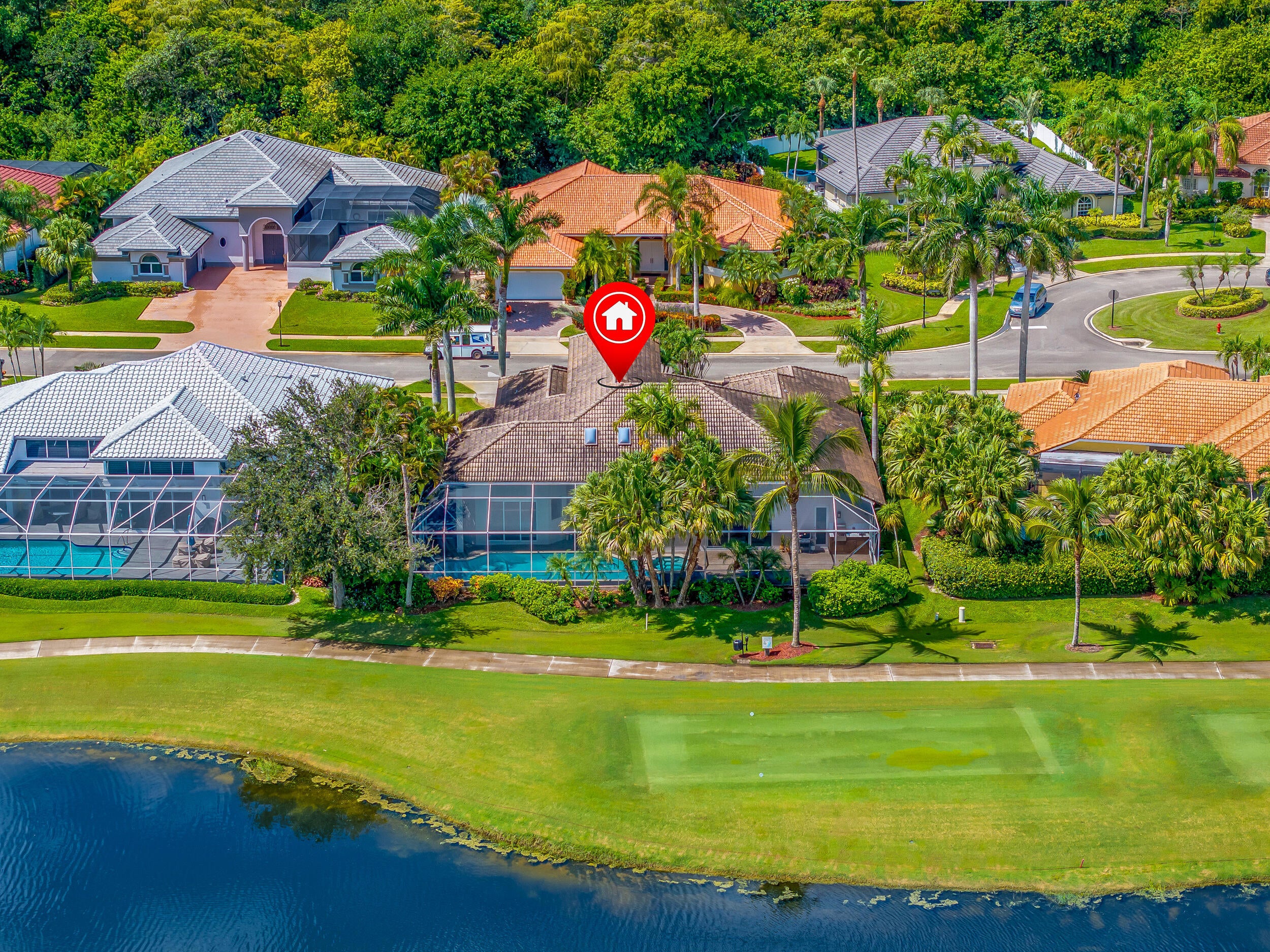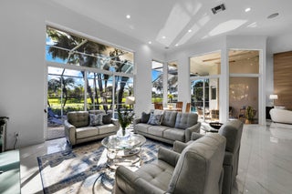 Welcome to this stunning 4BR/3.1BA home with a large office right at the entrance in the exclusive Stonebridge Country Club. Offering 3,729 sq ft of living space on a 12,502 sq ft waterfront lot with a private pool, this residence creates a powerful first impression the moment you enter. Soaring ceilings and walls of glass fill the living areas with natural light, framing panoramic views of the golf course, shimmering lake, and resort-style pool.The floor plan is thoughtfully designed for both comfort and versatility. A spacious bath serves two bedrooms, while another bedroom features an ensuite cabana bath, ideal for guests or flexible living. The primary suite is a private retreat with dual walk-in closets, an oversized spa-like bathroom, and tranquil views of the pool and sunsets. The gourmet kitchen is equipped with top-notch appliances, highlighted by a Viking range, and opens to the dining and family areas, making it perfect for both casual living and entertaining. Additional highlights include a spa, automatic blinds that ensure privacy, full-impact windows for peace of mind, and elegant finishes throughout. Outside, the property's lush and mature landscaping is enhanced by a cinematic island-style driveway entrance, creating a grand sense of arrival. The backyard is quiet, private, and perfectly designed to enjoy Florida living at its best. Stonebridge Country Club is one of Boca Raton's most prestigious gated communities, known for its championship golf course, tennis and pickleball courts, fitness center, dining, and a vibrant social lifestyle. For golf lovers and those seeking an elegant and secure environment, this home represents the ultimate Boca Raton dream.