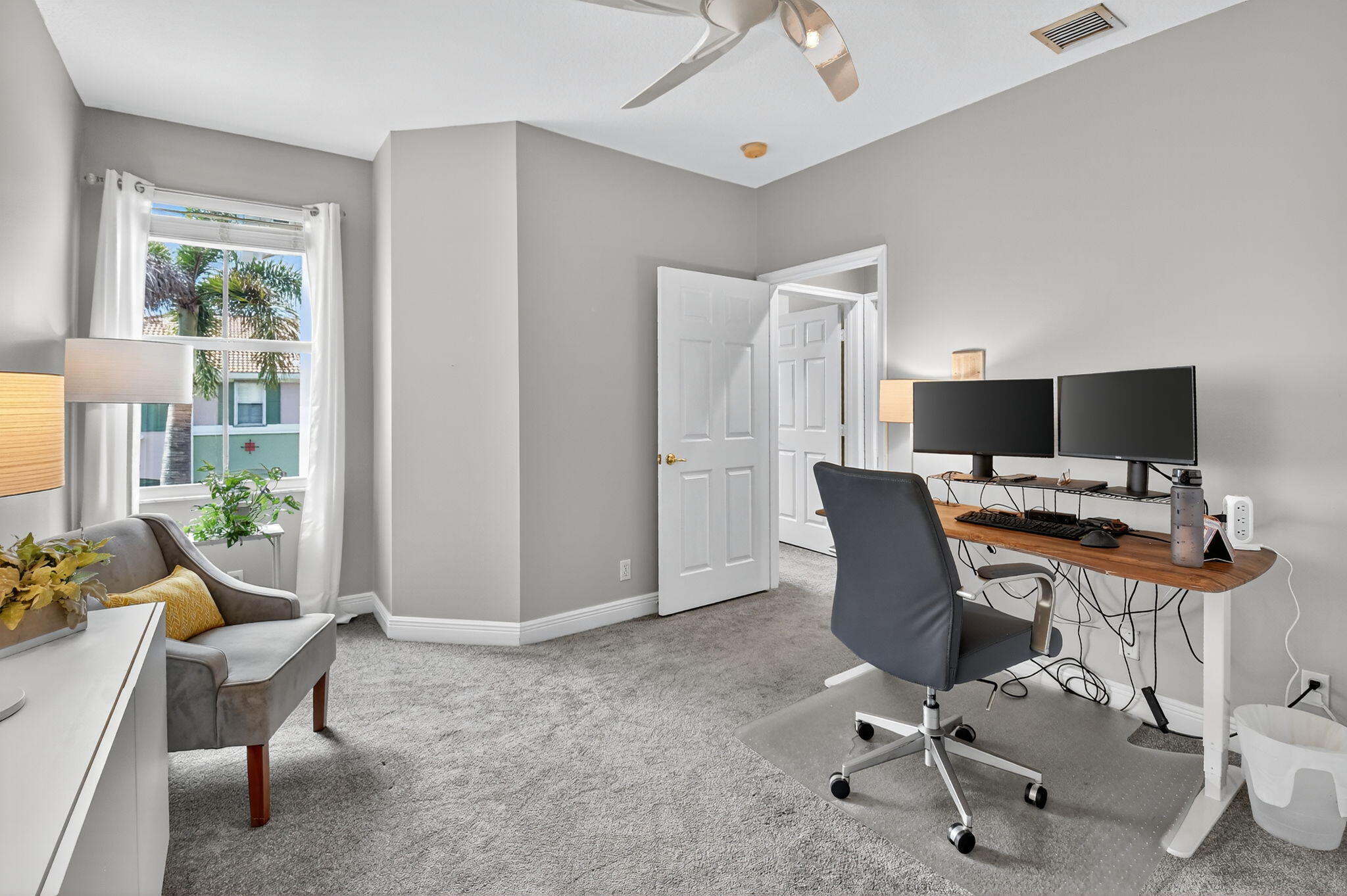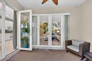 This dreamy, zen-like home offers an unparalled lifestyle, located just steps from the picturesque Intracoastal Waterway with PRIVATE BEACH access & resort style pool! Outstanding features include gleaming white lacquered kitchen cabinets with custom refrigerator panel that blends seamlessly, french doors,a screened lanai to enjoy coastal breezes, plus NEW ROOF & impact glass to provide security in a storm. Relax in the cozy den or use as an office. Enjoy your morning coffee on the private, lush fenced patio. The breathtaking Primary bedroom boasts a soaring ceiling, sitting area, closet the size of a small bedroom, & a bathroom with ''his and hers'' vanities, deep whirlpool tub & separate shower. All this is conveniently located near the shops, restaurants & cultural activities of Delray Beach, West Palm Beach, the International airport & beautiful white sandy beaches! Low HOA, pet-friendly, too. Grab your fishing pole or kayak & experience beautiful Las Brisas! This special home is not to be missed!