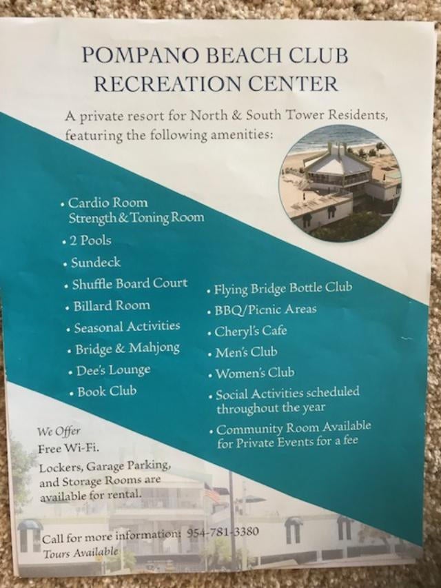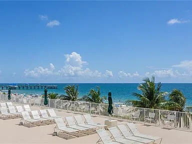 Best price to live on the beach! Spectacular unobstructed forever ocean views from this 1 bed + 1 bath condo. Attended lobby, garage parking, cable, internet, beachfront recreation center with 2 pools, BBQ grills on the beach, cafe, bottle bar, billiard room, game room, state of the art fitness center and much more all included. GREAT LOCATION! Walk to shopping, dining, night life, and the world famous Pompano Pier. Available Dec.1, 2025 Annual Lease only $1900mo.Building is undergoing concrete restoration and balcony may not be accessible.