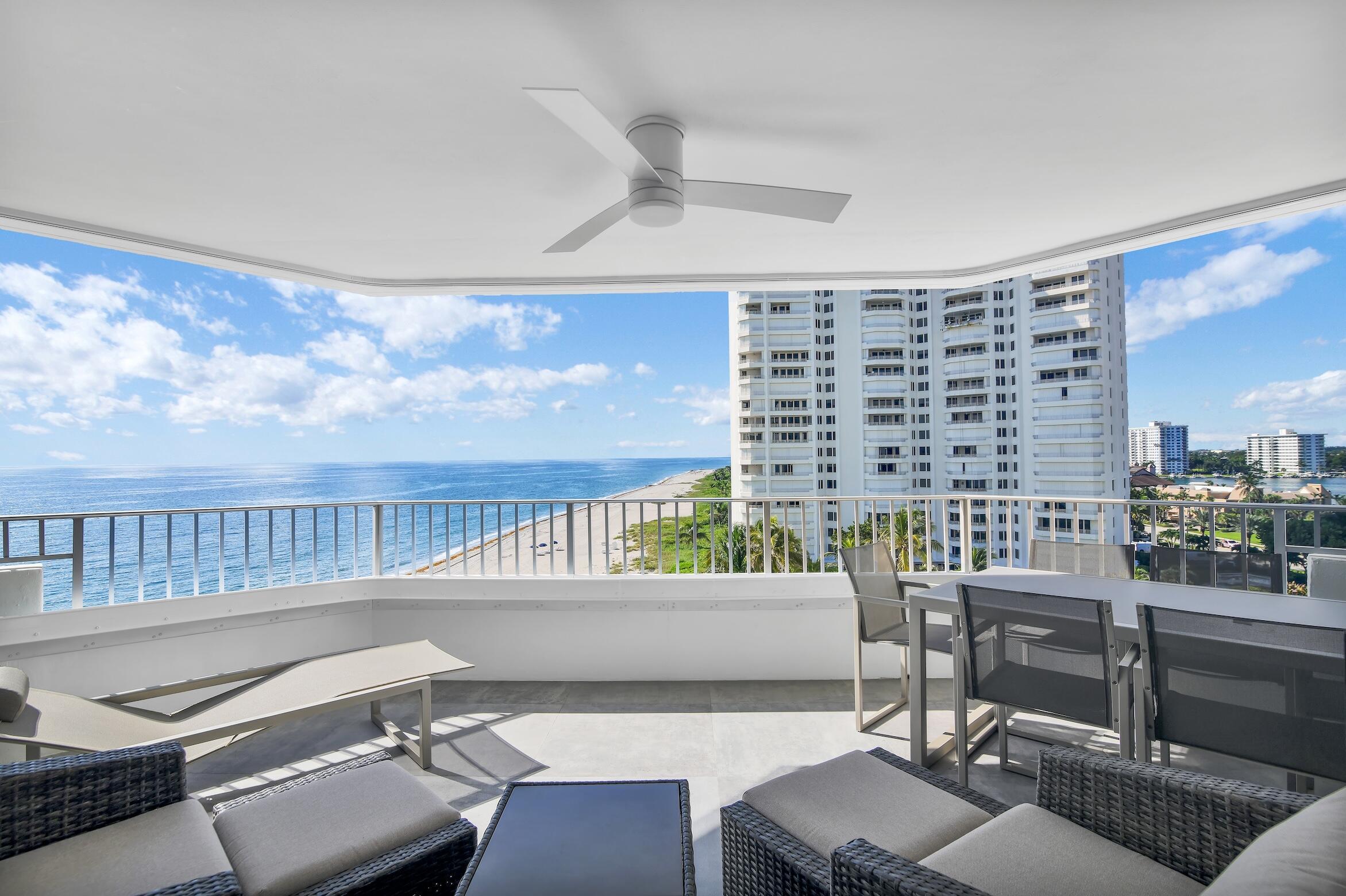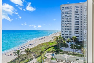 Wake up to breathtaking ocean views from every room in this partially renovated, south-facing unit. The expansive terrace provides sweeping views of the Atlantic Ocean--perfect for relaxing, entertaining, or enjoying beautiful sunrises. The kitchen is outfitted with high-end European cabinetry, glass countertops, and Miele appliances. The primary bathroom has been completely renovated with modern, elegant finishes. This unit includes a dedicated parking space equipped with an EV charger. The building offers private beach access, an oceanside pool, state-of-the-art fitness center, two tennis courts, and more. Ideally located just minutes from Mizner Park and Royal Palm Plaza. Coastal luxury at it's finest.