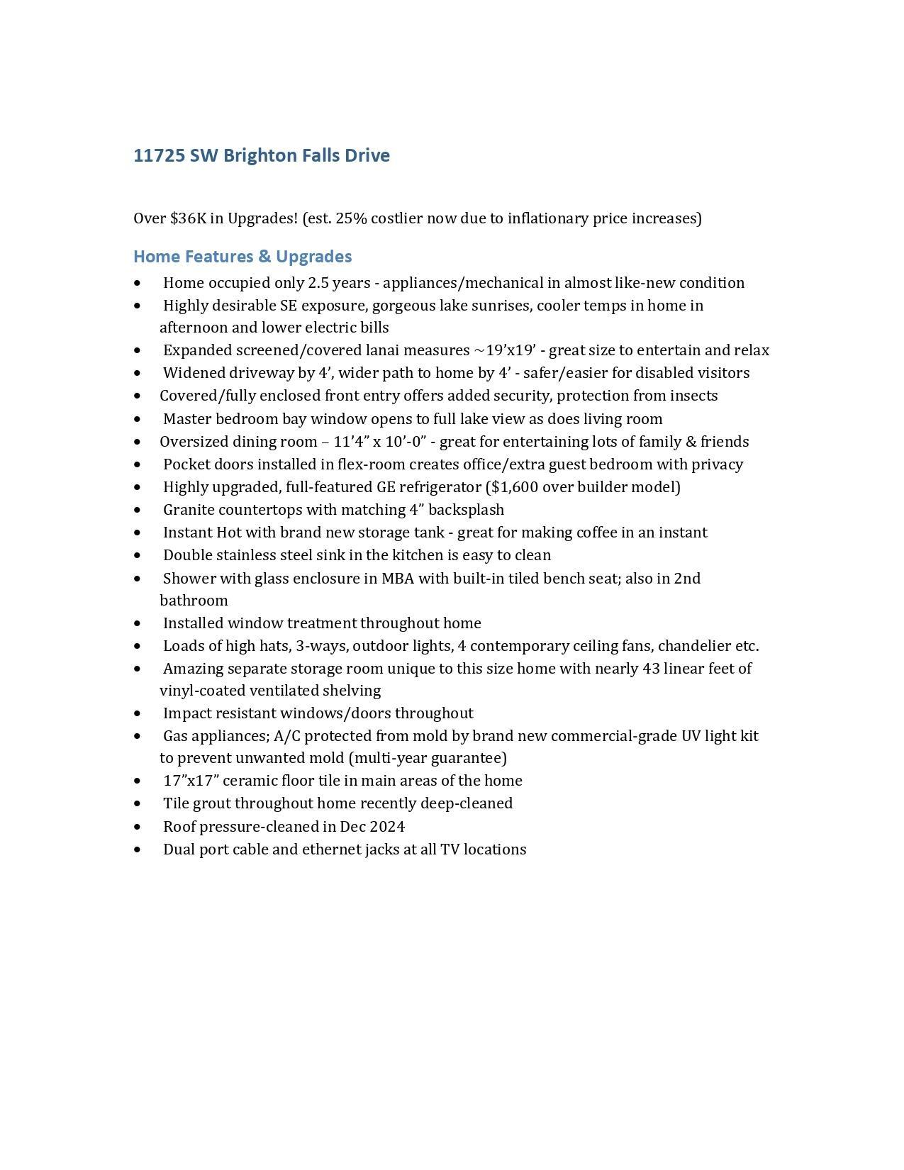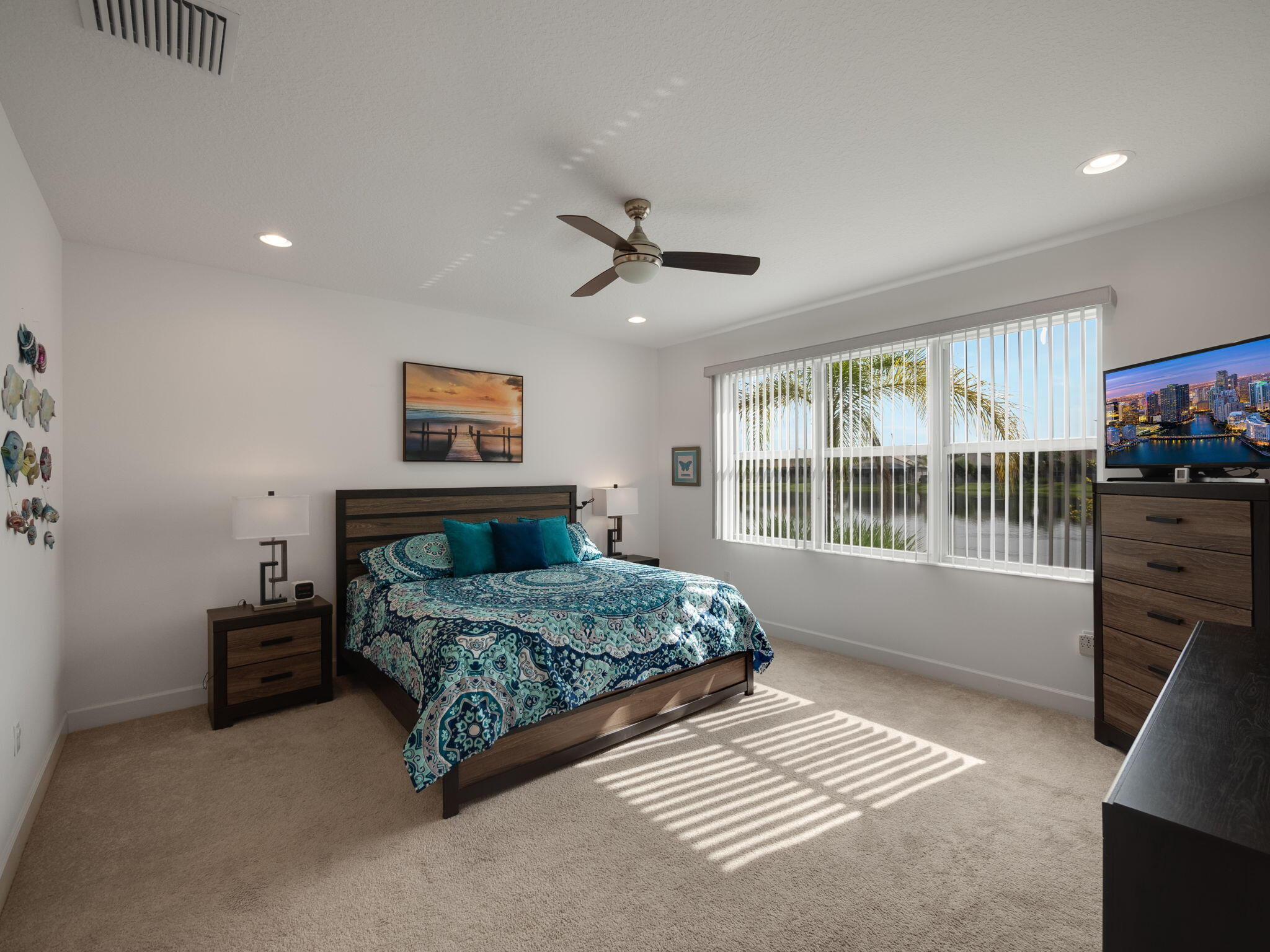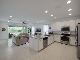 Why wait 10+ months to build when you can move right into this stunning lakefront home today?Nestled in the highly sought-after 55+ community of Valencia Cay at Riverland, this lightly lived-in second residence offers 3 bedrooms, 2 bathrooms, and a versatile den that can easily transform into a private guest room or home office. The gourmet kitchen is a true centerpiece--designed for both elegance and everyday functionality. It features granite countertops with a 4'' backsplash, a double stainless-steel sink, and upgraded gas appliances, including a premium GE refrigerator valued at $1,600 more than the builder's model. The open-concept living and dining areas flow seamlessly together, highlighted by 17''x17'' ceramic tile flooring--ideal for entertaining guests or relaxing in style.The purchase also includes a one-year appliance warranty for added peace of mind. Wake up each morning to breathtaking sunrise views over the expansive lake from the master suite. This private retreat features dual walk-in closets, a large tiled shower with a glass enclosure and built-in bench, while the secondary bath includes an upgraded decorative glass shower enclosure. Step outside to the spacious 19'x19' southeast-facing lanai, perfect for quiet mornings or lively gatherings overlooking the tranquil water. Additional upgrades throughout the home include 22 recessed lights, outdoor lighting, extra switches, four ceiling fans, and an exceptionally quiet A/C system still under warranty. A large storage room off the laundry area provides added convenience and organization. Built with quality and safety in mind, the home features impact-resistant windows and doors with Low-E glass, a steel-reinforced concrete foundation, concrete block construction, and flat-profile concrete roof tiles for lasting durability. Just a short stroll away, the state-of-the-art Valencia Cay Clubhouse offers a vibrant, resort-style lifestyle complete with an Olympic-size pool, on-site restaurant, 30+ active clubs, and weekly entertainment. Whether you're soaking in the peaceful lakefront views or enjoying the community's world-class amenities, this home offers an unmatched blend of luxury, comfort, and convenience.