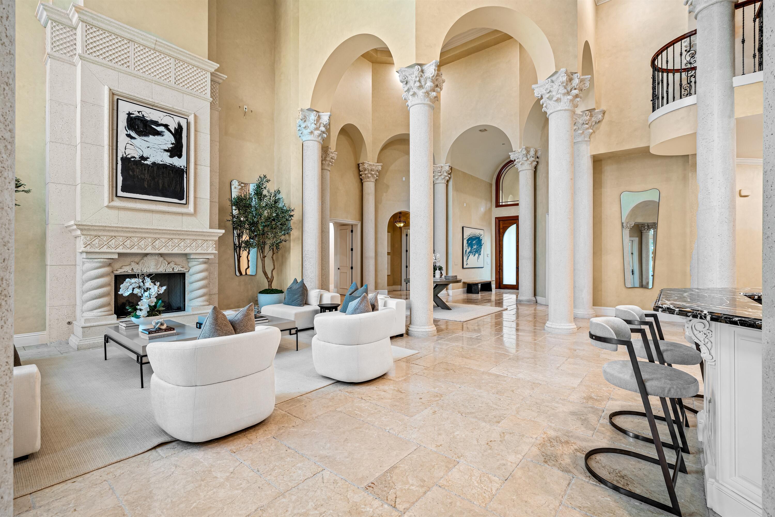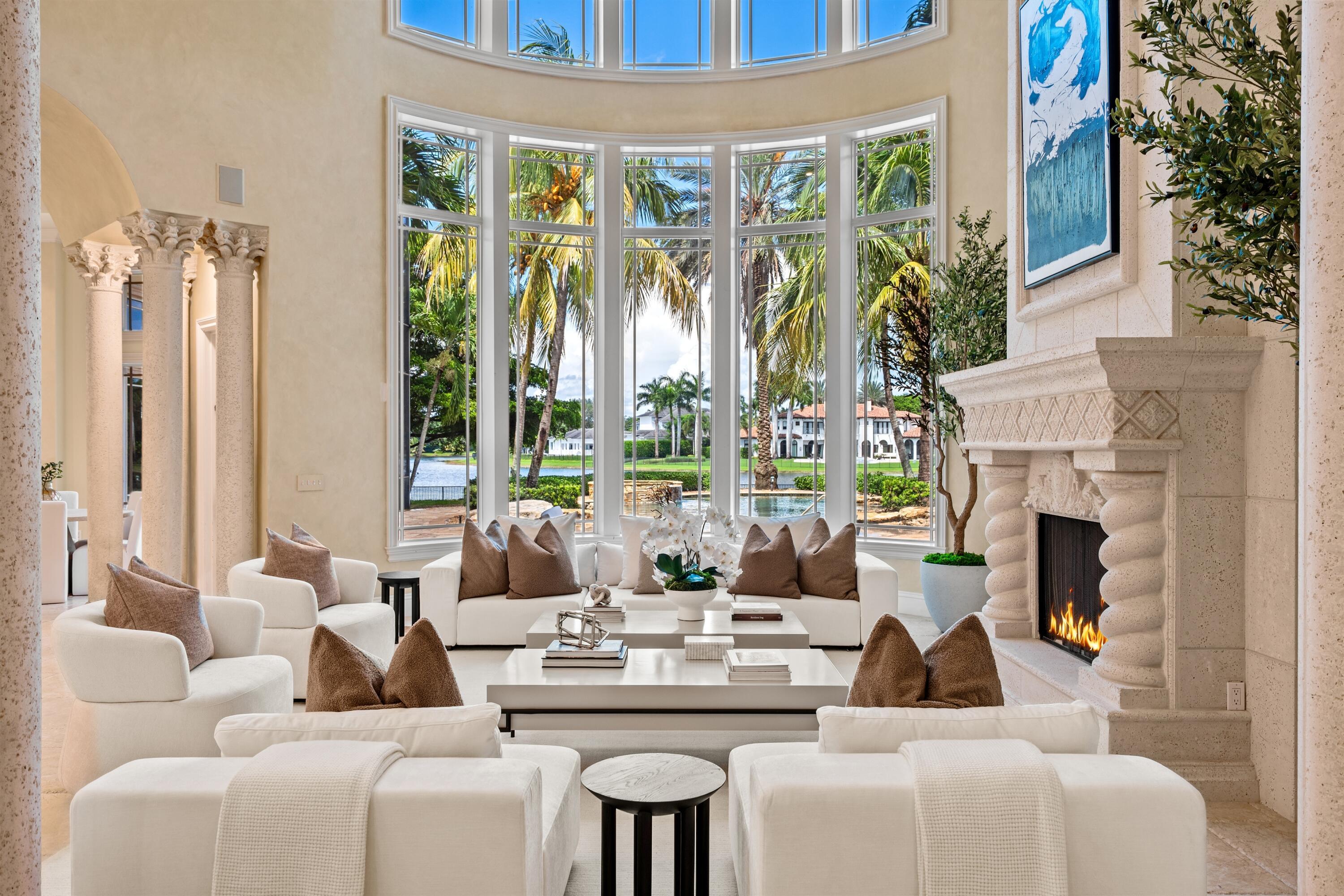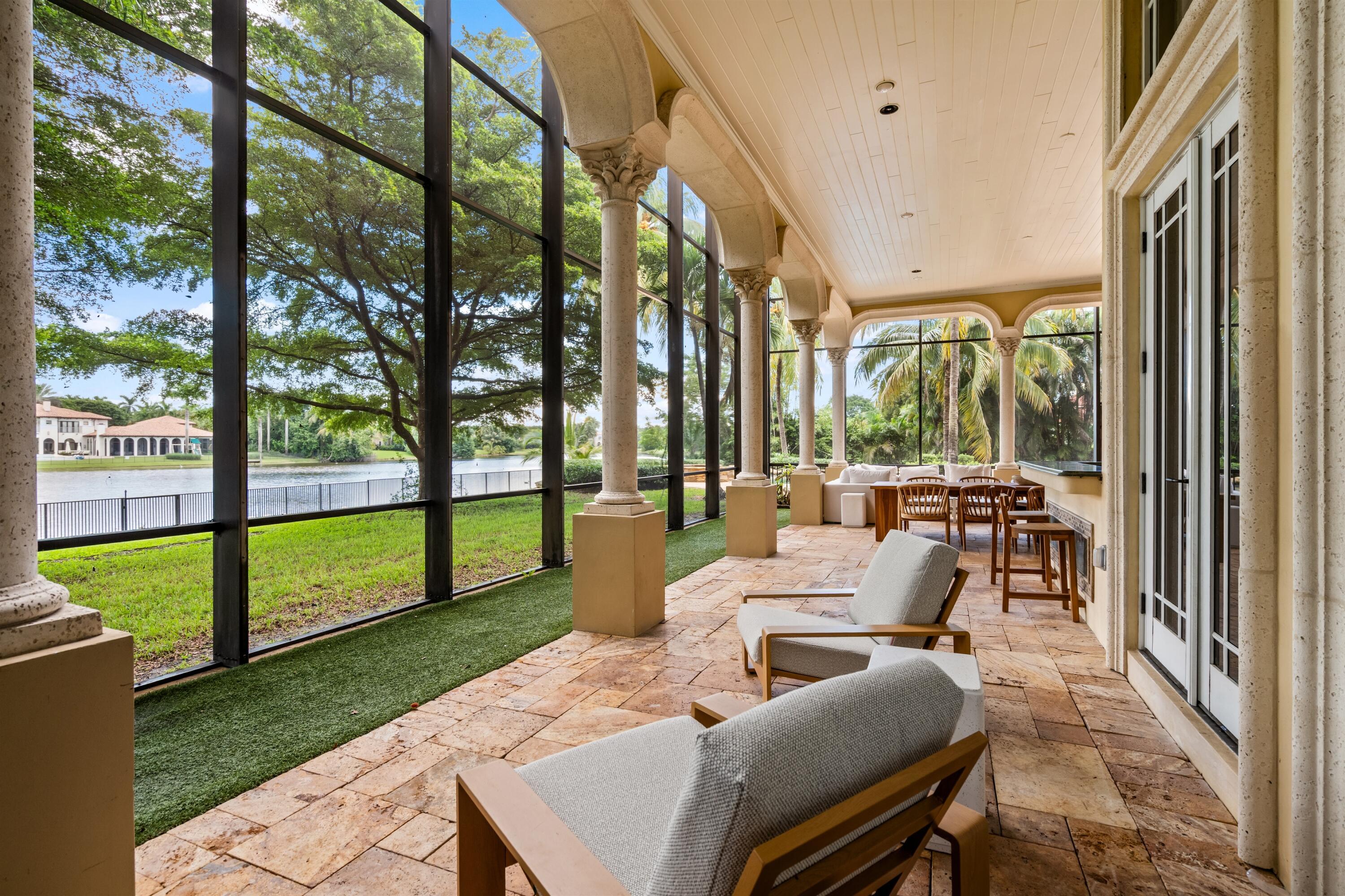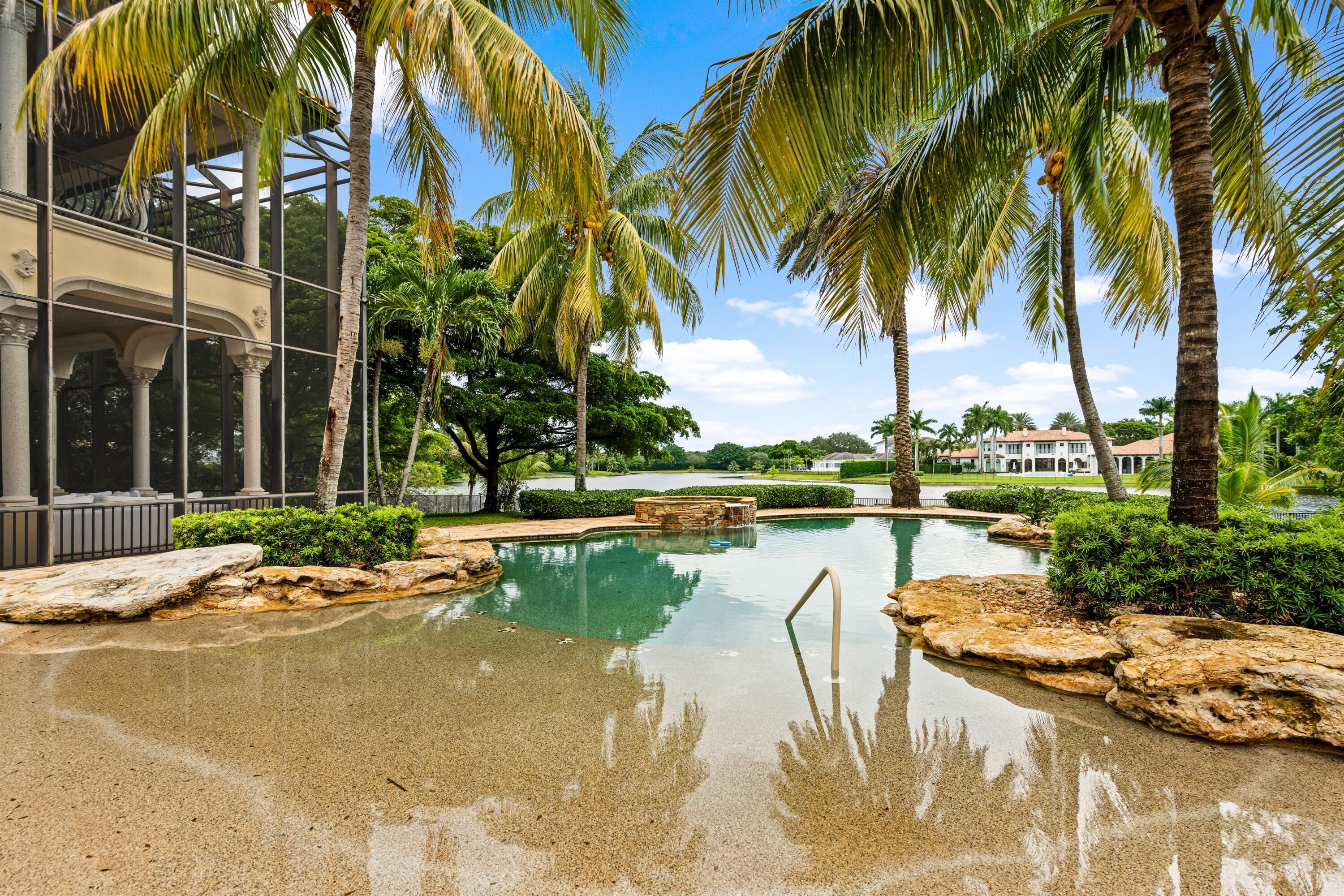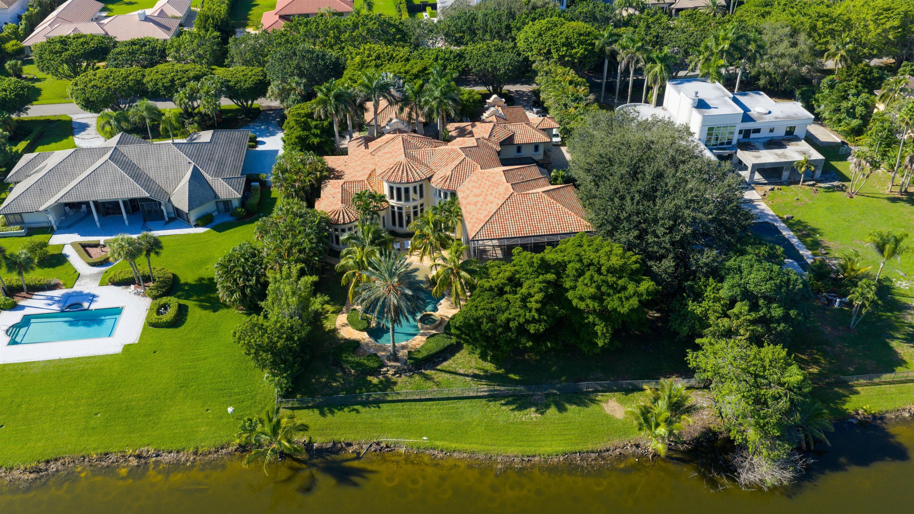 In the Eden of Boca Raton neighborhoods, Long Lake Estates hides in plain sight off of Clint Moore Road, with convenient access to the Turnpike. Discover Boca's premier amenities within a 10-mile+/- radius, including upscale boutiques and fine dining at Town Center Mall and Mizner Plaza, beautiful beaches, sought-after country clubs, respected schools, and well-maintained sports and recreational facilities. But the bustle quickly subsides when you pass through the gates of this neighborhood exuding a graceful regality. Its quiet, canopied roads transport you to a serene Old Florida. Set back on lush, one acre-plus lots, the distinct homes in this community enjoy the utmost privacy. The 10,327+/- sq. ft. Mediterranean estate sits on a paved horseshoe driveway behind an elegant porte-cochere.Additional driveway space on the west side of the home leads to two garages accommodating five total vehicles. The property is set apart by its outdoor sanctuary complete with beach-entry pool, hot tub, summer kitchen, and 159± feet of prime lake views. Step into the great room with towering 30± ft. ceilings and a commanding cast stone fireplace. Jerusalem stone floors bring Old World craftsmanship into the space, while floor-to-ceiling impact windows let in gorgeous natural light. The home's distinguishing characteristics include the jaw-dropping backyard oasis, stately library, spacious home theater, entertainer's kitchen with top-of-the-line appliances, grand primary wing, home elevator, and special architectural details. Lower Level: The primary wing boasts separate his and hers baths and a morning room/office with bay window overlooking the garden. The first primary bath features a masculine aesthetic, luxurious shower, and ample walk-in closet space. The second is nothing short of a Neoclassical spa with a statement soaker tub, stained glass windows, multi-jet shower, and walk-in closet of your dreams. This level also has a large library/office with wall-to-wall bookshelves, a laundry room, home theater, powder room, guest room and bath, plus a formal dining room connected to the butler's pantry. The kitchen and bar open to a bright family room with french-door access to the summer kitchen and covered patio for elevated entertaining. Upper Level: The open landing area is an ideal children's playroom or bright fitness/yoga studio. You will find three additional bedrooms plus in-law or maids quarters upstairs, each with ensuite and closet. Two rooms share access to a tranquil covered balcony overlooking the lake. There is also a room plumbed for laundry or a salon. Staging and furnishings by Vesta Home; all furniture available for purchase. DISCLAIMER: Information published or otherwise provided by the listing company and its representatives including but not limited to prices, measurements, square footages, lot sizes, calculations, statistics, and videos are deemed reliable but are not guaranteed and are subject to errors, omissions or changes without notice. All such information should be independently verified by any prospective purchaser or seller. Parties should perform their own due diligence to verify such information prior to a sale or listing. Listing company expressly disclaims any warranty or representation regarding such information. Prices published are either list price, sold price, and/or last asking price. The listing company participates in the Multiple Listing Service and IDX. The properties published as listed and sold are not necessarily exclusive to listing company and may be listed or have sold with other members of the Multiple Listing Service. Transactions where listing company represented both buyers and sellers are calculated as two sales. "No payments made until title passes" Some affiliations may not be applicable to certain geographic areas. If your property is currently listed with another broker, please disregard any solicitation for services. Information published or otherwise provided by seller, listing company or its representatives is deemed reliable but are not guaranteed and subject to errors, omissions, or changes without notice. Copyright 2025 by the listing company. All Rights Reserved.
