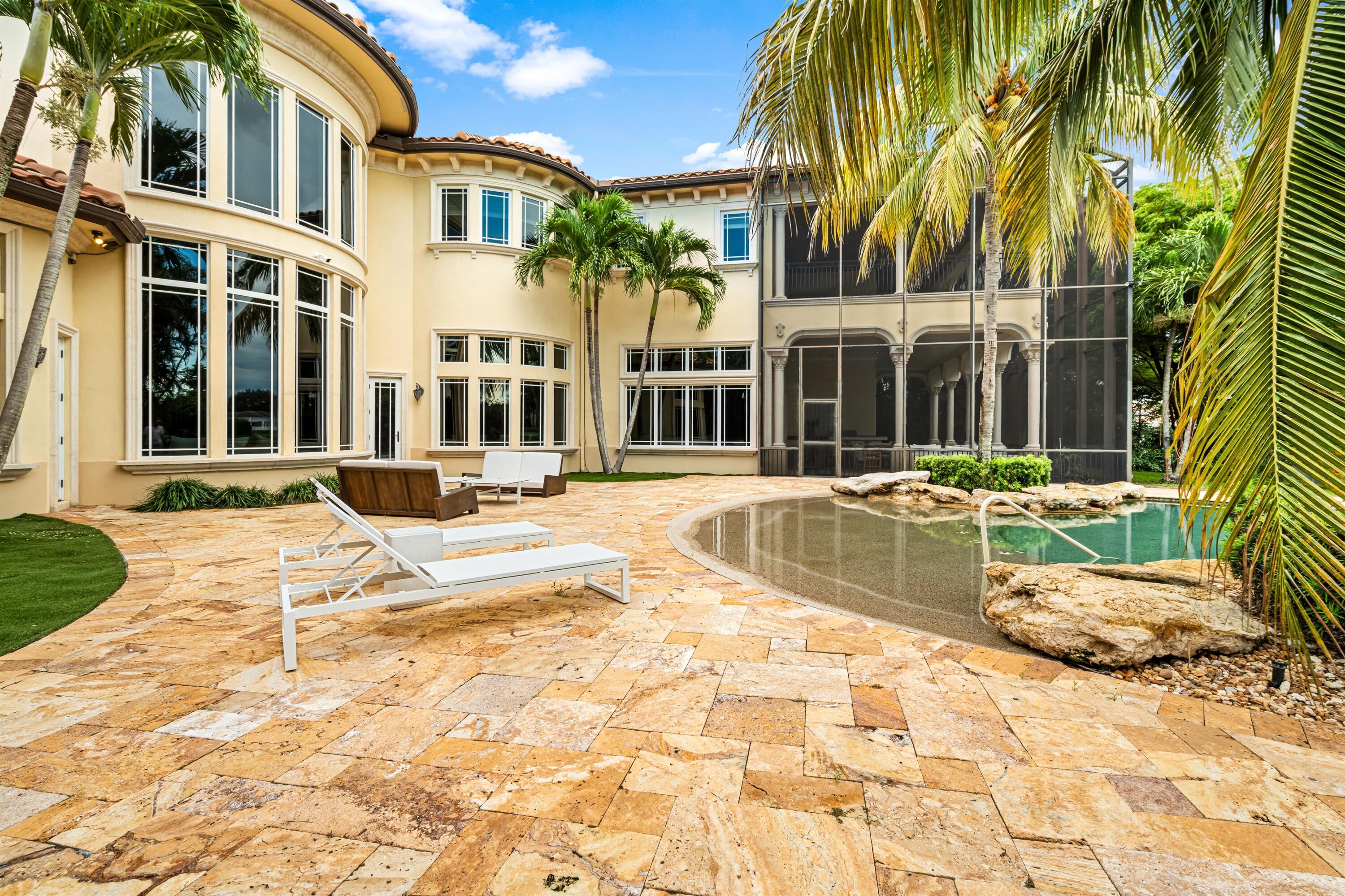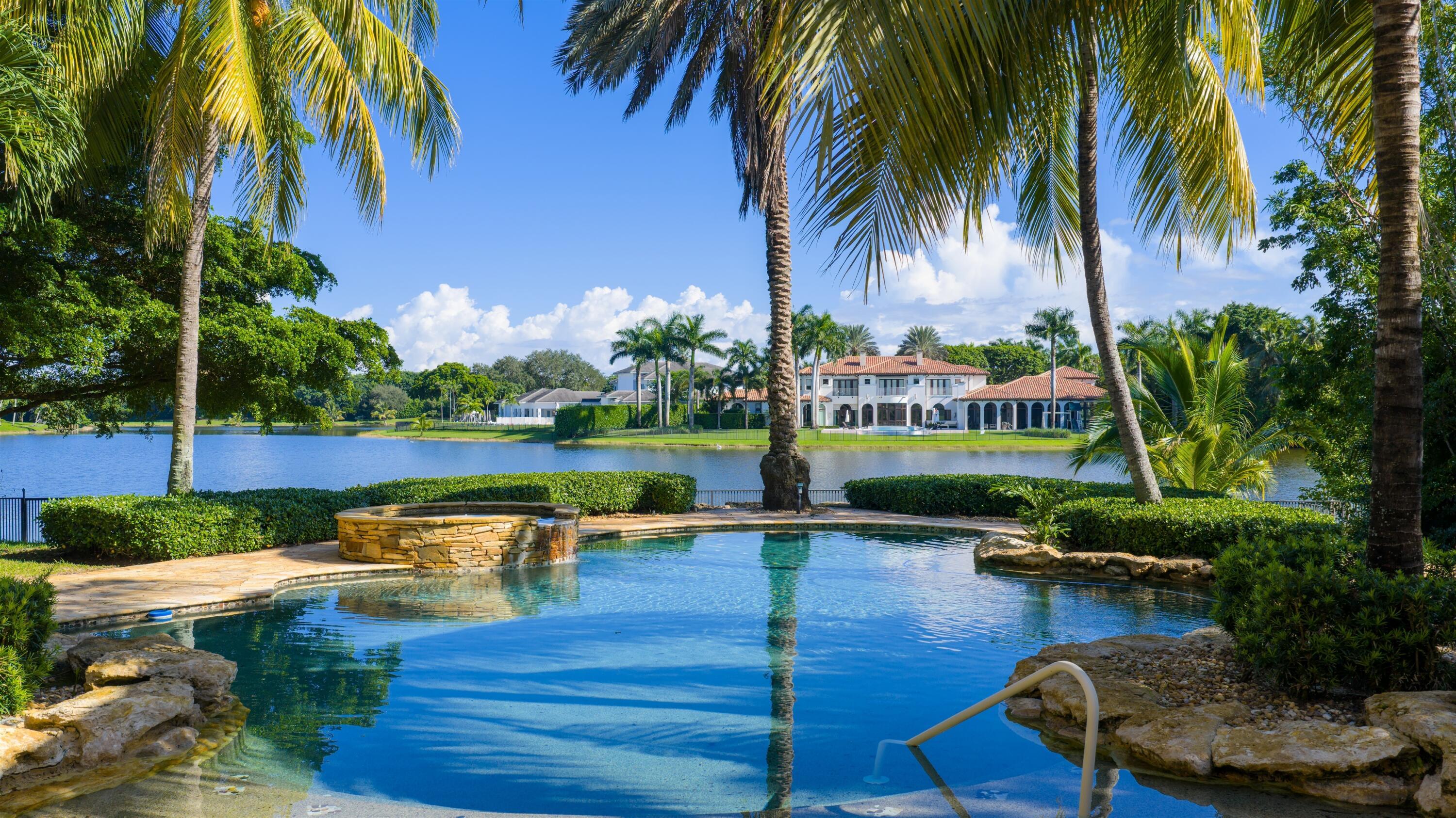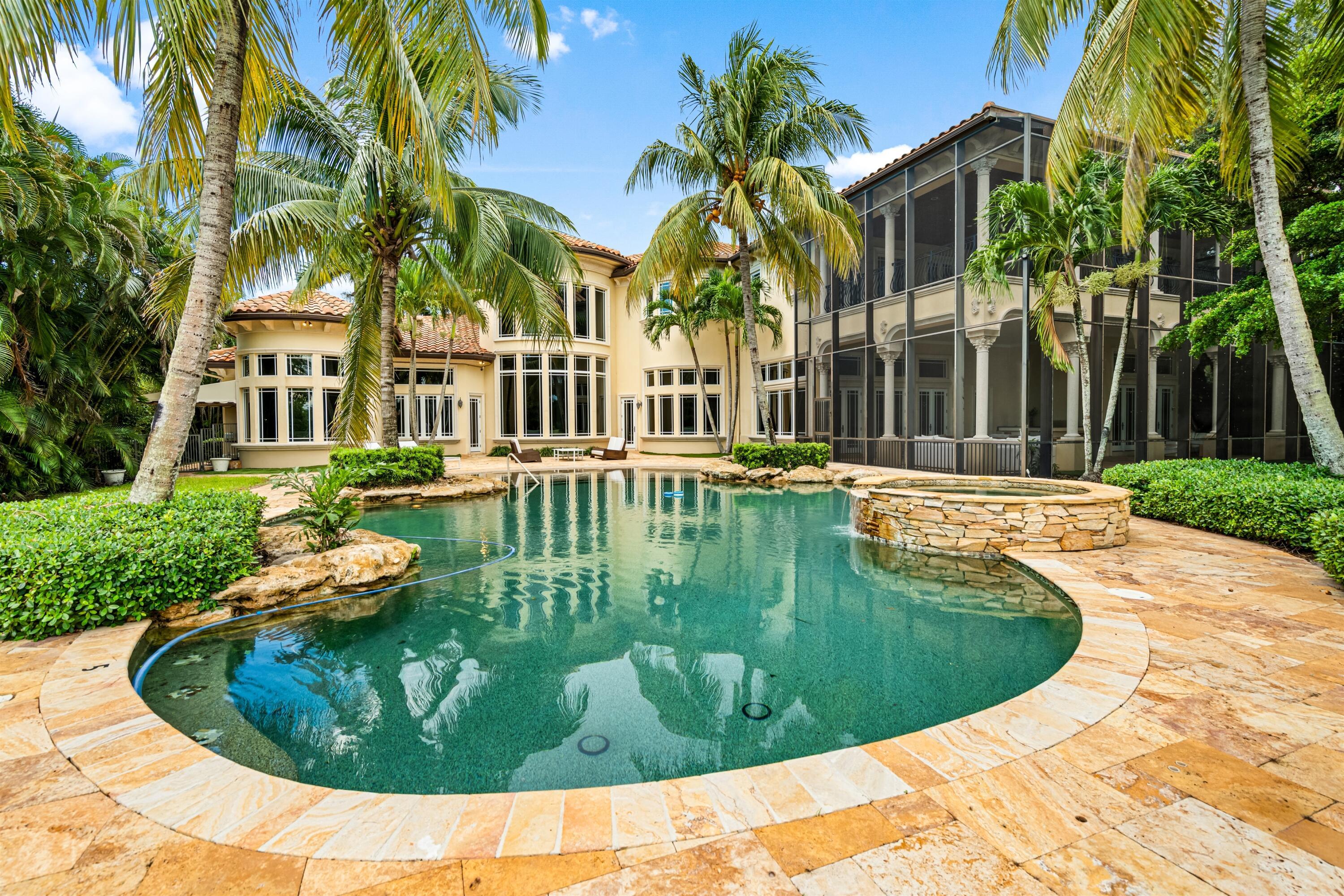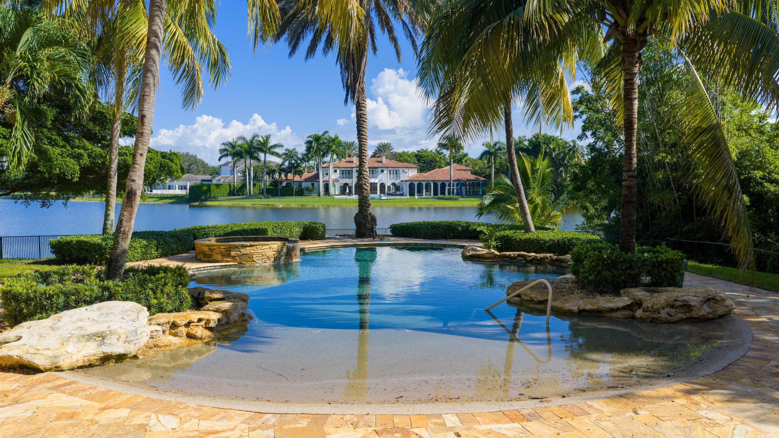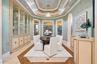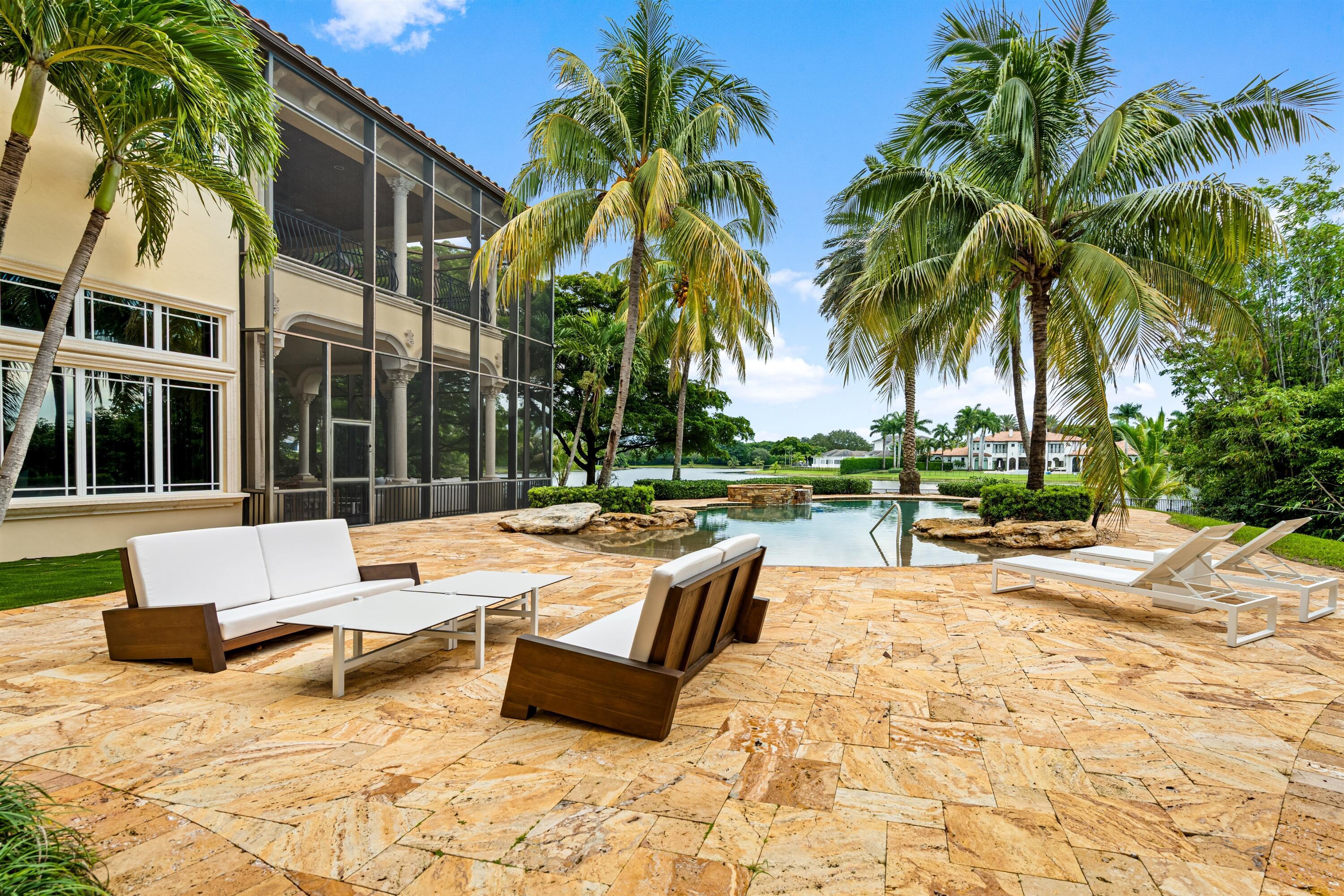 In the Eden of Boca Raton neighborhoods, Long Lake Estates hides in plain sight off of Clint Moore Road, with convenient access to the Turnpike. Discover Boca's premier amenities within a 10-mile+/- radius, including upscale boutiques and fine dining at Town Center Mall and Mizner Plaza, beautiful beaches, sought-after country clubs, respected schools, and well-maintained sports and recreational facilities. But the bustle quickly subsides when you pass through the gates of this neighborhood exuding a graceful regality. Its quiet, canopied roads transport you to a serene Old Florida. Set back on lush, one acre-plus lots, the distinct homes in this community enjoy the utmost privacy. The 10,327+/- sq. ft. Mediterranean estate sits on a paved horseshoe driveway behind an elegant porte-cochere.Additional driveway space on the west side of the home leads to two garages accommodating five total vehicles. The property is set apart by its outdoor sanctuary complete with beach-entry pool, hot tub, summer kitchen, and 159± feet of prime lake views. Step into the great room with towering 30± ft. ceilings and a commanding cast stone fireplace. Jerusalem stone floors bring Old World craftsmanship into the space, while floor-to-ceiling impact windows let in gorgeous natural light. The home's distinguishing characteristics include the jaw-dropping backyard oasis, stately library, spacious home theater, entertainer's kitchen with top-of-the-line appliances, grand primary wing, home elevator, and special architectural details. Lower Level: The primary wing boasts separate his and hers baths and a morning room/office with bay window overlooking the garden. The first primary bath features a masculine aesthetic, luxurious shower, and ample walk-in closet space. The second is nothing short of a Neoclassical spa with a statement soaker tub, stained glass windows, multi-jet shower, and walk-in closet of your dreams. This level also has a large library/office with wall-to-wall bookshelves, a laundry room, home theater, powder room, guest room and bath, plus a formal dining room connected to the butler's pantry. The kitchen and bar open to a bright family room with french-door access to the summer kitchen and covered patio for elevated entertaining. Upper Level: The open landing area is an ideal children's playroom or bright fitness/yoga studio. You will find three additional bedrooms plus in-law or maids quarters upstairs, each with ensuite and closet. Two rooms share access to a tranquil covered balcony overlooking the lake. There is also a room plumbed for laundry or a salon. Staging and furnishings by Vesta Home; all furniture available for purchase. DISCLAIMER: Information published or otherwise provided by the listing company and its representatives including but not limited to prices, measurements, square footages, lot sizes, calculations, statistics, and videos are deemed reliable but are not guaranteed and are subject to errors, omissions or changes without notice. All such information should be independently verified by any prospective purchaser or seller. Parties should perform their own due diligence to verify such information prior to a sale or listing. Listing company expressly disclaims any warranty or representation regarding such information. Prices published are either list price, sold price, and/or last asking price. The listing company participates in the Multiple Listing Service and IDX. The properties published as listed and sold are not necessarily exclusive to listing company and may be listed or have sold with other members of the Multiple Listing Service. Transactions where listing company represented both buyers and sellers are calculated as two sales. "No payments made until title passes" Some affiliations may not be applicable to certain geographic areas. If your property is currently listed with another broker, please disregard any solicitation for services. Information published or otherwise provided by seller, listing company or its representatives is deemed reliable but are not guaranteed and subject to errors, omissions, or changes without notice. Copyright 2025 by the listing company. All Rights Reserved.