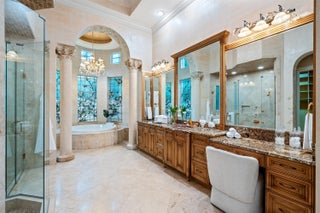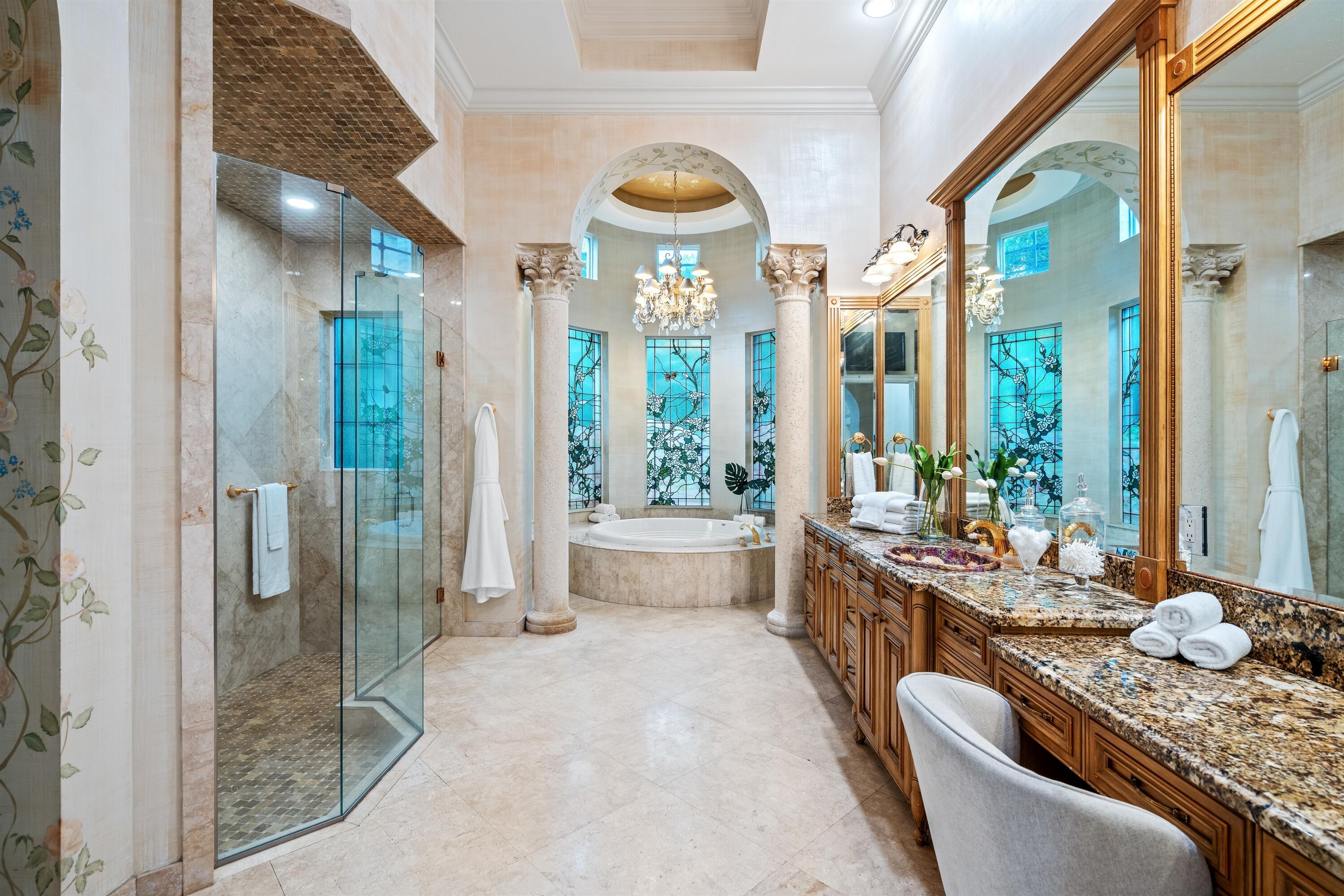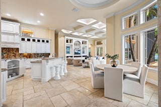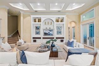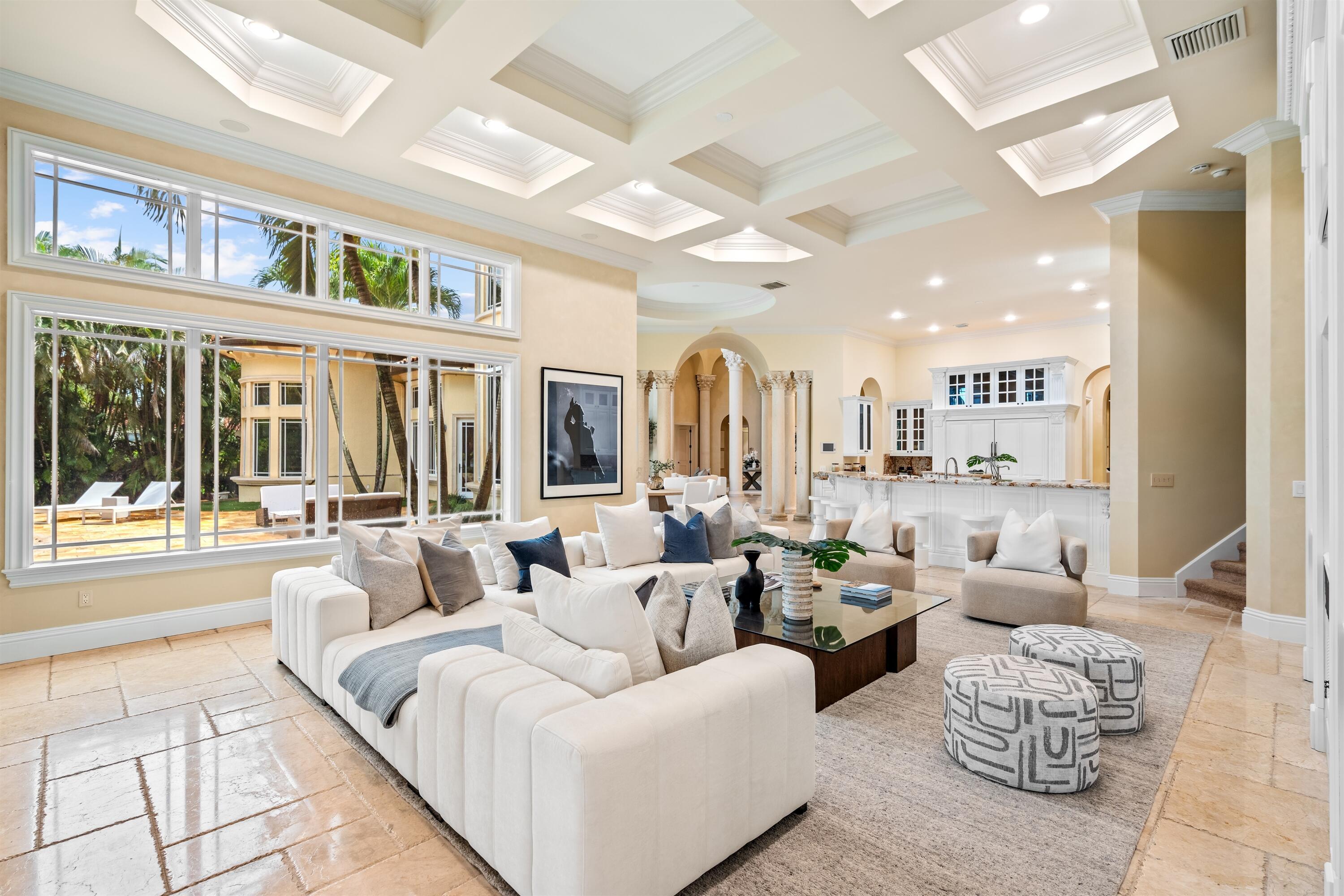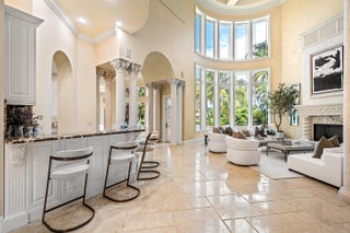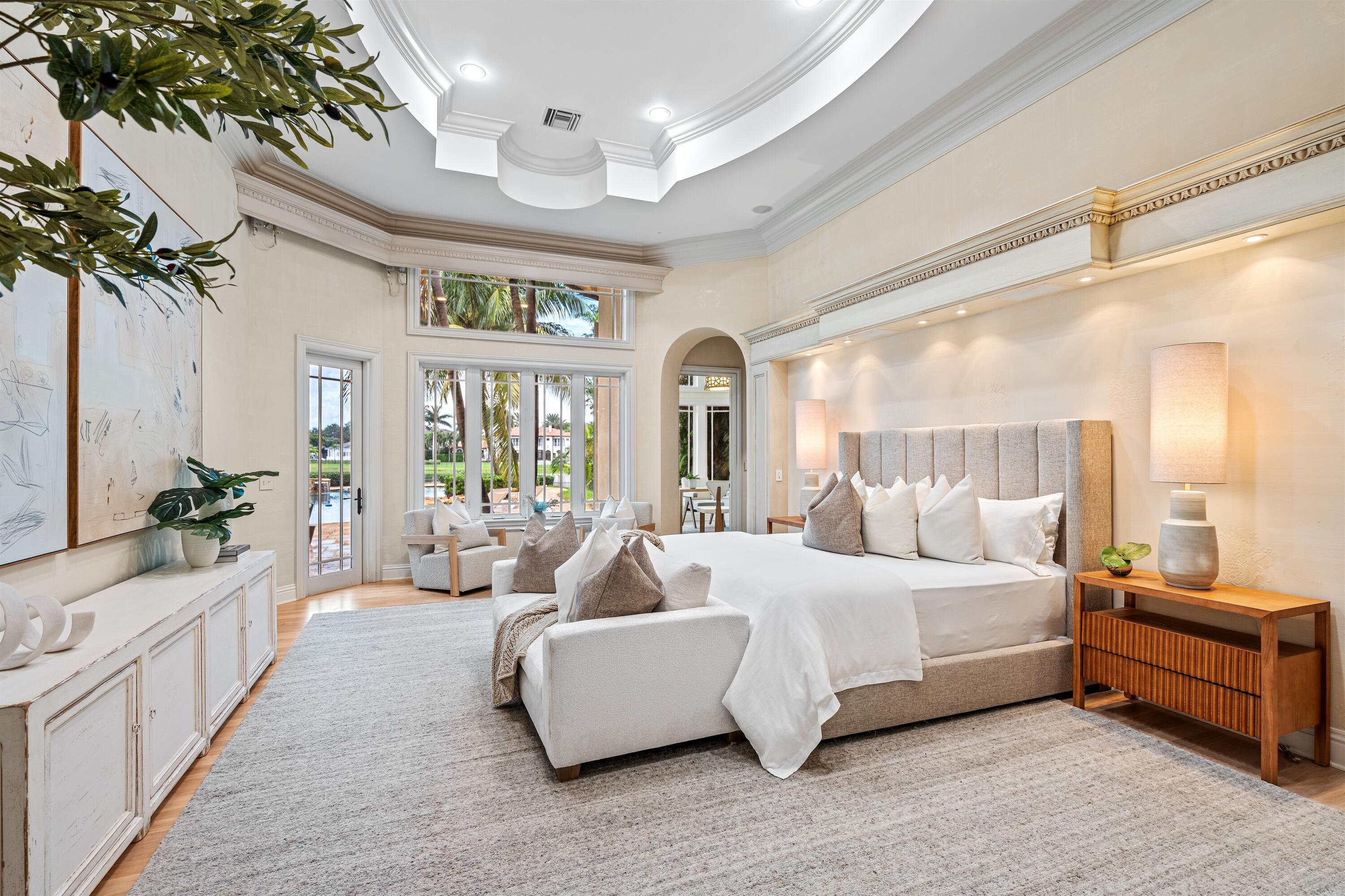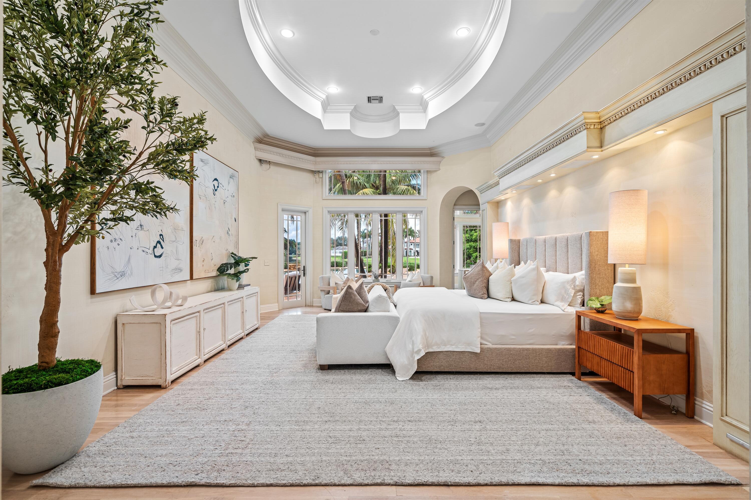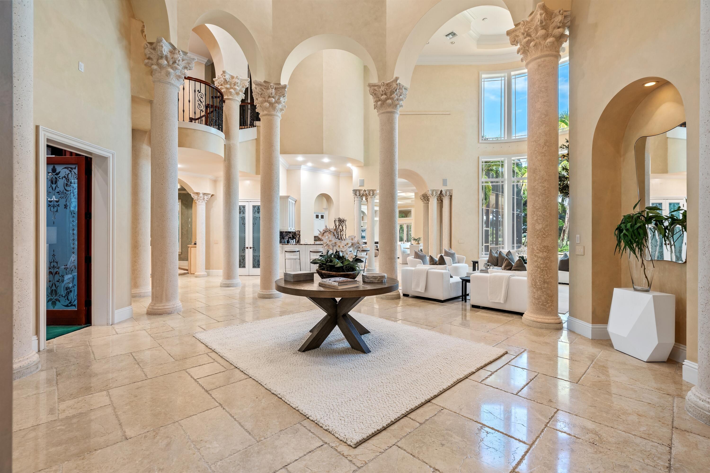 In the Eden of Boca Raton neighborhoods, Long Lake Estates hides in plain sight off of Clint Moore Road, with convenient access to the Turnpike. Discover Boca's premier amenities within a 10-mile+/- radius, including upscale boutiques and fine dining at Town Center Mall and Mizner Plaza, beautiful beaches, sought-after country clubs, respected schools, and well-maintained sports and recreational facilities. But the bustle quickly subsides when you pass through the gates of this neighborhood exuding a graceful regality. Its quiet, canopied roads transport you to a serene Old Florida. Set back on lush, one acre-plus lots, the distinct homes in this community enjoy the utmost privacy. The 10,327+/- sq. ft. Mediterranean estate sits on a paved horseshoe driveway behind an elegant porte-cochere.Additional driveway space on the west side of the home leads to two garages accommodating five total vehicles. The property is set apart by its outdoor sanctuary complete with beach-entry pool, hot tub, summer kitchen, and 159± feet of prime lake views. Step into the great room with towering 30± ft. ceilings and a commanding cast stone fireplace. Jerusalem stone floors bring Old World craftsmanship into the space, while floor-to-ceiling impact windows let in gorgeous natural light. The home's distinguishing characteristics include the jaw-dropping backyard oasis, stately library, spacious home theater, entertainer's kitchen with top-of-the-line appliances, grand primary wing, home elevator, and special architectural details. Lower Level: The primary wing boasts separate his and hers baths and a morning room/office with bay window overlooking the garden. The first primary bath features a masculine aesthetic, luxurious shower, and ample walk-in closet space. The second is nothing short of a Neoclassical spa with a statement soaker tub, stained glass windows, multi-jet shower, and walk-in closet of your dreams. This level also has a large library/office with wall-to-wall bookshelves, a laundry room, home theater, powder room, guest room and bath, plus a formal dining room connected to the butler's pantry. The kitchen and bar open to a bright family room with french-door access to the summer kitchen and covered patio for elevated entertaining. Upper Level: The open landing area is an ideal children's playroom or bright fitness/yoga studio. You will find three additional bedrooms plus in-law or maids quarters upstairs, each with ensuite and closet. Two rooms share access to a tranquil covered balcony overlooking the lake. There is also a room plumbed for laundry or a salon. Staging and furnishings by Vesta Home; all furniture available for purchase. DISCLAIMER: Information published or otherwise provided by the listing company and its representatives including but not limited to prices, measurements, square footages, lot sizes, calculations, statistics, and videos are deemed reliable but are not guaranteed and are subject to errors, omissions or changes without notice. All such information should be independently verified by any prospective purchaser or seller. Parties should perform their own due diligence to verify such information prior to a sale or listing. Listing company expressly disclaims any warranty or representation regarding such information. Prices published are either list price, sold price, and/or last asking price. The listing company participates in the Multiple Listing Service and IDX. The properties published as listed and sold are not necessarily exclusive to listing company and may be listed or have sold with other members of the Multiple Listing Service. Transactions where listing company represented both buyers and sellers are calculated as two sales. "No payments made until title passes" Some affiliations may not be applicable to certain geographic areas. If your property is currently listed with another broker, please disregard any solicitation for services. Information published or otherwise provided by seller, listing company or its representatives is deemed reliable but are not guaranteed and subject to errors, omissions, or changes without notice. Copyright 2025 by the listing company. All Rights Reserved.