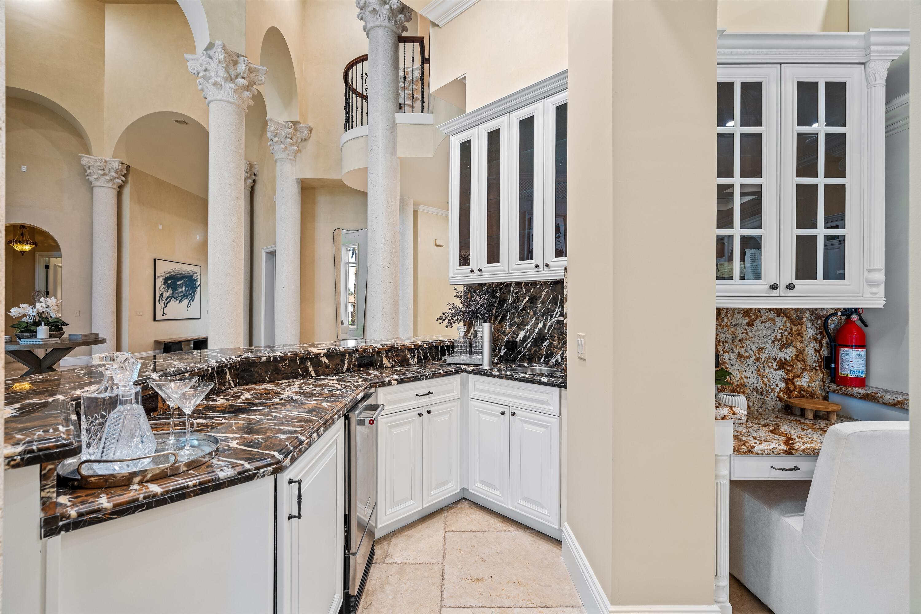Foyer, Cook Island, Pantry, Roman Tub, Volume Ceiling, Ctdrl/Vault Ceilings, Fireplace(s), Bar, Elevator, Closet Cabinets, Laundry Tub