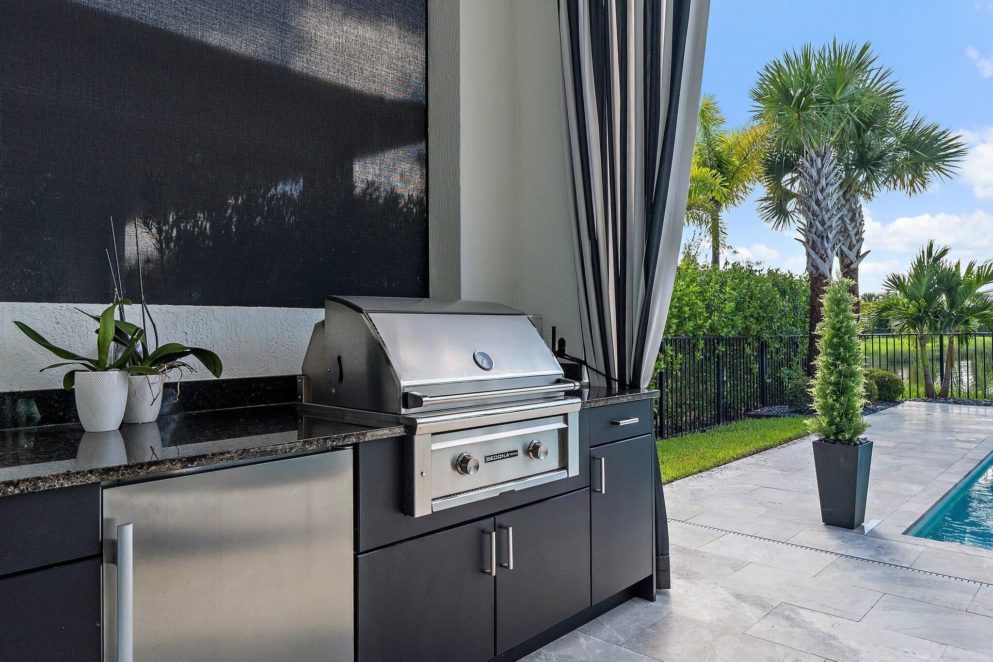 Auto Sprinkler, Covered Patio, Fence, Built-in Grill, Zoned Sprinkler, Custom Lighting, Summer Kitchen