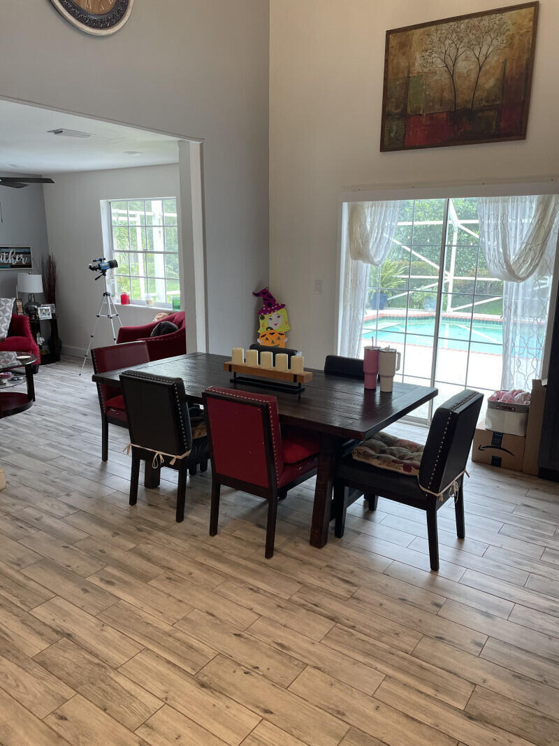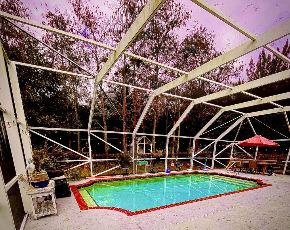 Seller is very motivated.This is a beautiful farm style home sitting on 1.15 acres of very well kept property. The home features 3 LARGE BEDROOMS, 2.5 bathrooms, a separate office / guest room area downstairs, an extra play room in the kids room, a wrap around dinning and living room with an open kitchen concept. The roof was installed in 2021 and the entire house was remodeled. The kitchen has a state of the art gas cook top quartzite counter top and island and a stackable double oven. It has tile through out downstairs and in the upstairs bathrooms. Most of the appliances are new. The home has an indoor fridge and an outdoor fridge. The home is on well water and septic. The well water system is up to date and the house has a reverse osmosis drinking water system installed in 2022.The entire property is on an automatic sprinkler system which we just updated in 2024. The pool is enclosed by a large screened in pool area and also has a new pump installed in 2024. On the side of the property an RV hook up with 50 and 30 amp connection is available for an RV. The entire property is fenced in with a 10' wall of hedges in the front providing privacy from the road. The property has several fenced in areas for different types of barn yard animals. Currently we have a goat enclosure, a horse paddock and stall, a chicken coop and a dog run. All with covered areas for the animals and aesthetically pleasing areas for the animals. For the kids we have a rock climbing wall, a zipline, a tree house and a playground. Lastly, there is a large shed for storage on the property as well.