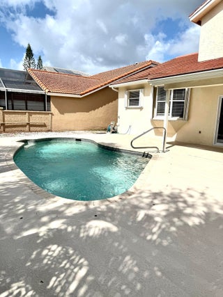 FANTASTIC APPROACH TO DETACHED HOME! 3 bedroom, 2,5 bathroom , 2 car garage and private pool home in excellent location! The expansive first floor features large front room, kitchen that opens to spacious living area and convenient half bath and a laundry room with full size washer and dryer. Tile and laminate flooring, no carpet. Accordion shutters throughout the home. Primary bedroom features walk-in closet, bathroom with a shower and a roman tub. Large private fenced backyard. Community amenities include clubhouse, pool, fitness center, tennis and playground. Centrally located close to top-rated schools, shops, restaurants. WON'T LAST!