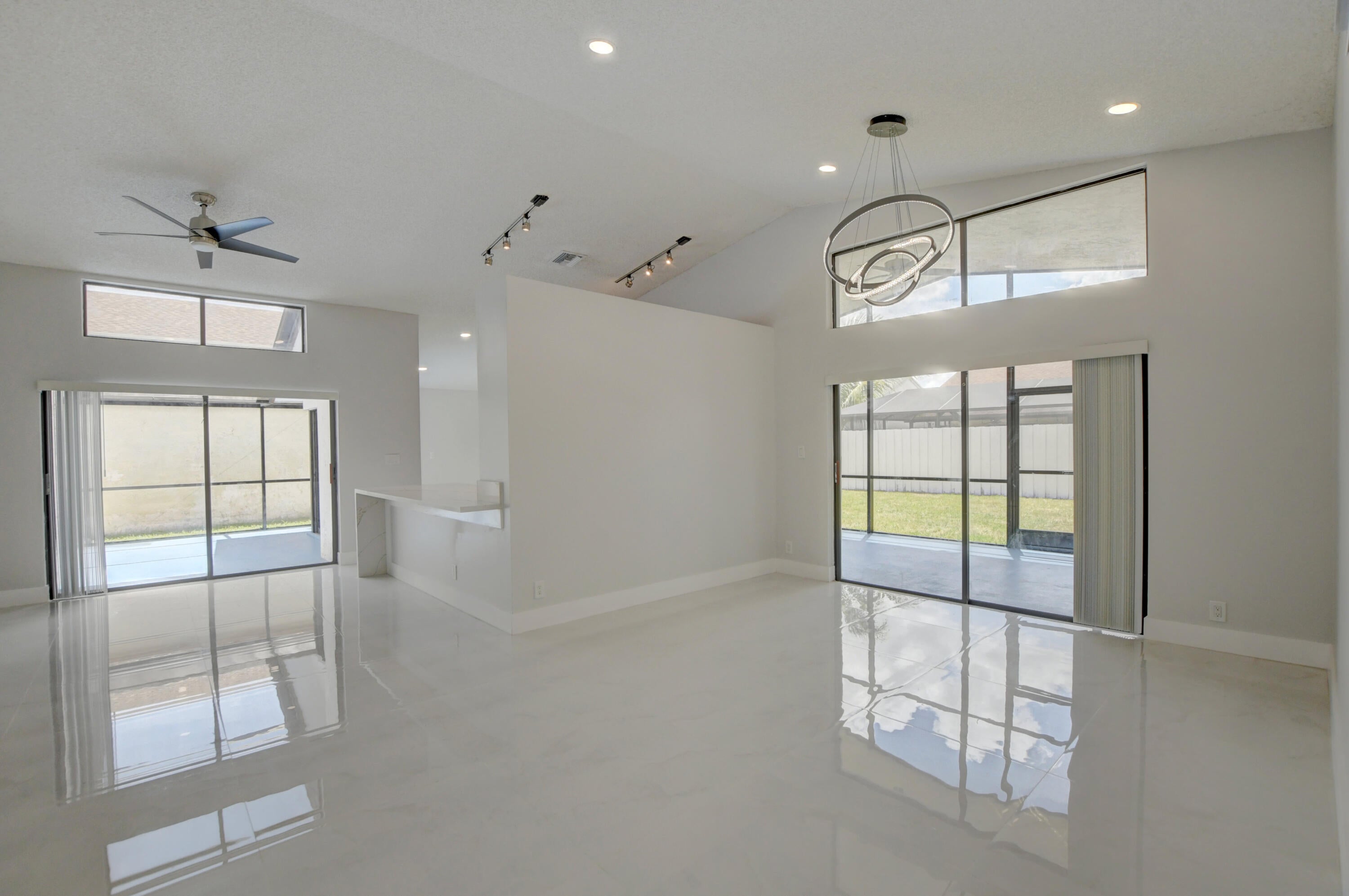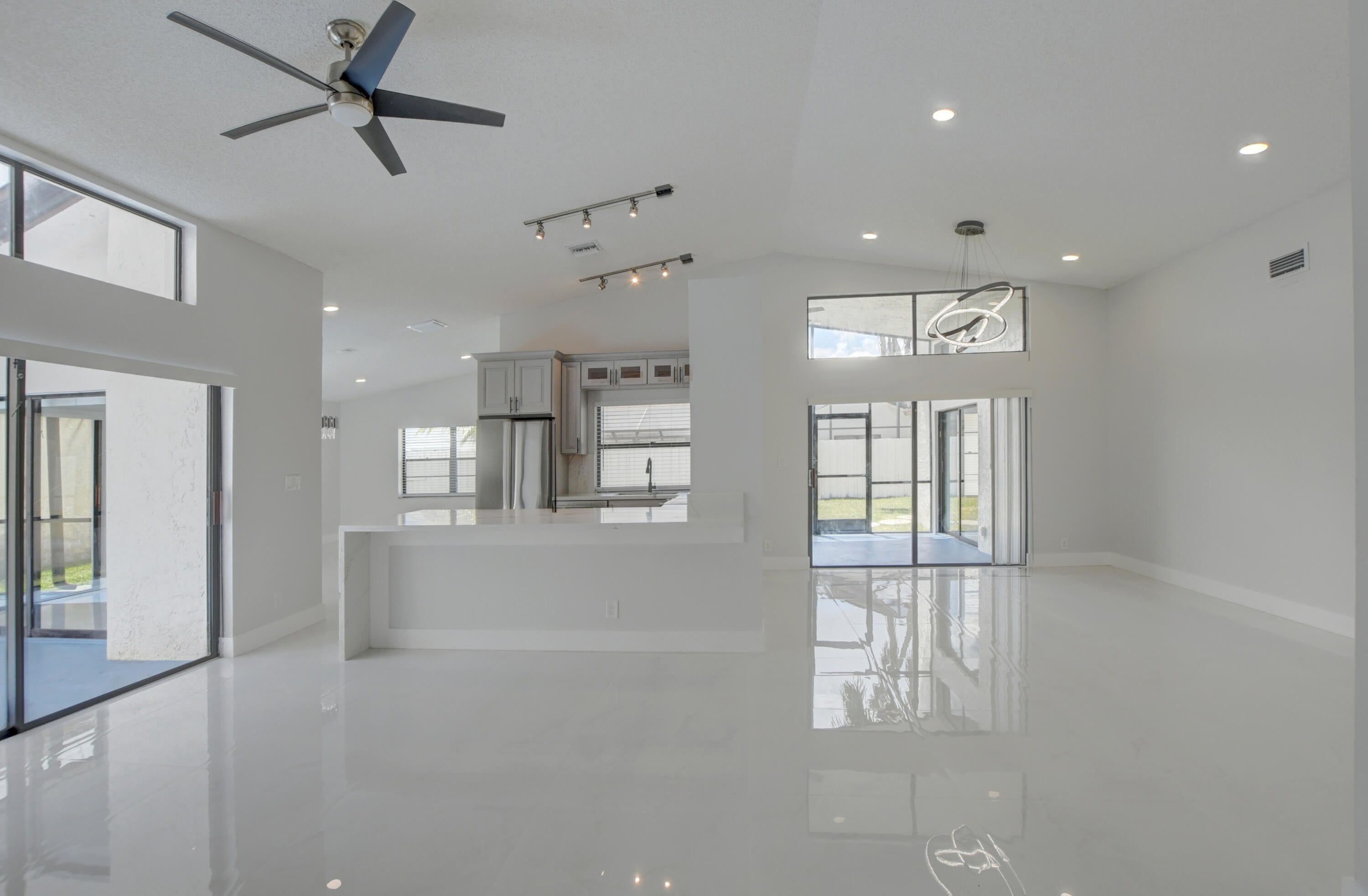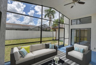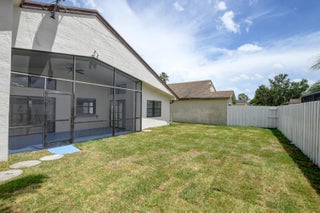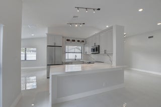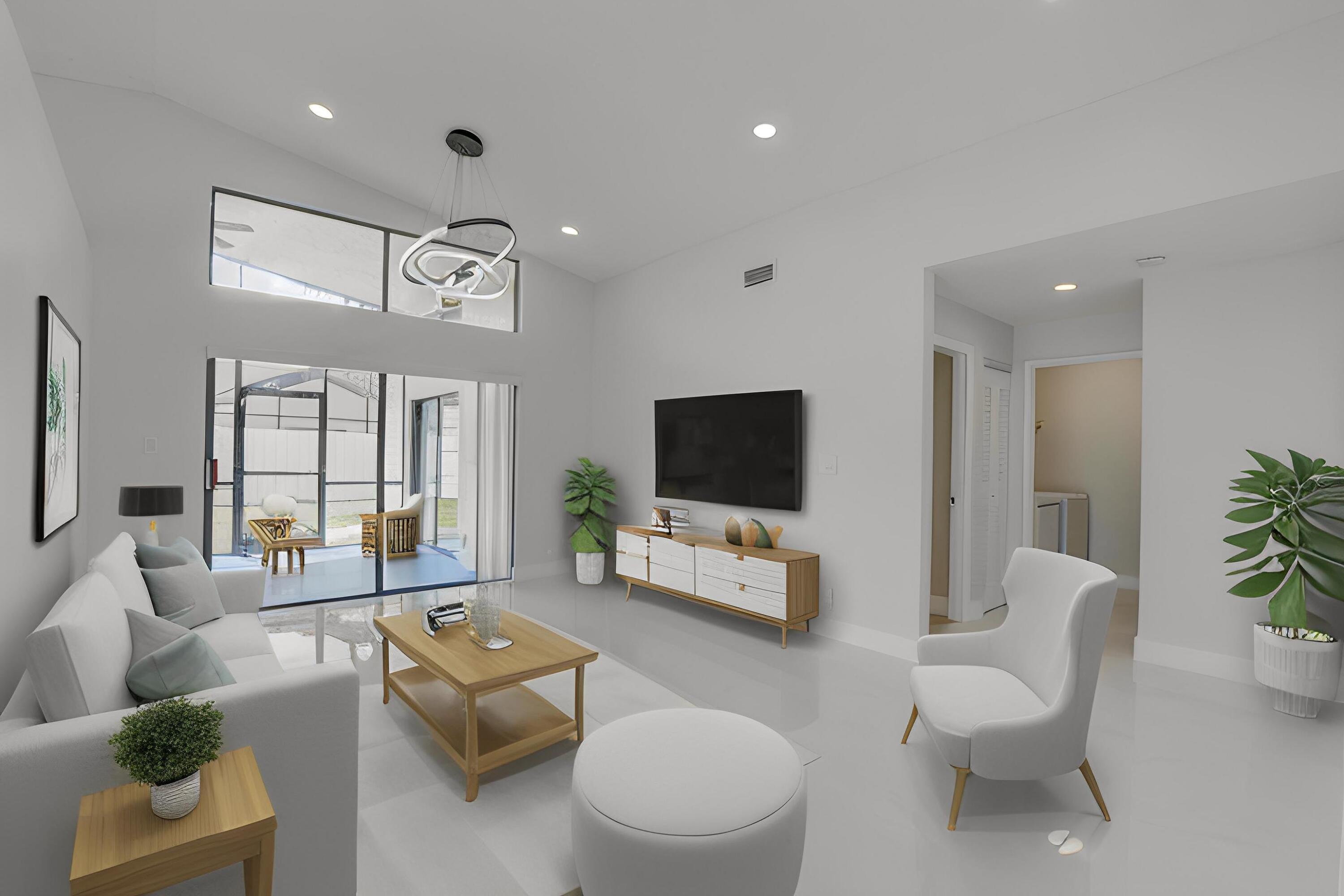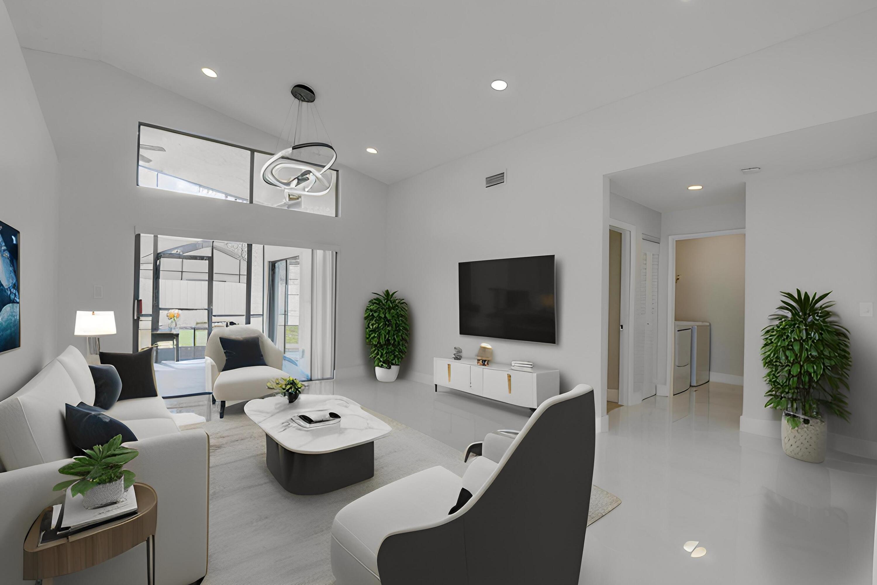 Completed renovated from top to bottom, featuring high-end finishes, no detail has been spared! The home showcases a stunning kitchen with Custom wood cabinetry, Stainless steel appliances, and a luminous Water-drop Quartz kitchen top and backsplash. Gorgeous porcelain tile and waterproof Vinyl plank flooring throughout. Bathrooms feature elegant dark wood vanities topped with granite and contemporary tile work in the showers.Practical upgrades include Epoxy garage floor, a separate laundry room with full-size appliances, and hurricane-rated accordion shutters for peace of mind. Entertain with ease in the multiple living areas, including a living room, family room/foyer, and dining room, all enhanced by vaulted ceilings, 2-car garage. Step outside to not one, but 2 screened patiosHome is ideally located within a top-rated school district, just steps from parks, tennis courts, and athletic fields. A rare find a professionally remodeled home with high-end finishes and NO HOA! Pets welcome!