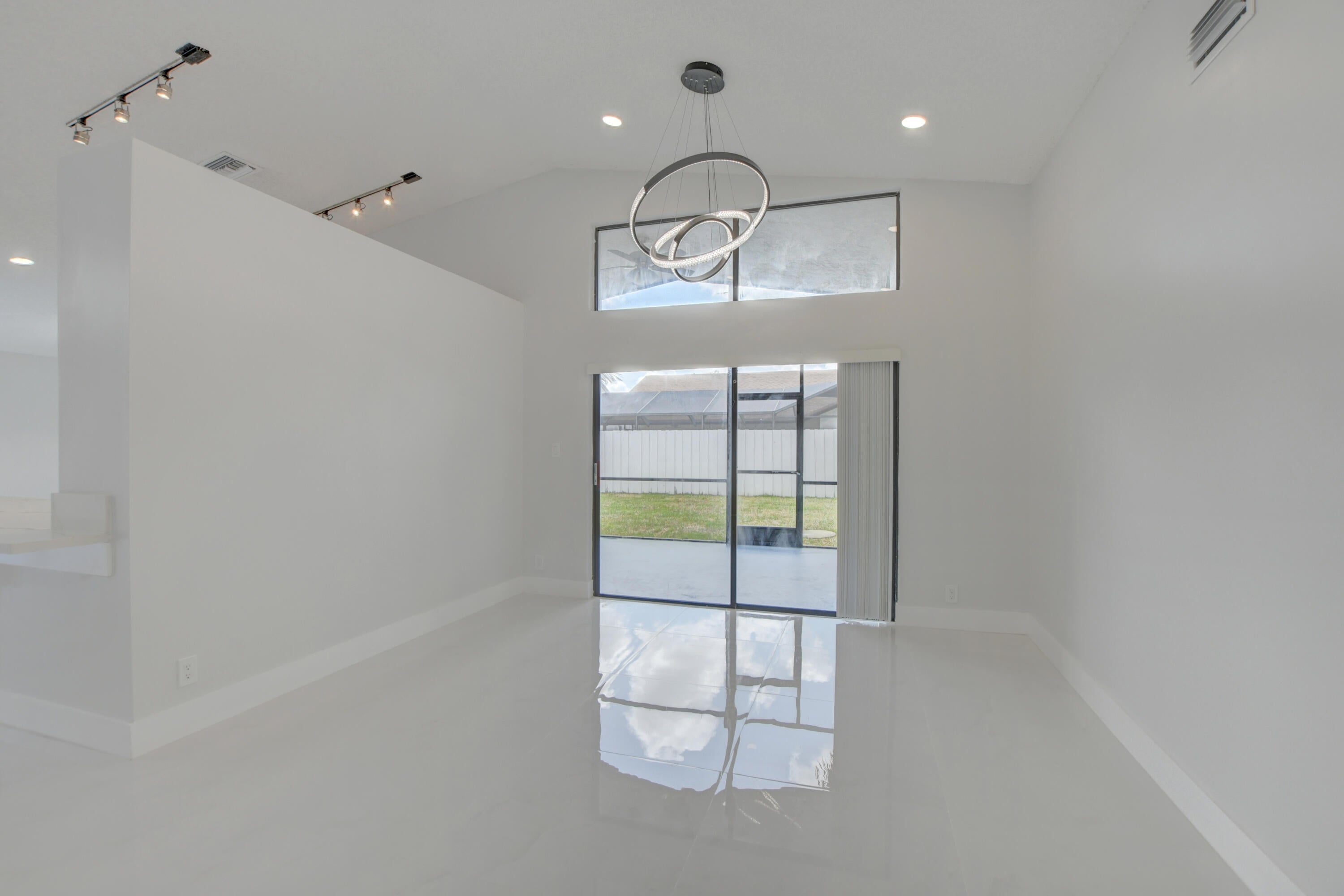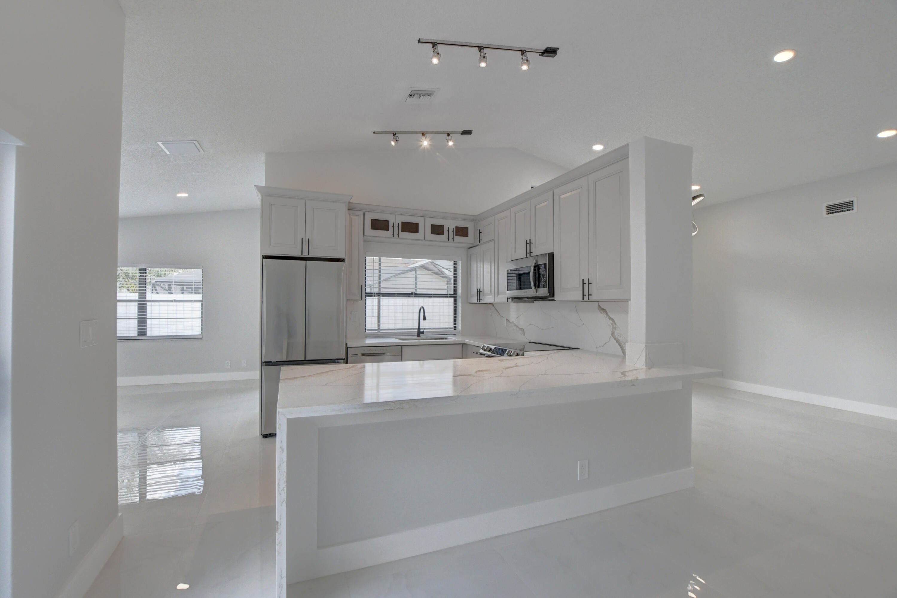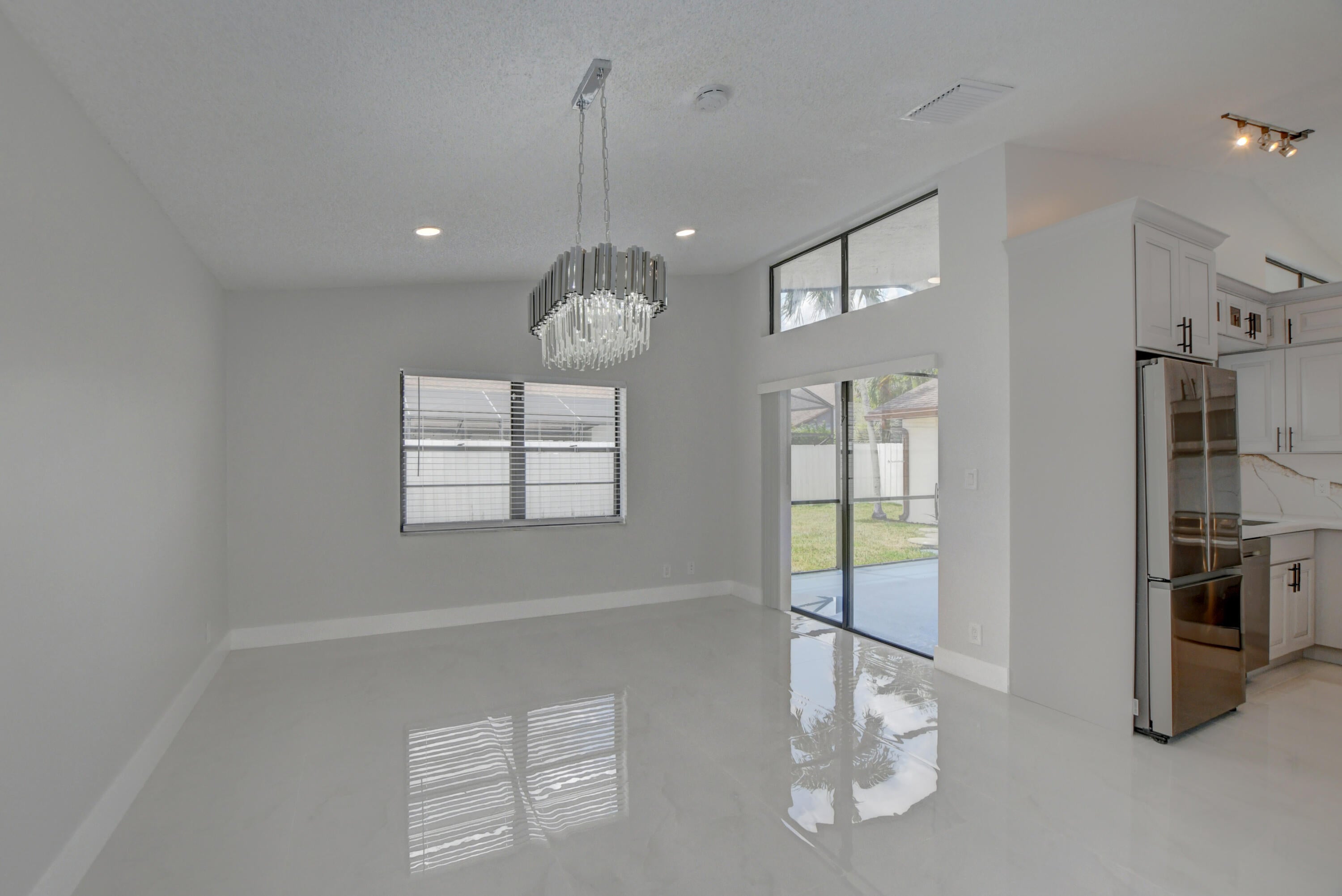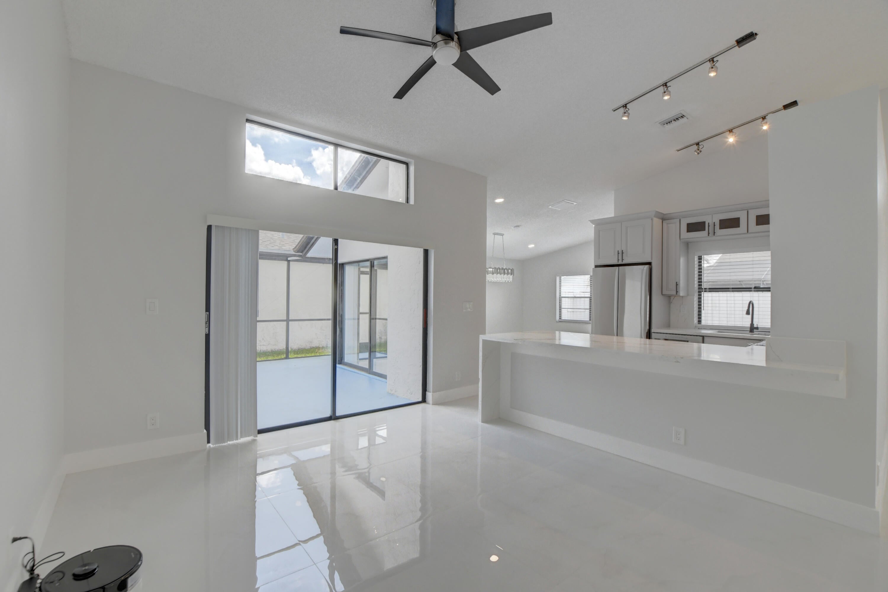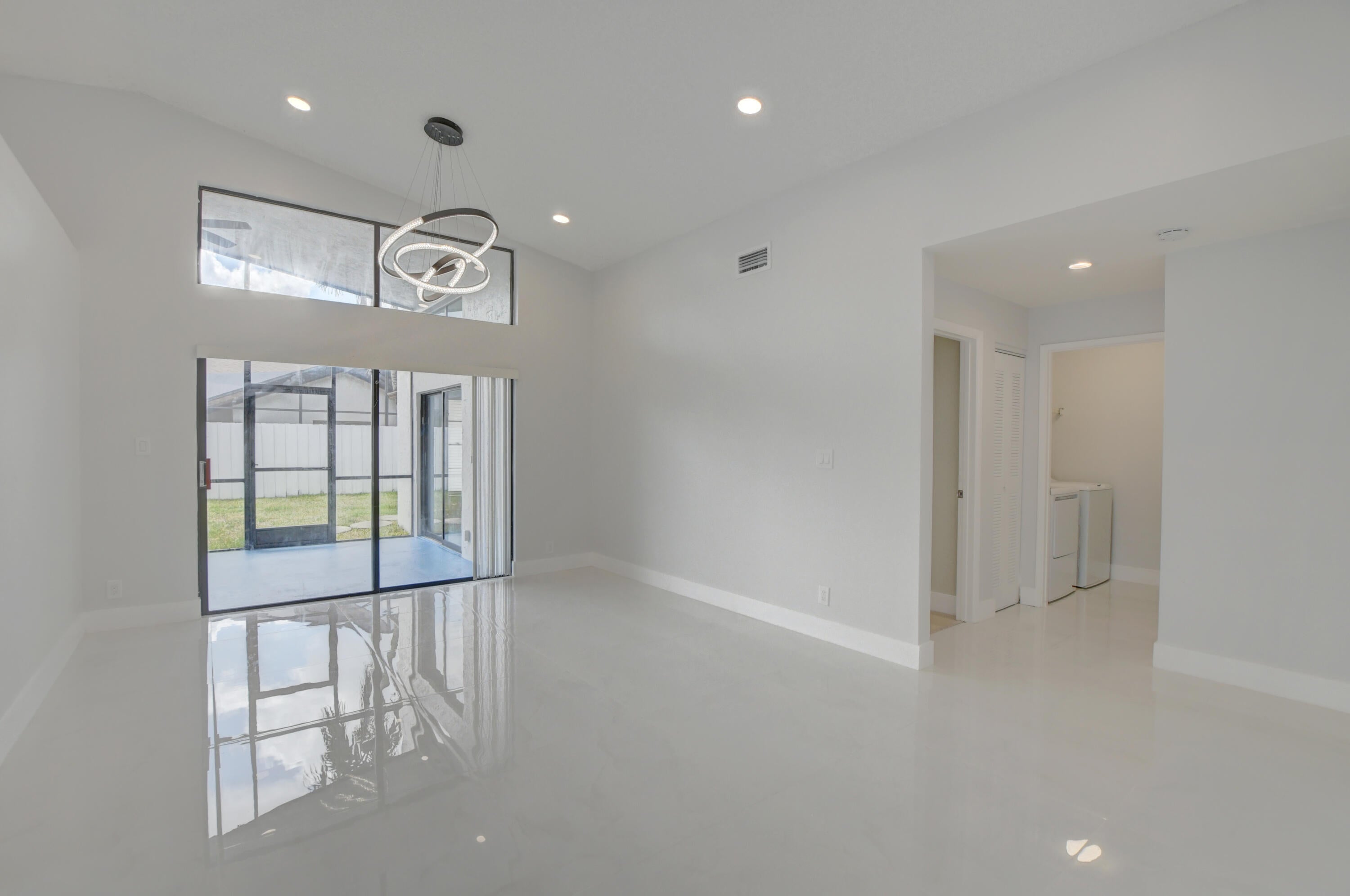 Completed renovated from top to bottom, featuring high-end finishes, no detail has been spared! The home showcases a stunning kitchen with Custom wood cabinetry, Stainless steel appliances, and a luminous Water-drop Quartz kitchen top and backsplash. Gorgeous porcelain tile and waterproof Vinyl plank flooring throughout. Bathrooms feature elegant dark wood vanities topped with granite and contemporary tile work in the showers.Practical upgrades include Epoxy garage floor, a separate laundry room with full-size appliances, and hurricane-rated accordion shutters for peace of mind. Entertain with ease in the multiple living areas, including a living room, family room/foyer, and dining room, all enhanced by vaulted ceilings, 2-car garage. Step outside to not one, but 2 screened patiosHome is ideally located within a top-rated school district, just steps from parks, tennis courts, and athletic fields. A rare find a professionally remodeled home with high-end finishes and NO HOA! Pets welcome!