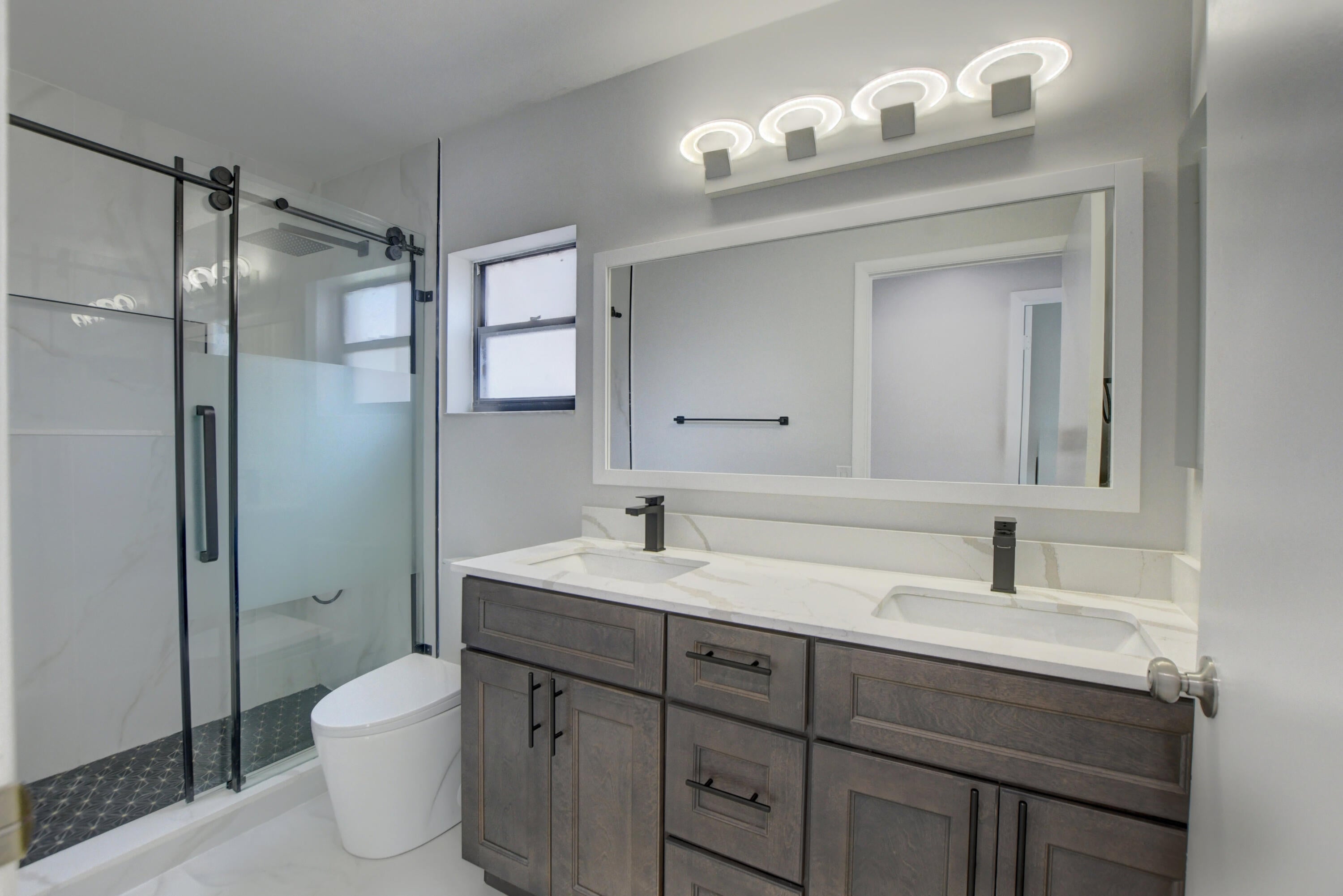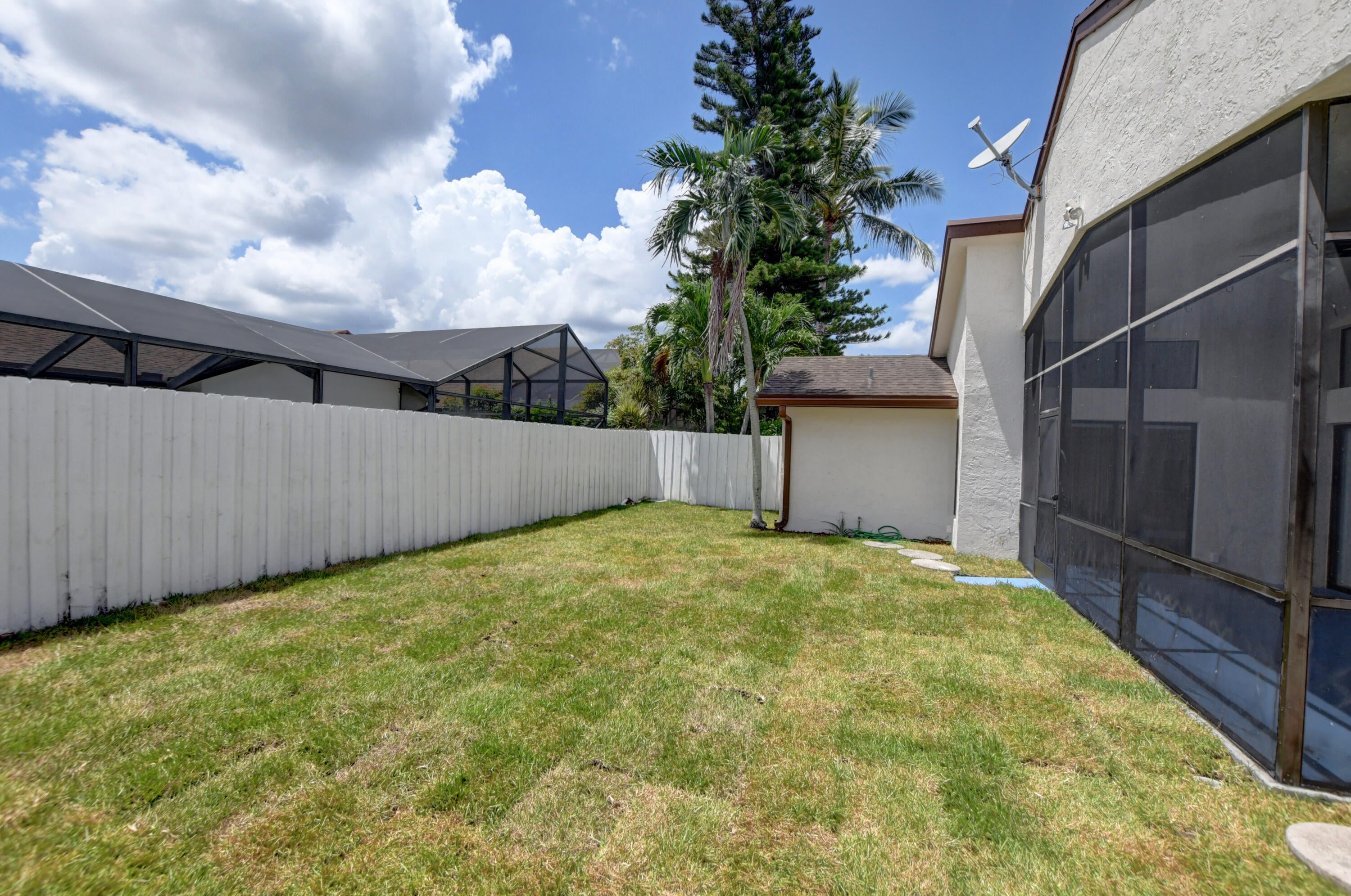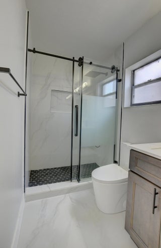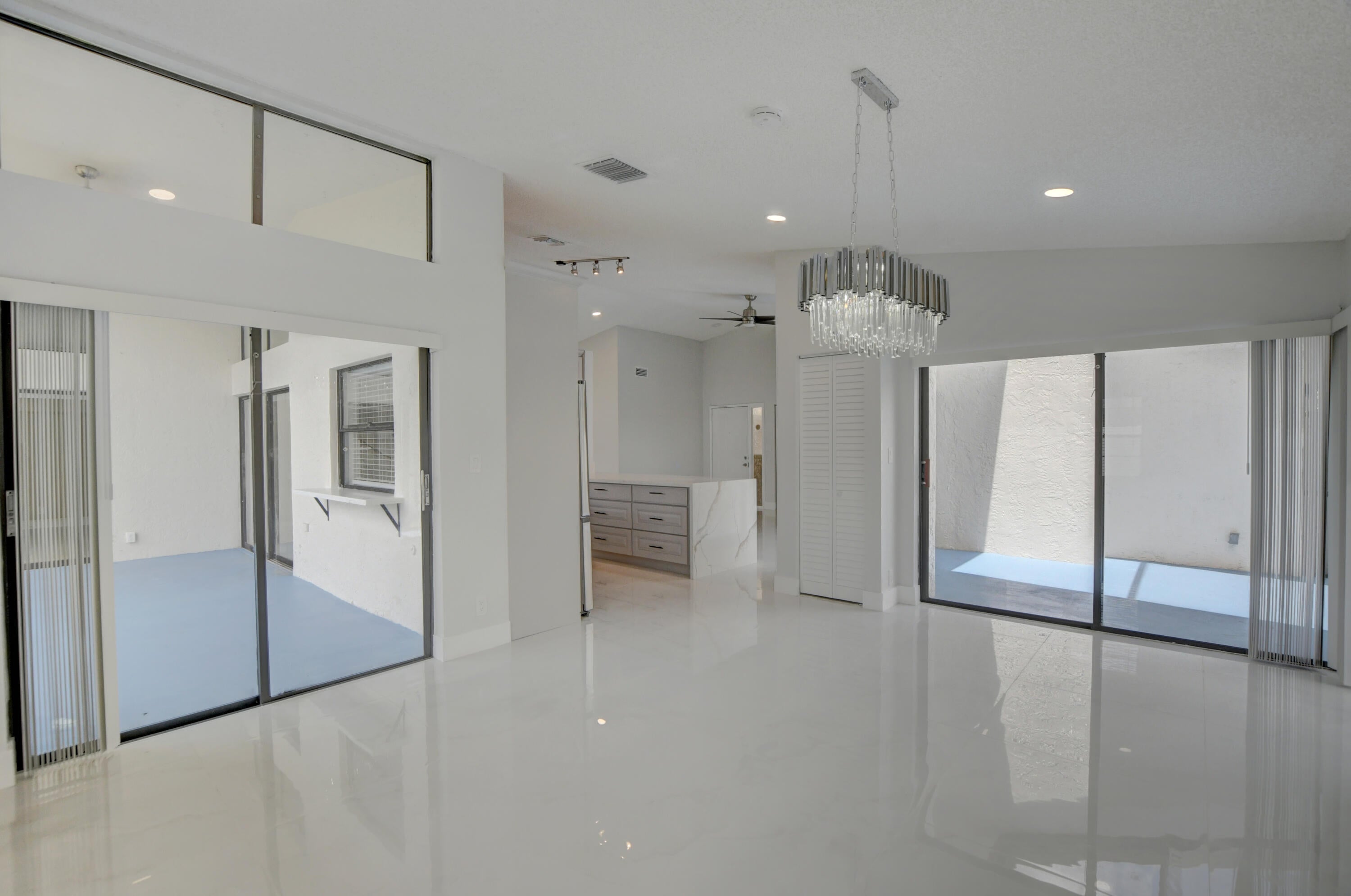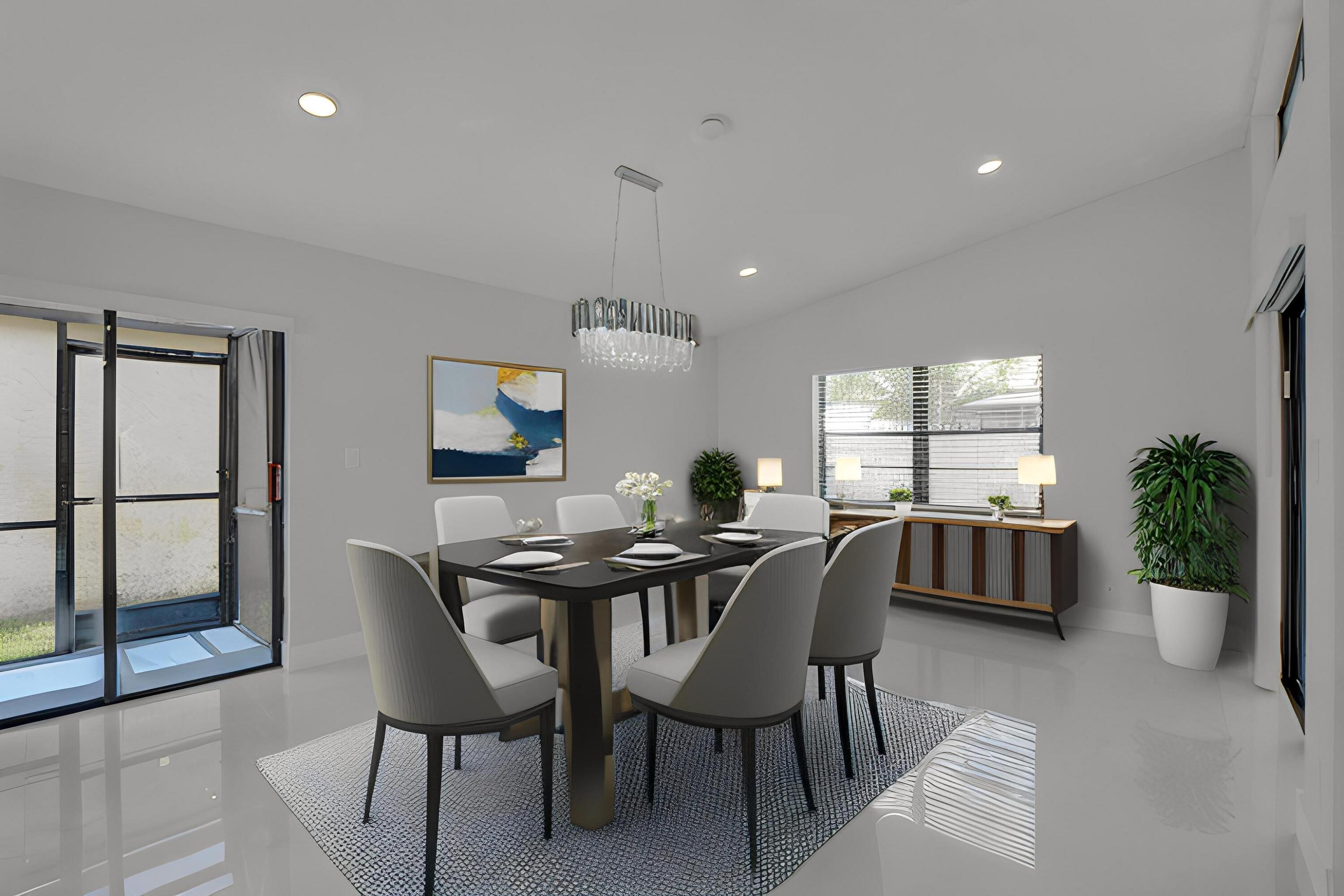 Completed renovated from top to bottom, featuring high-end finishes, no detail has been spared! The home showcases a stunning kitchen with Custom wood cabinetry, Stainless steel appliances, and a luminous Water-drop Quartz kitchen top and backsplash. Gorgeous porcelain tile and waterproof Vinyl plank flooring throughout. Bathrooms feature elegant dark wood vanities topped with granite and contemporary tile work in the showers.Practical upgrades include Epoxy garage floor, a separate laundry room with full-size appliances, and hurricane-rated accordion shutters for peace of mind. Entertain with ease in the multiple living areas, including a living room, family room/foyer, and dining room, all enhanced by vaulted ceilings, 2-car garage. Step outside to not one, but 2 screened patiosHome is ideally located within a top-rated school district, just steps from parks, tennis courts, and athletic fields. A rare find a professionally remodeled home with high-end finishes and NO HOA! Pets welcome!